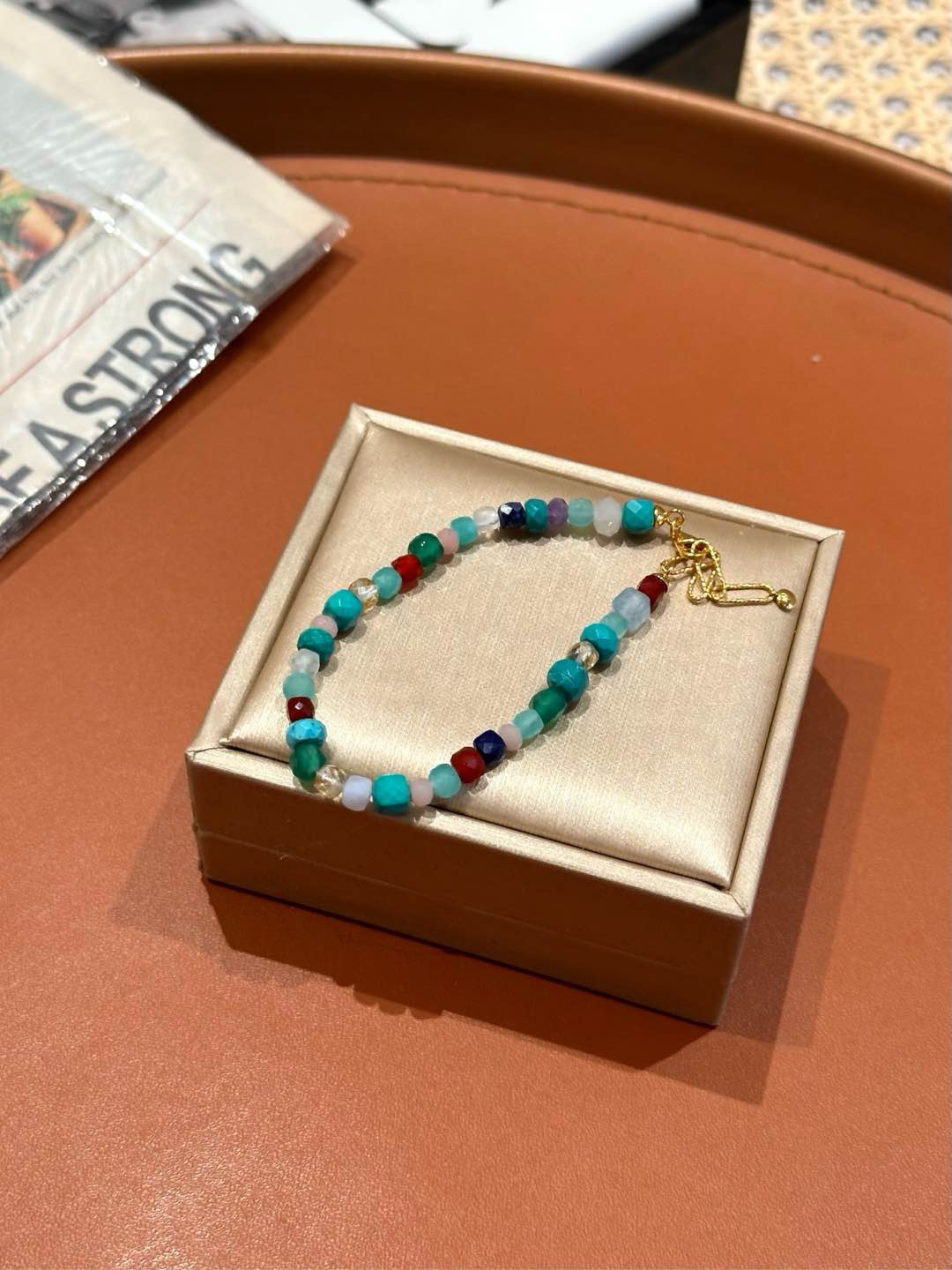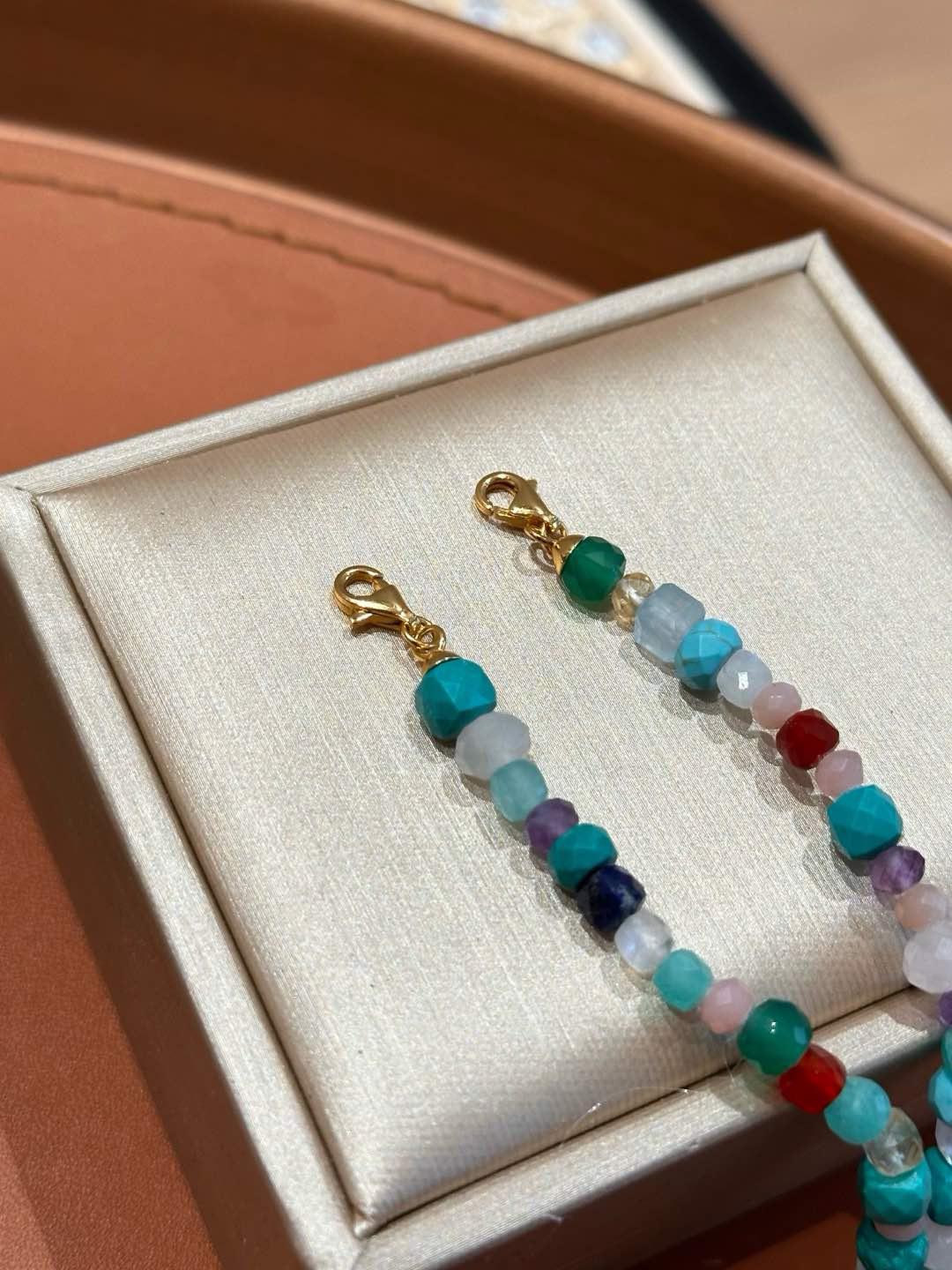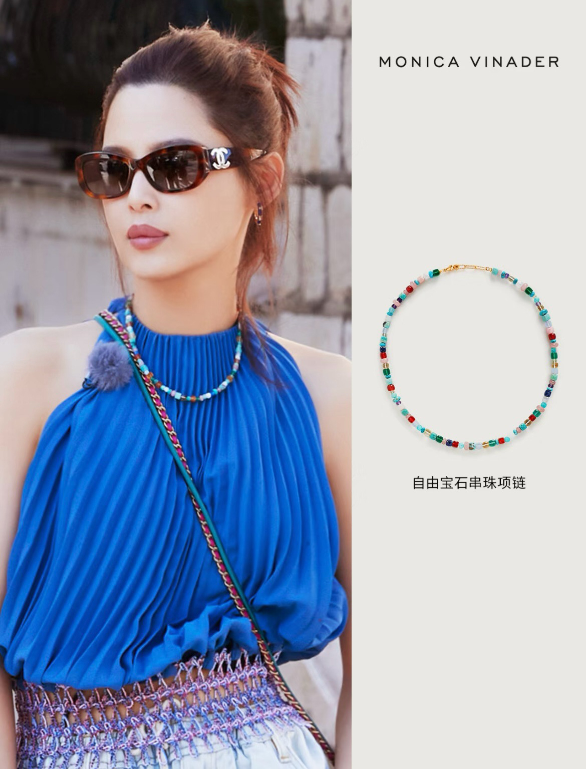 🔺纯原正品Monica Vinader, Bead系列自由宝石串珠守护项链💰209 手链💰159 时尚果然是个圈,彩珠配饰杀回顶流啦,今年彩珠首饰真的太火了🔥时髦到我心巴上了!设计灵感来源于自然的宝石自由的串联成,每一条都与众不同的项链跟手链,而且还是不可复刻的自然之美!王鹤棣、叶童、秦岚、孟子义、阚清子、白鹿、毛晓彤等明星都在戴,多彩珠子组合,甜酷风狠狠拿捏。⚠️原料,开模定制,每种石头都需要单独买大料回来开,然后师傅再打磨成一粒粒合适大小得宝石进行装配,每颗石头都是工人一颗颗装配 一颗颗质检,装配的时候都得间隔开来,足足16种,耗时耗力,真正的手工货⚠️因为是天然矿石每条都会不一样,独一无二的感觉!材质:925银镀18k金+天然矿石