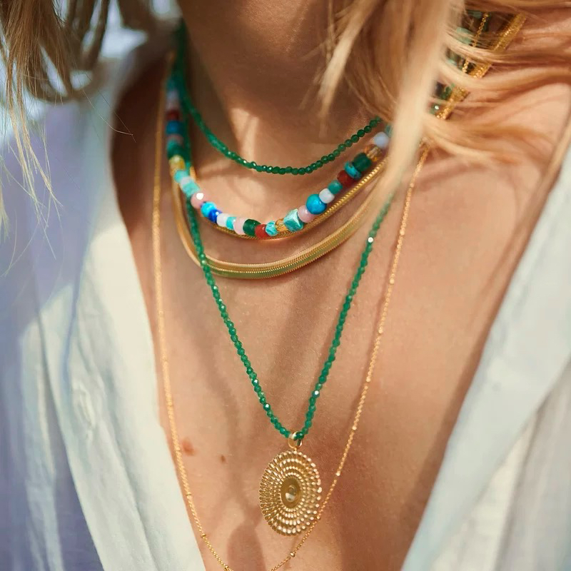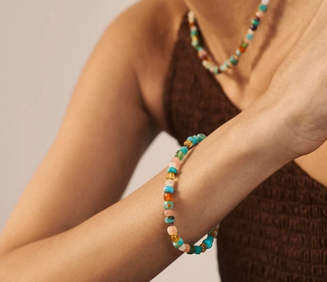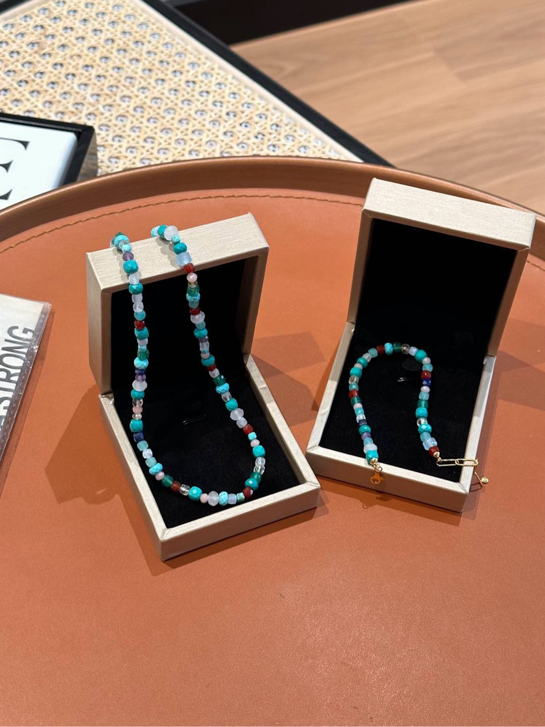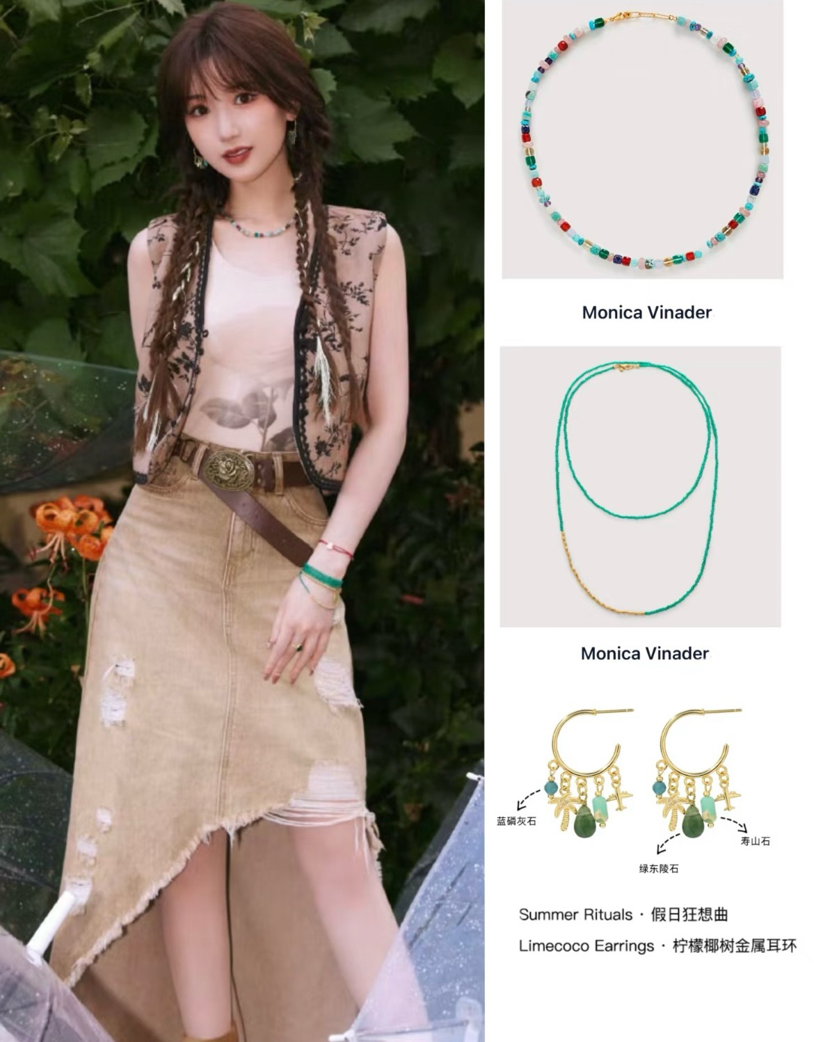 🔺纯原正品Monica Vinader, Bead系列自由宝石串珠守护项链💰209 手链💰159 时尚果然是个圈,彩珠配饰杀回顶流啦,今年彩珠首饰真的太火了🔥时髦到我心巴上了!设计灵感来源于自然的宝石自由的串联成,每一条都与众不同的项链跟手链,而且还是不可复刻的自然之美!王鹤棣、叶童、秦岚、孟子义、阚清子、白鹿、毛晓彤等明星都在戴,多彩珠子组合,甜酷风狠狠拿捏。⚠️原料,开模定制,每种石头都需要单独买大料回来开,然后师傅再打磨成一粒粒合适大小得宝石进行装配,每颗石头都是工人一颗颗装配 一颗颗质检,装配的时候都得间隔开来,足足16种,耗时耗力,真正的手工货⚠️因为是天然矿石每条都会不一样,独一无二的感觉!材质:925银镀18k金+天然矿石