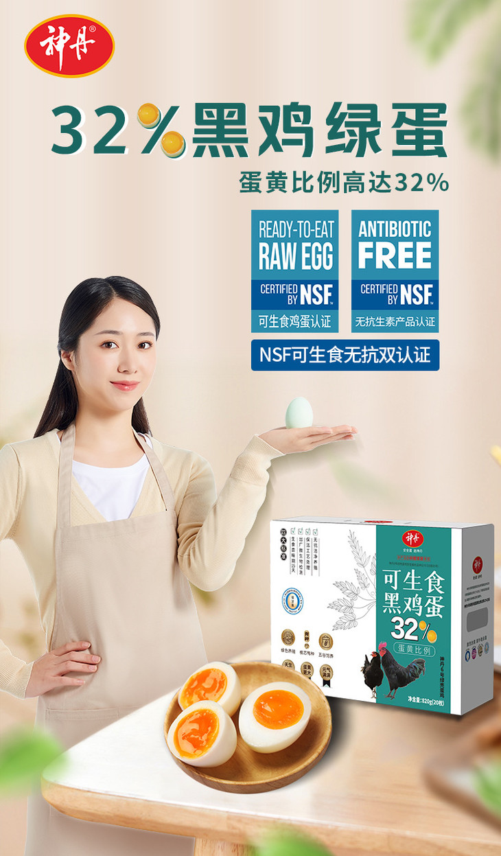 【神丹】绿壳鸡蛋可生食保洁蛋黑鸡绿蛋20枚新鲜散养鲜鸡蛋保洁蛋