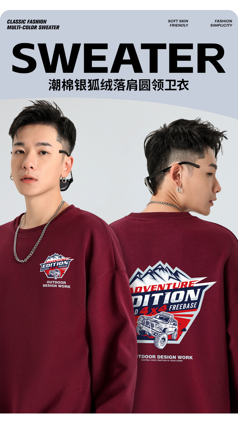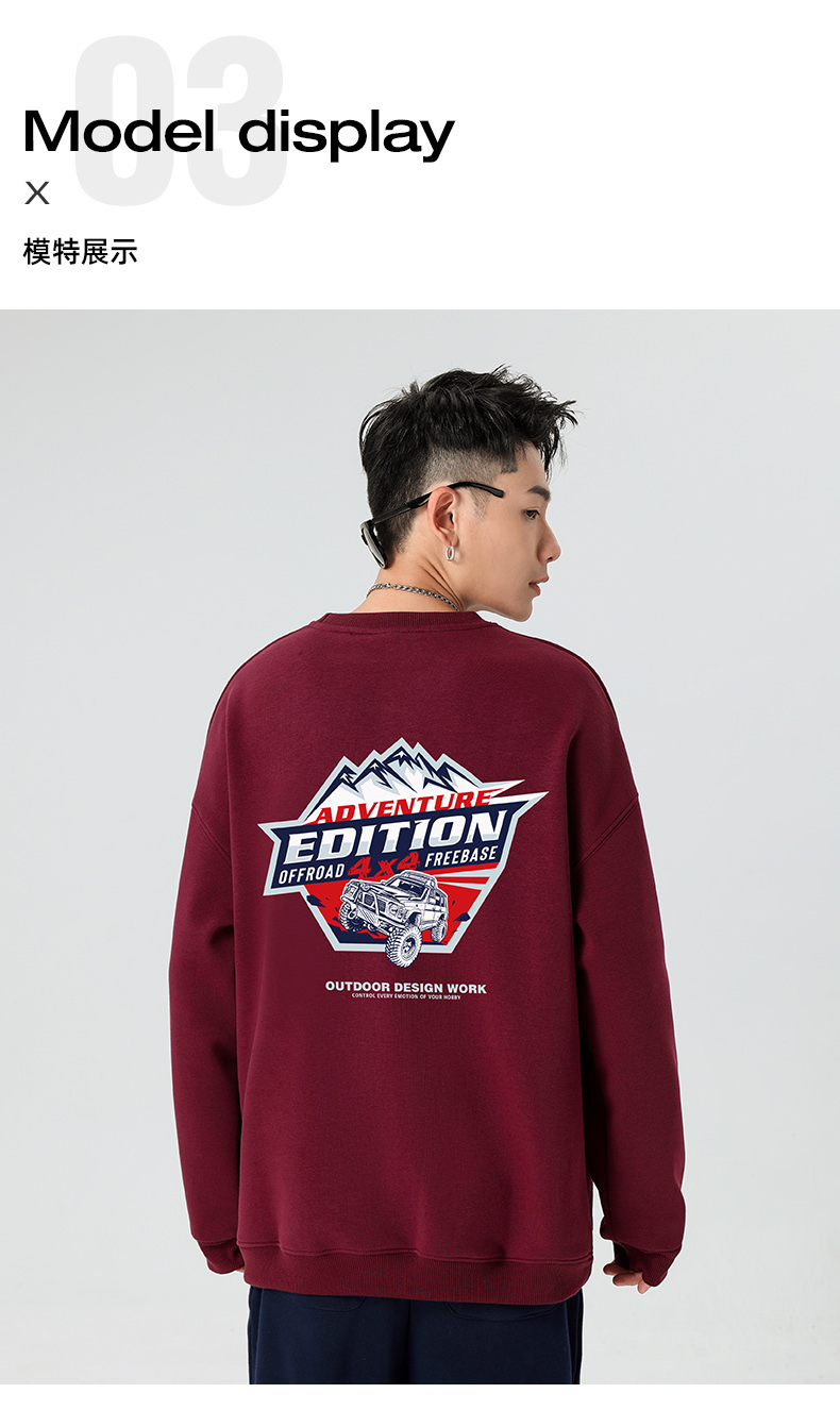 自由基地秋冬新品途乐越野车设计图案落肩宽松抓绒卫衣多色套头衫 NMT-2187