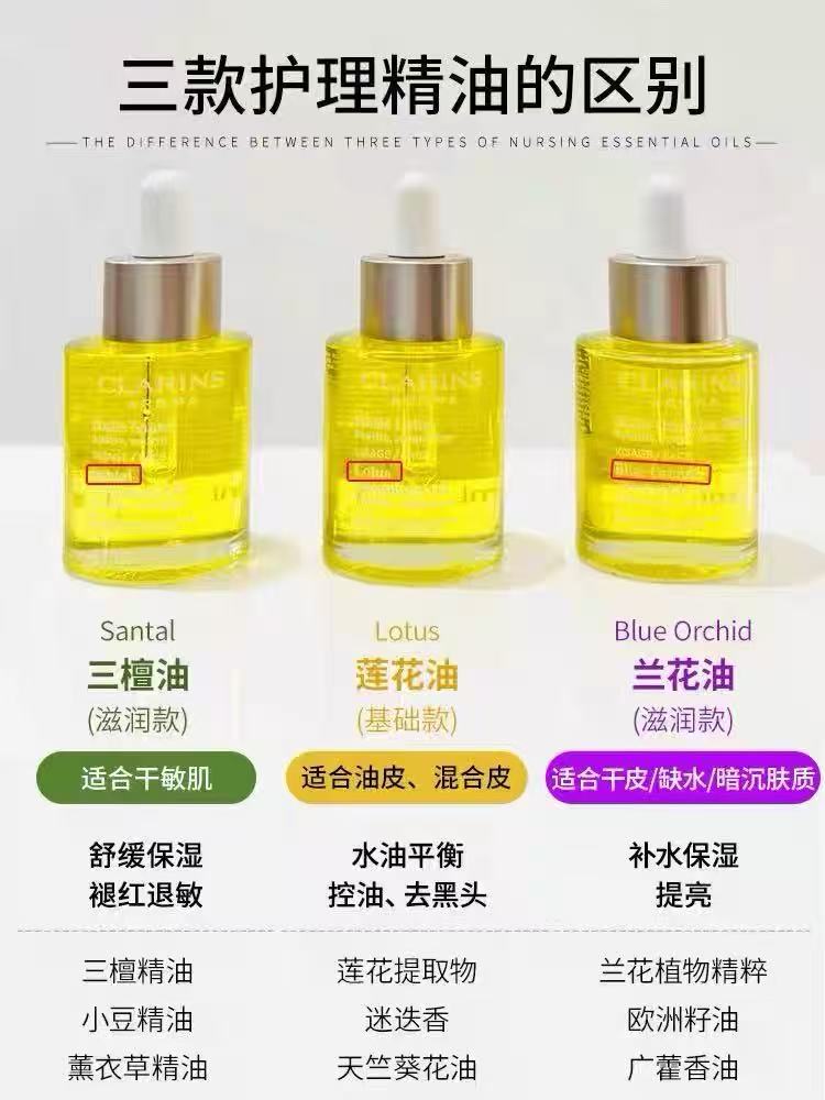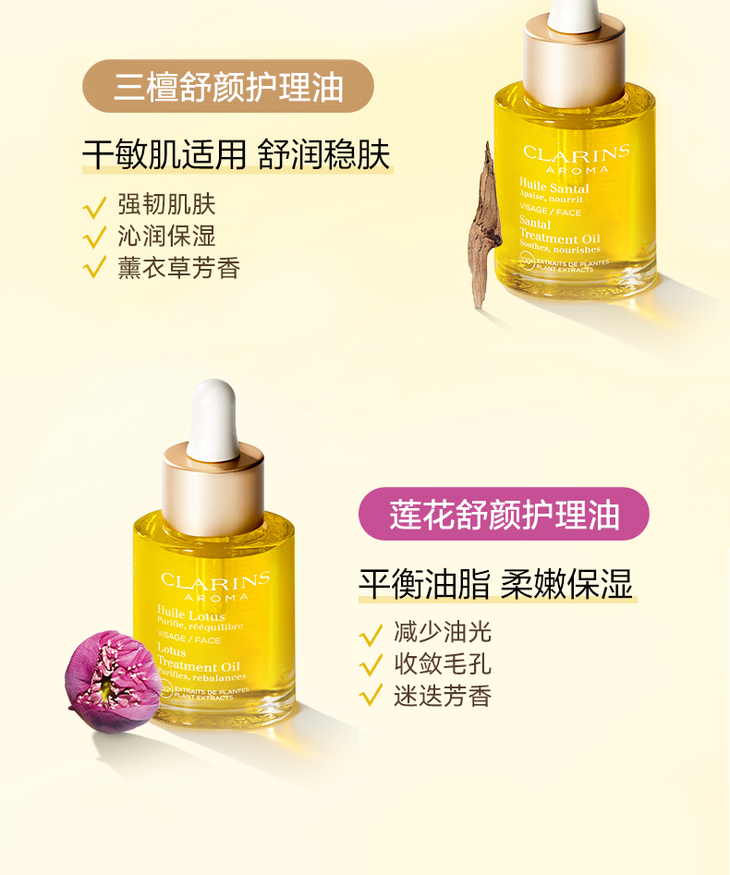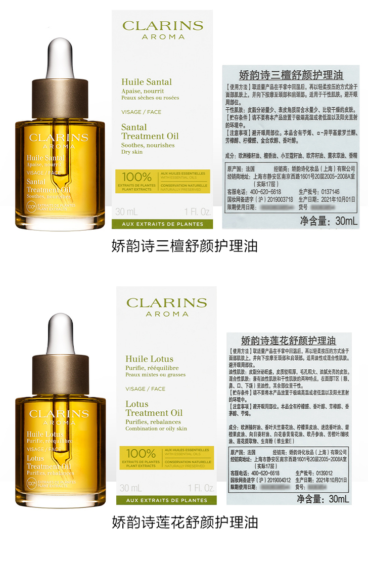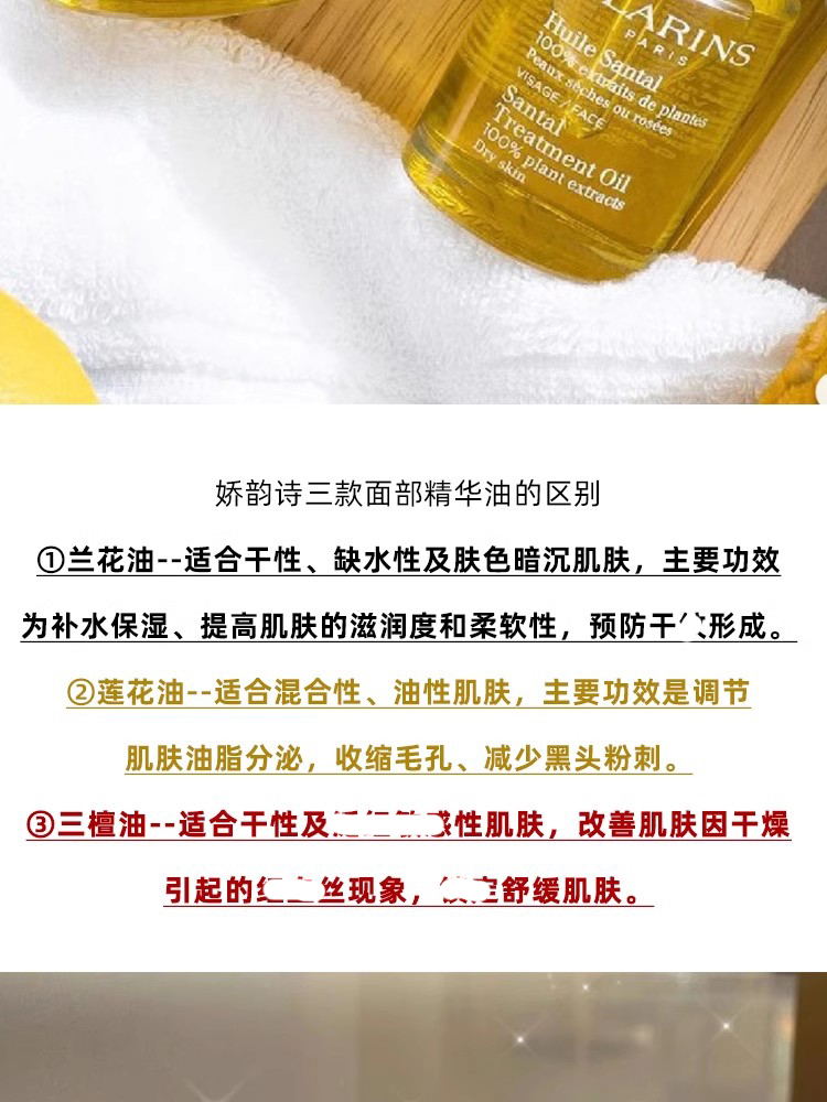 【年终限时大促】(一般贸易)clarins/娇韵诗舒颜护理面部精华油 兰花油/莲花油/三檀油30ml
