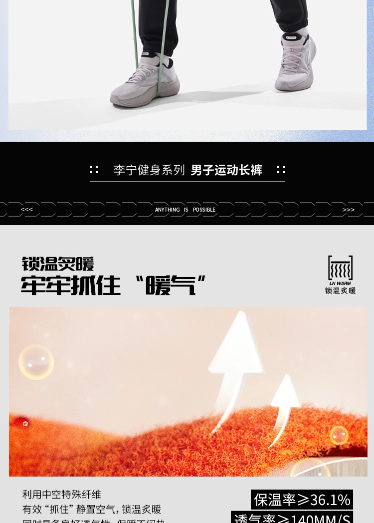 李宁男子束脚加绒保暖运动长裤AYKV627