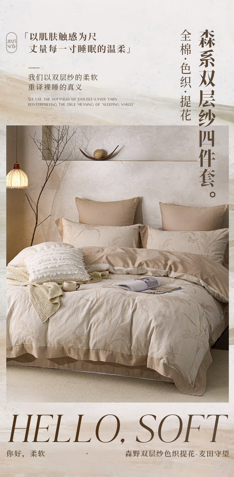 多喜爱 60S全棉双层纱色织提花-麦田守望【100%全棉双层纱】【色织提花】【60S长绒棉】【礼盒包装】柔软细腻 宽边工艺