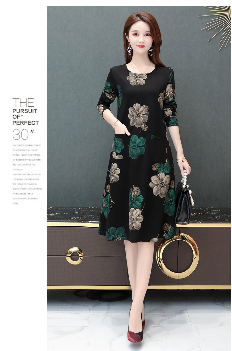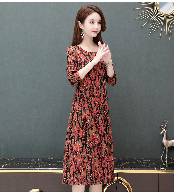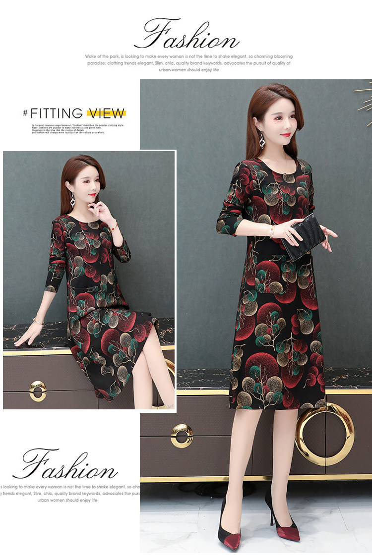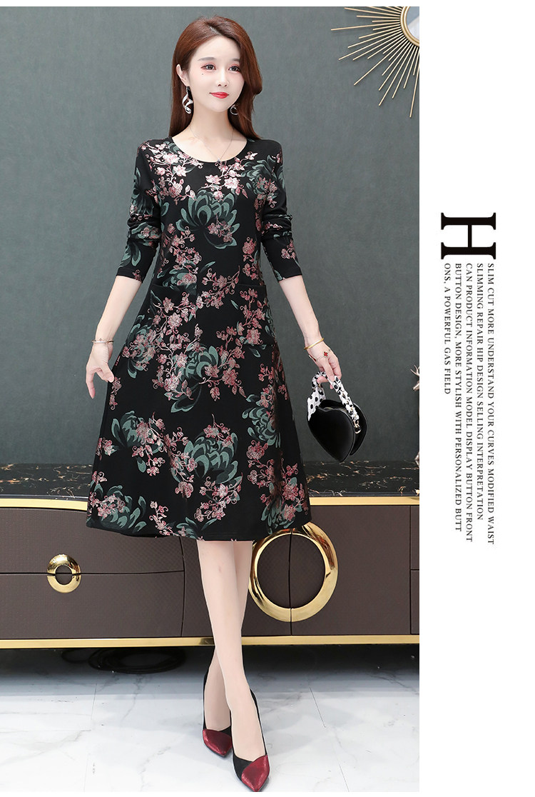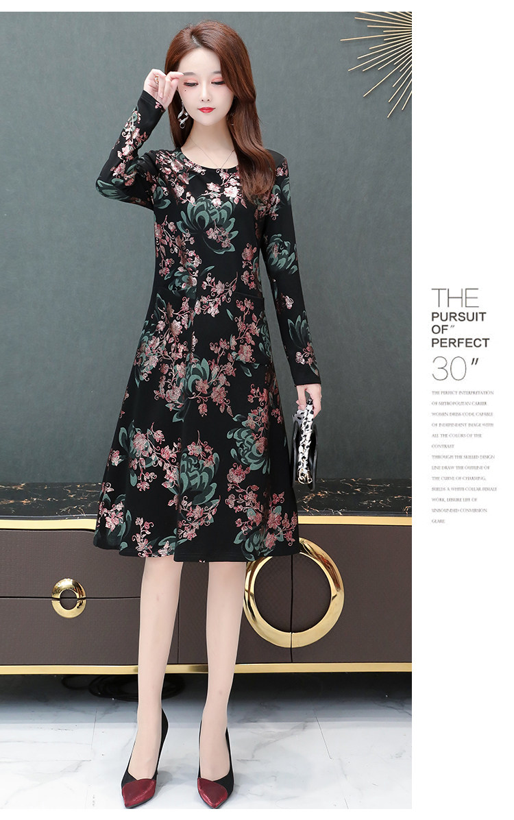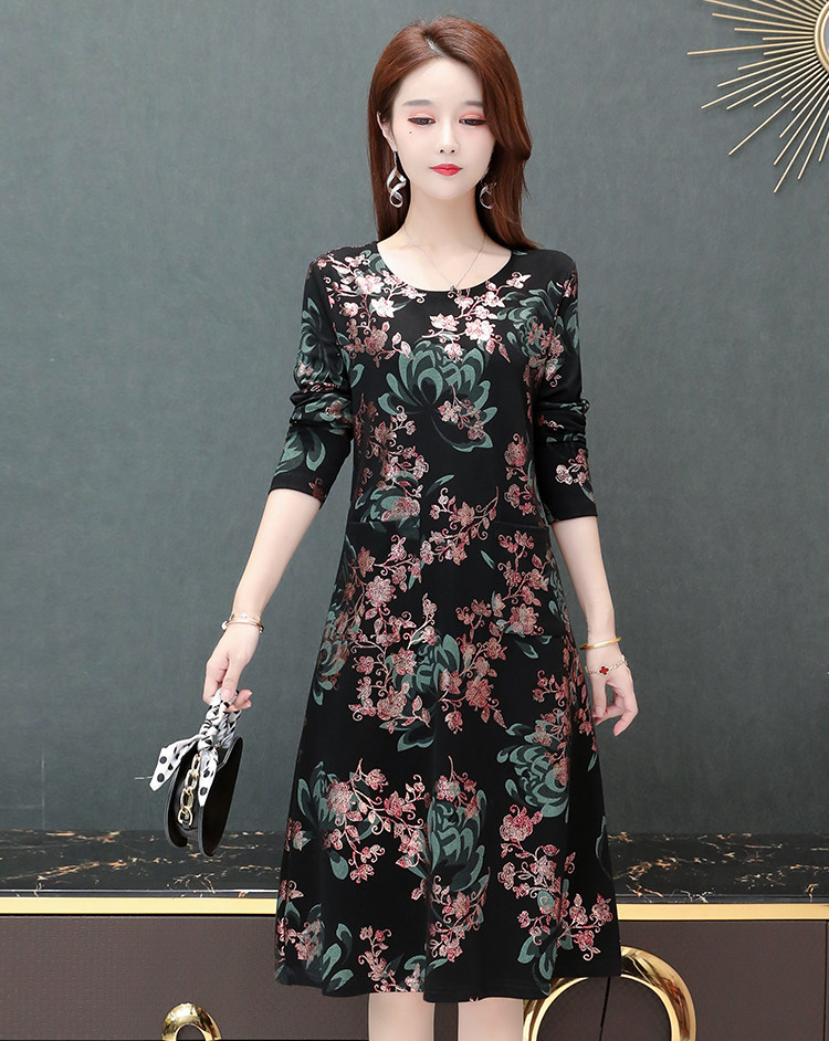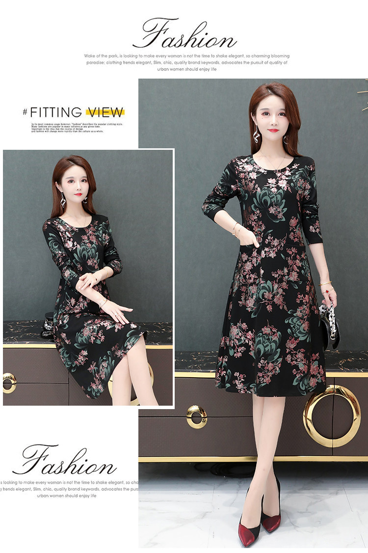 BCYD-YYL2258新款时尚气质百搭圆领中长款印花连衣裙