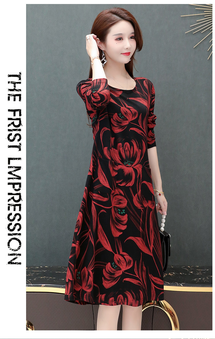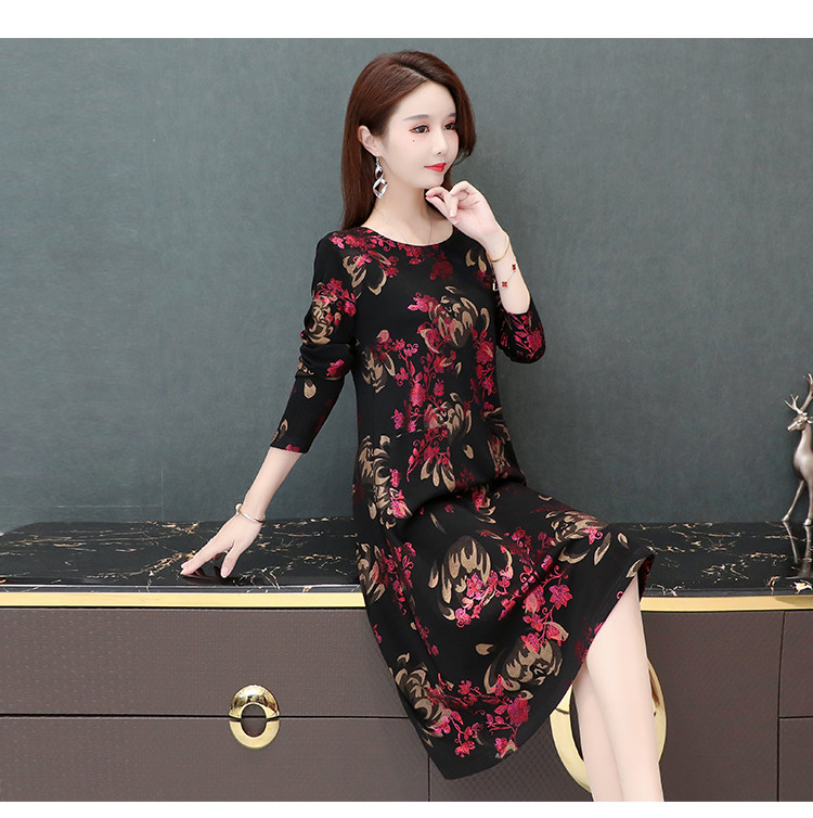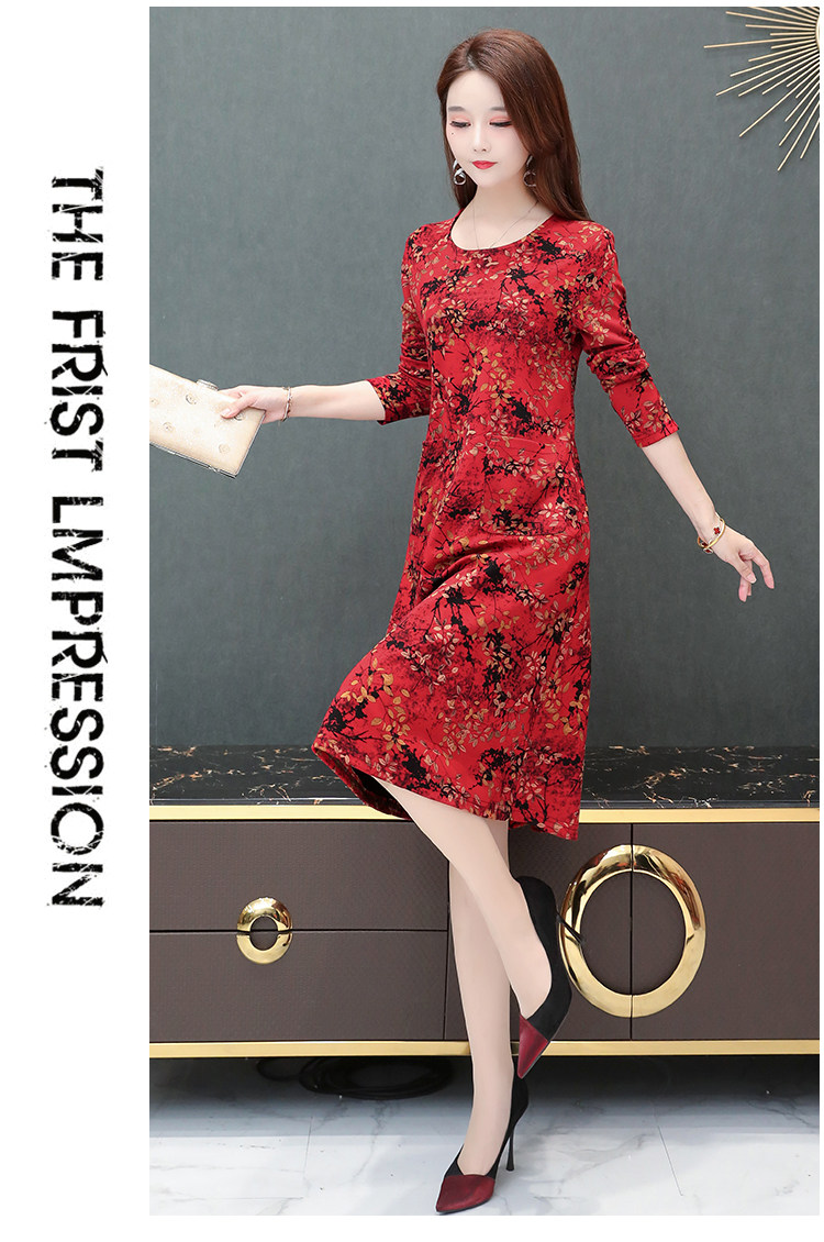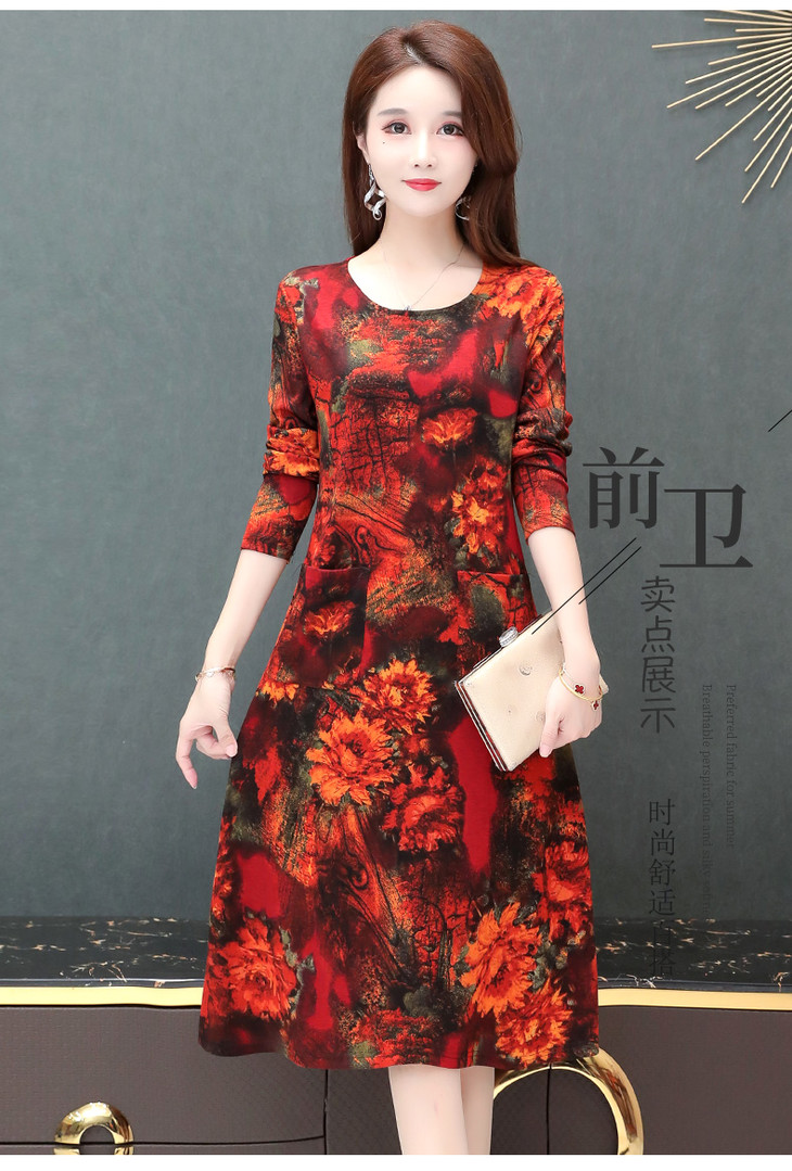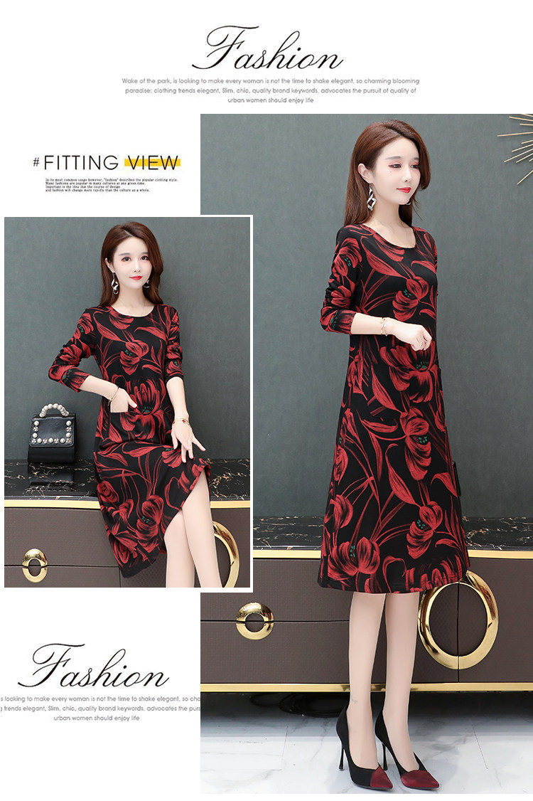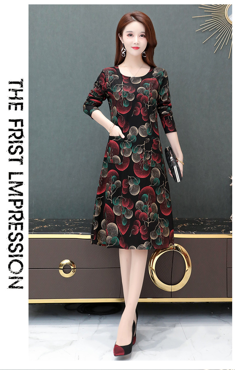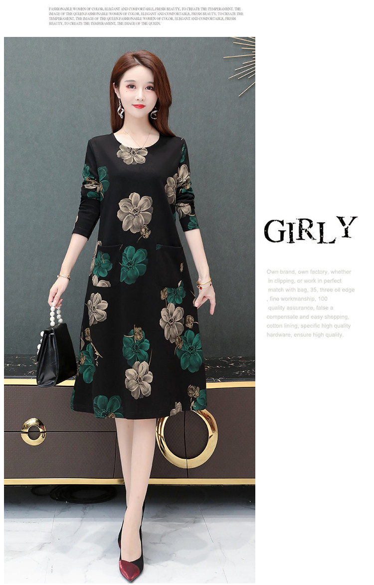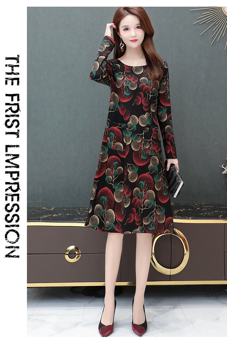 BCYD-YYL2258新款时尚气质百搭圆领中长款印花连衣裙