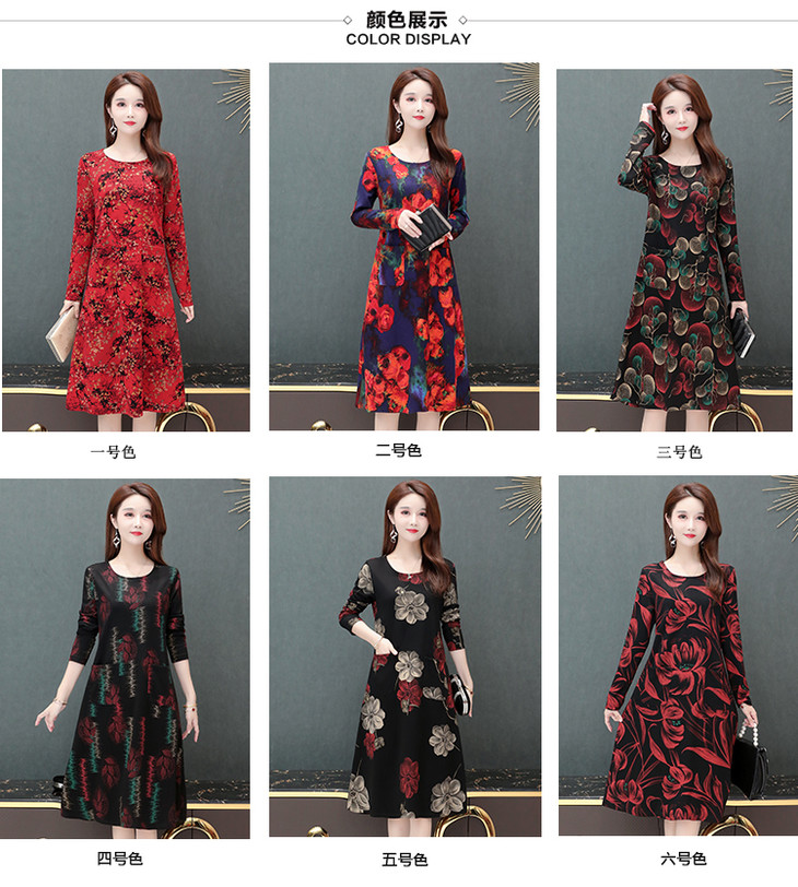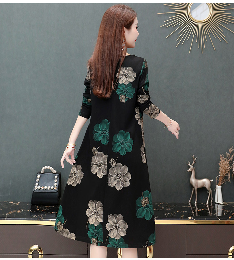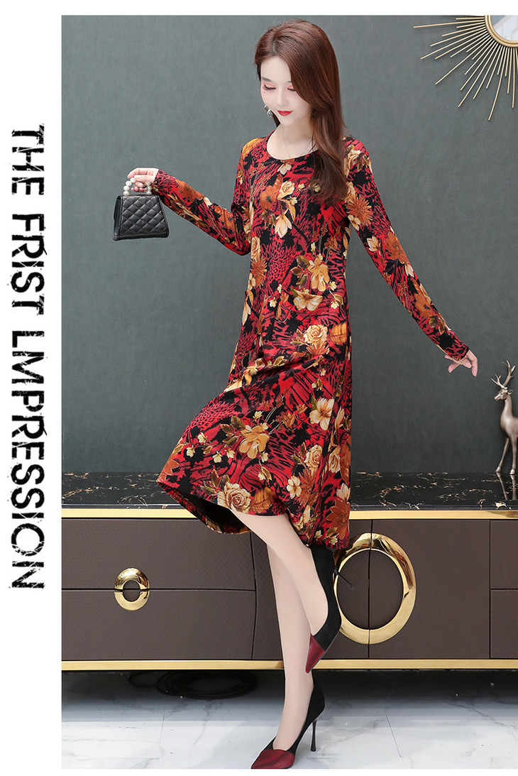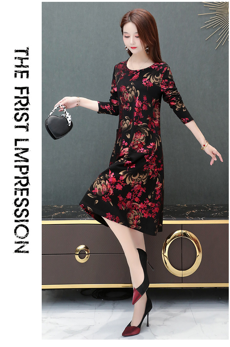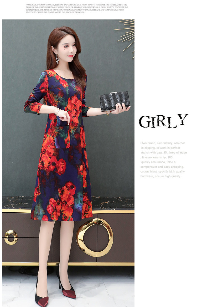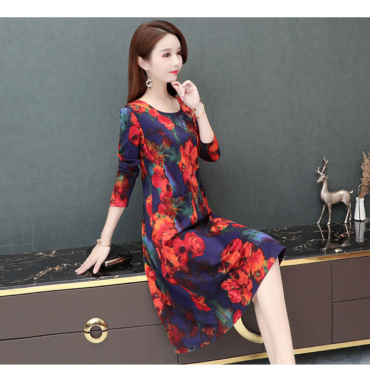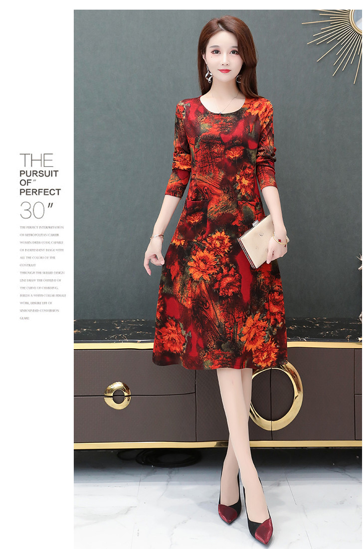 BCYD-YYL2258新款时尚气质百搭圆领中长款印花连衣裙