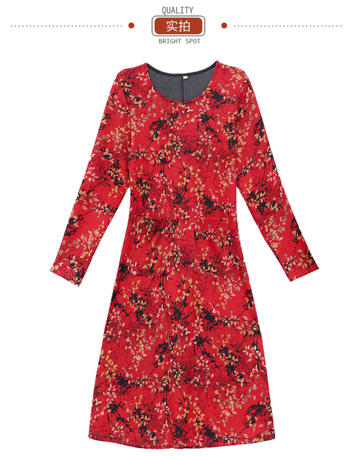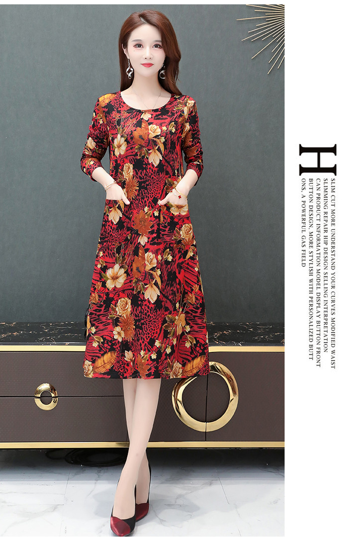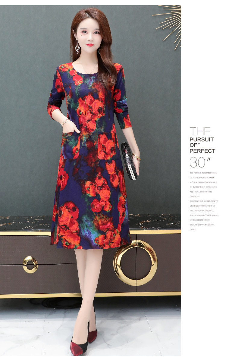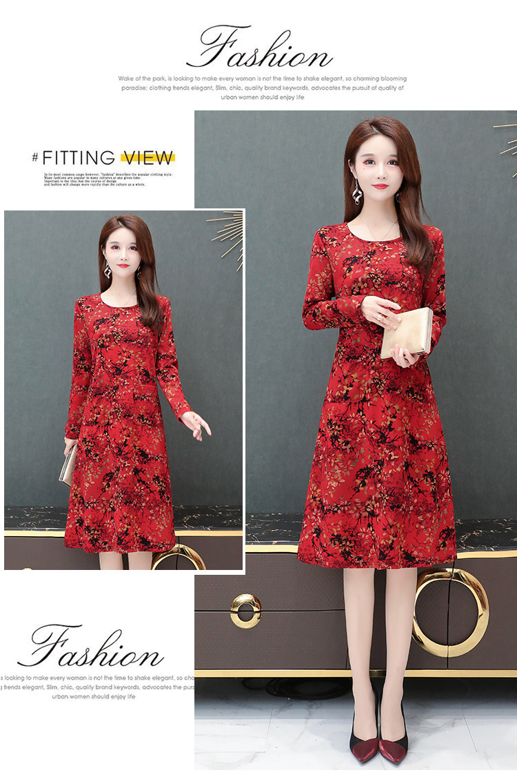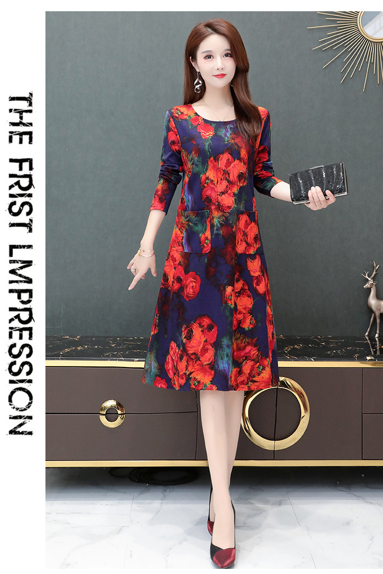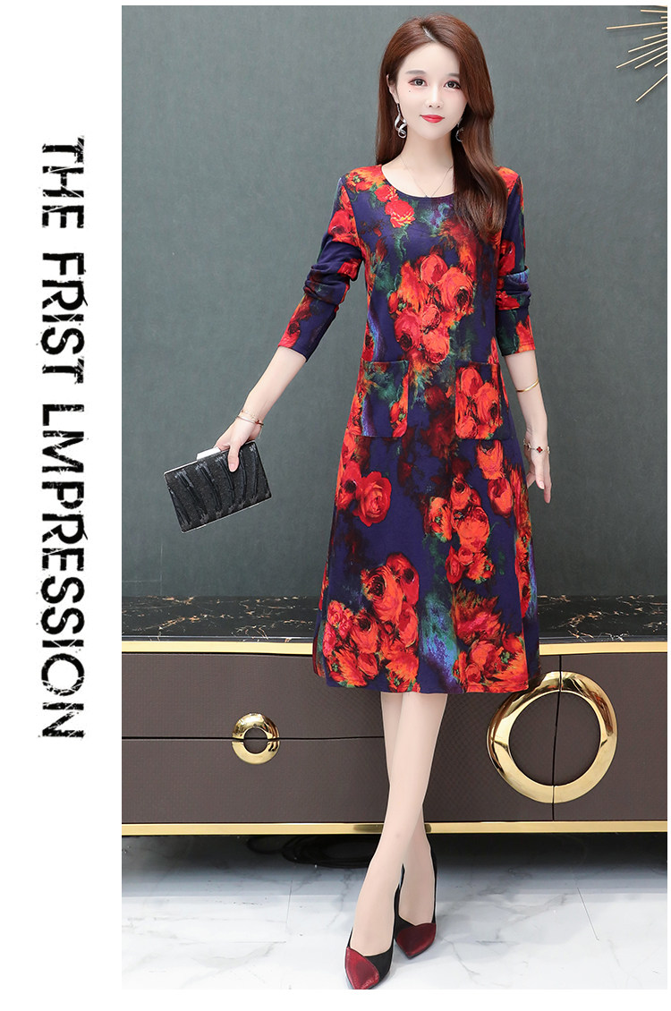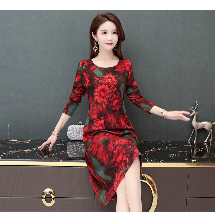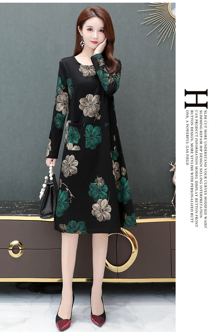 BCYD-YYL2258新款时尚气质百搭圆领中长款印花连衣裙