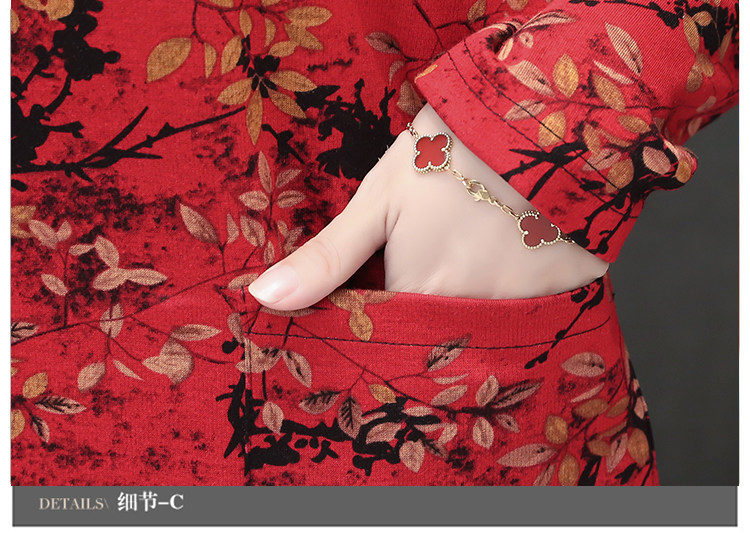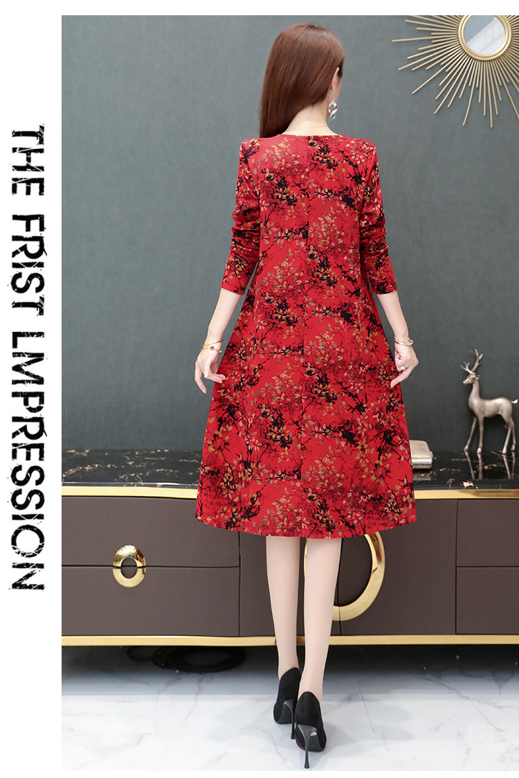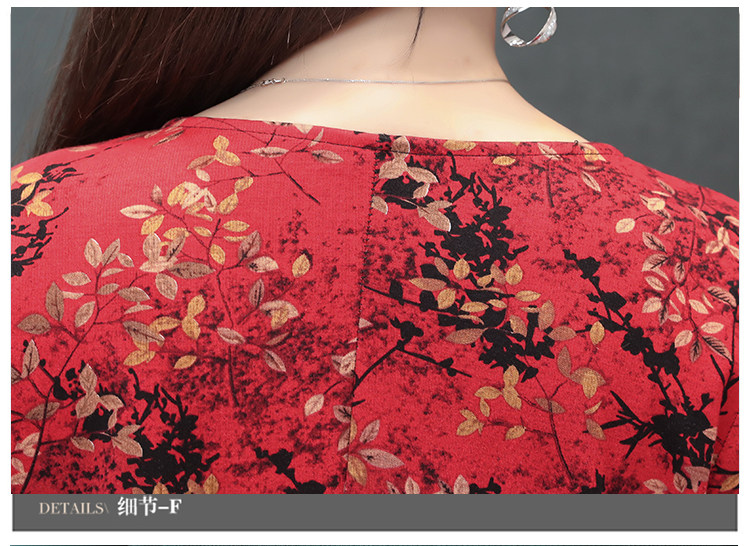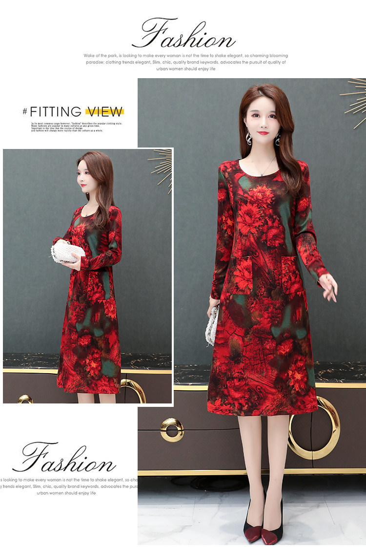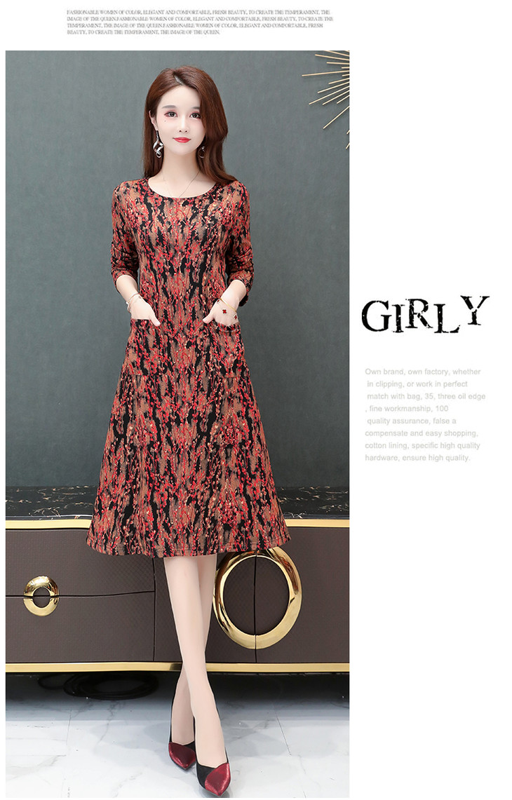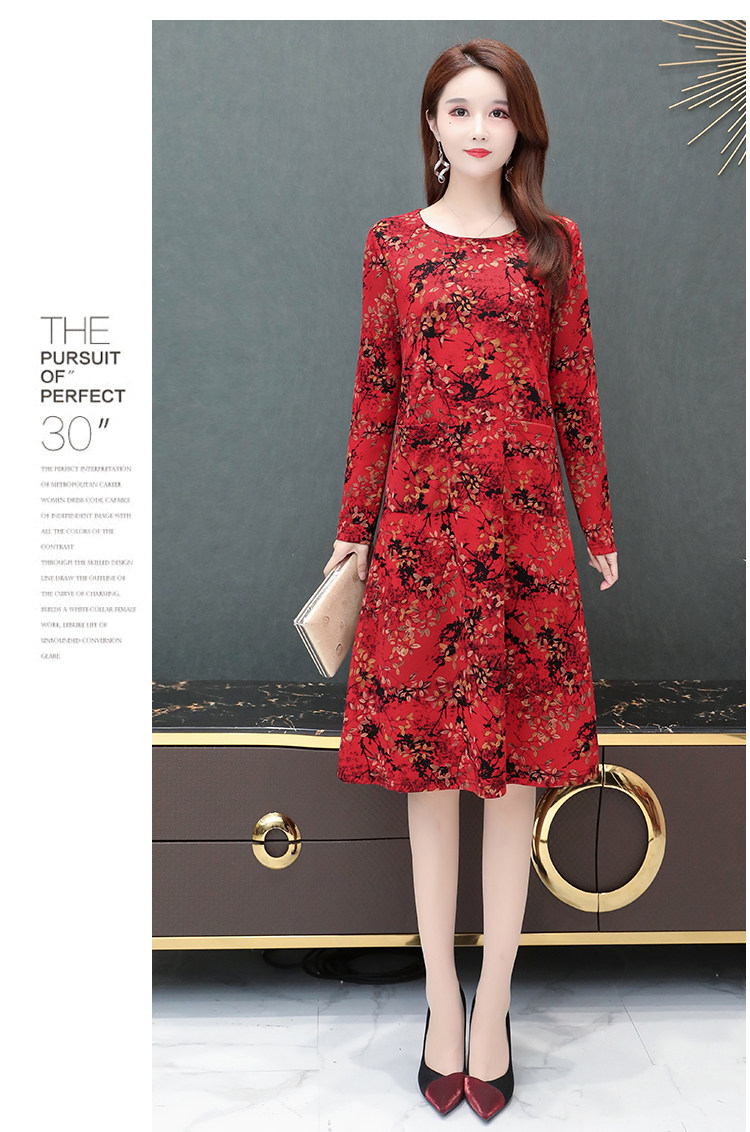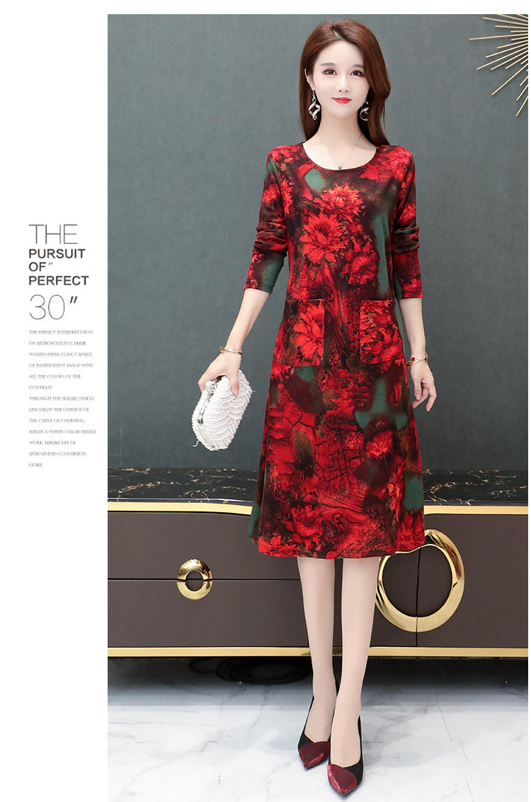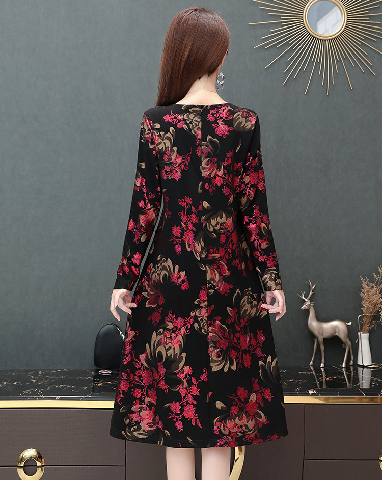 BCYD-YYL2258新款时尚气质百搭圆领中长款印花连衣裙