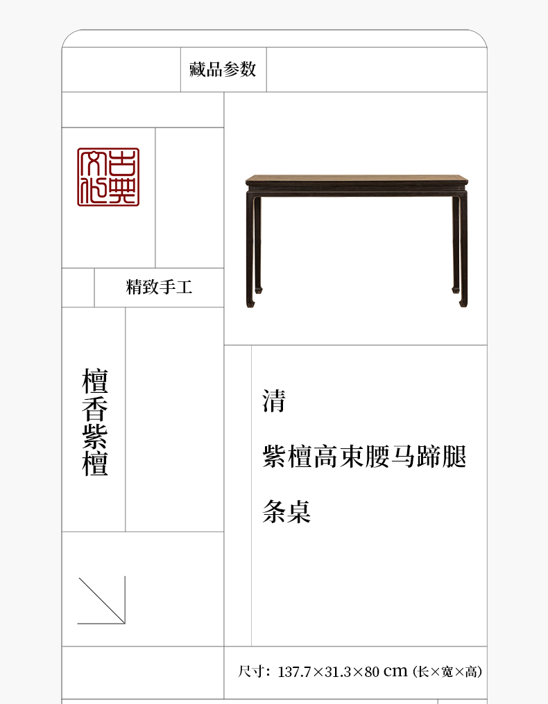 清 紫檀高束腰马蹄腿条桌