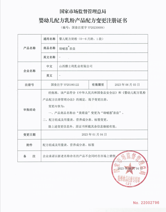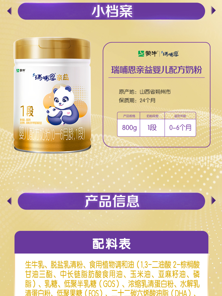 蒙牛瑞哺恩亲益1段婴儿配方奶粉800g(A2奶源版)