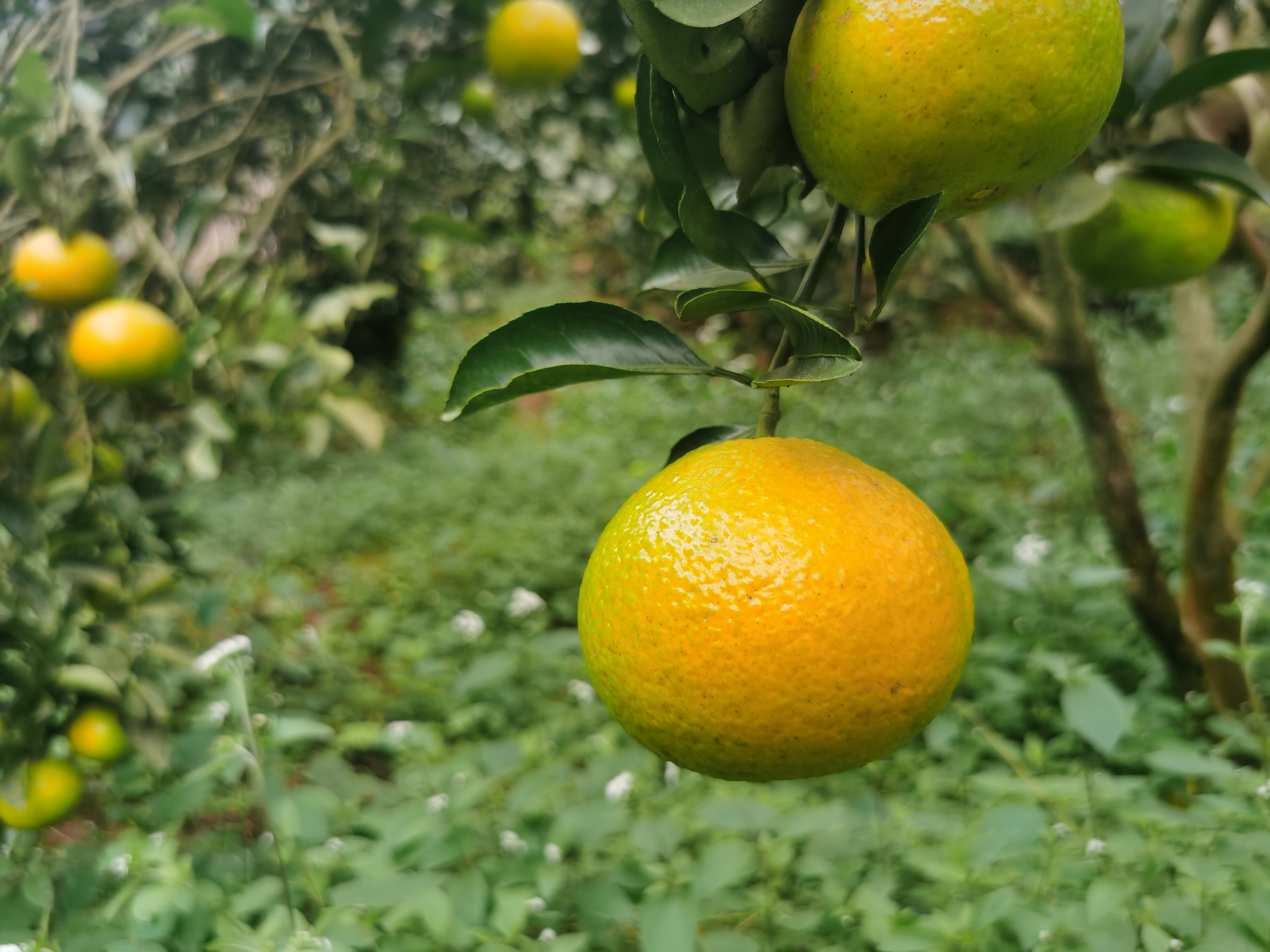 桔柚2月春季开花,经历十个月,桔柚在12月冬季转黄。