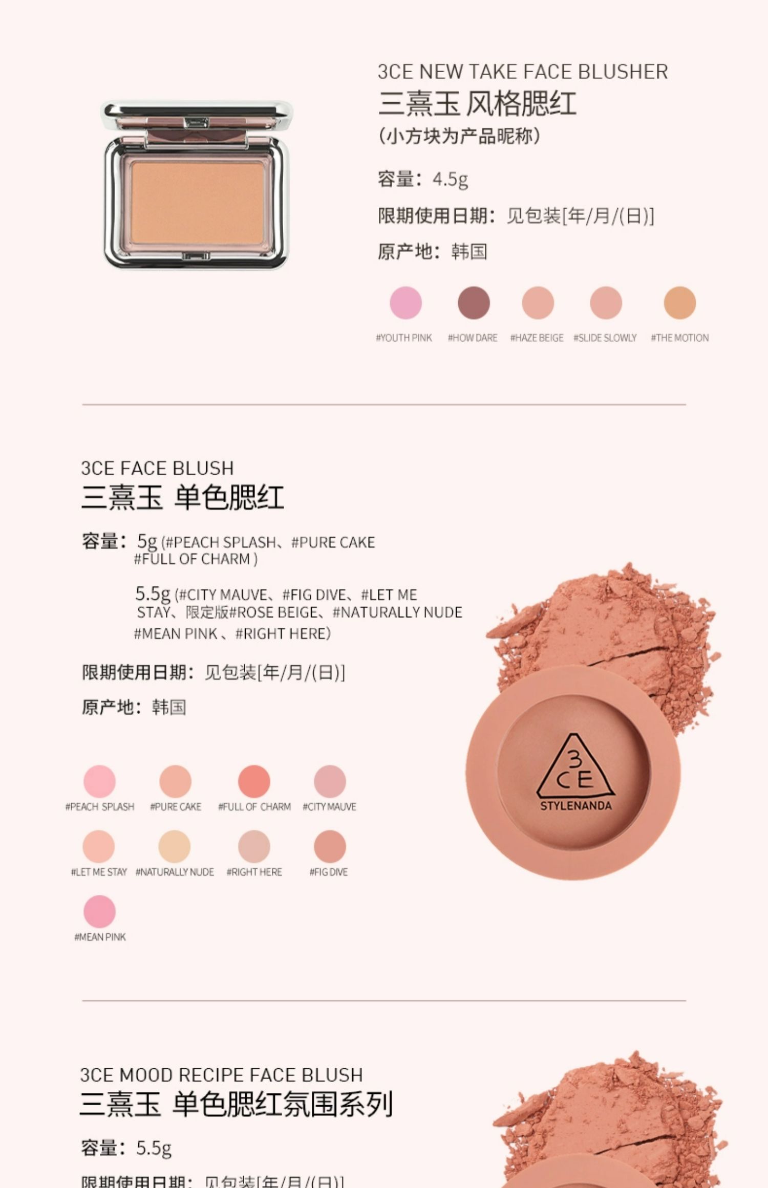 【保税仓】3CE三熹玉 新款腮红 4.5g