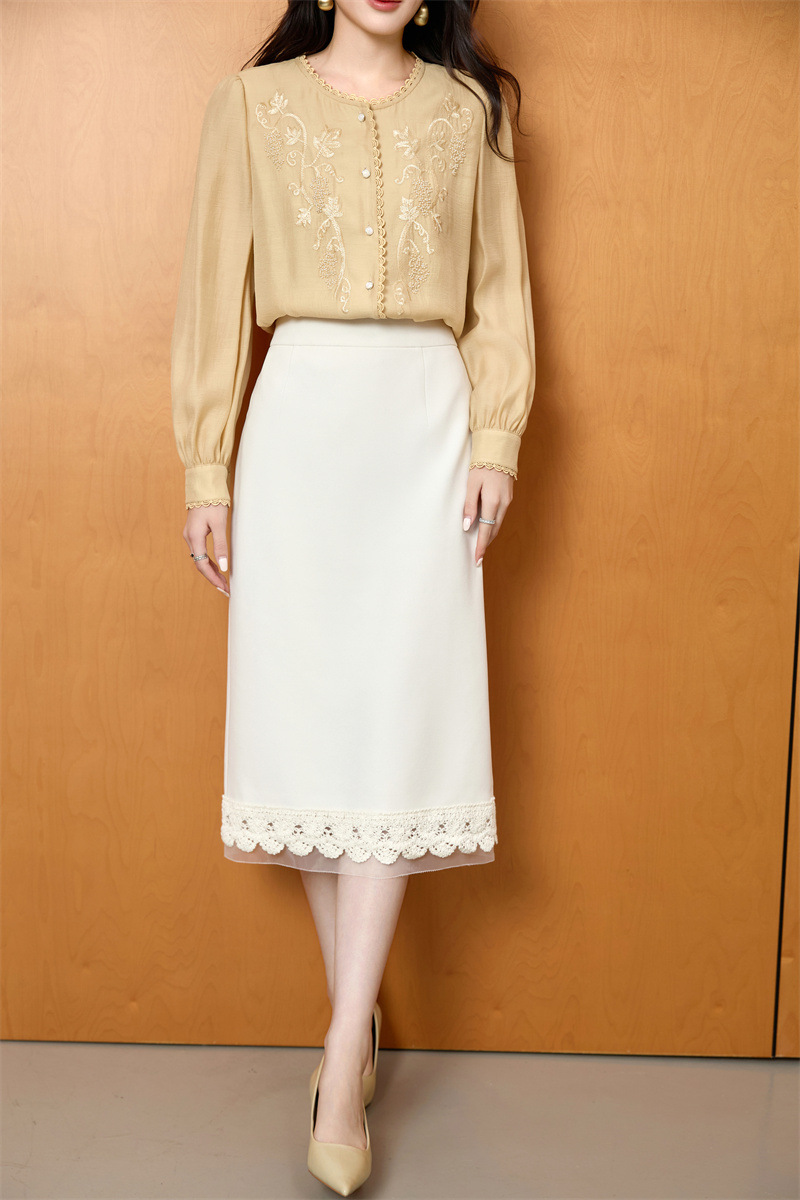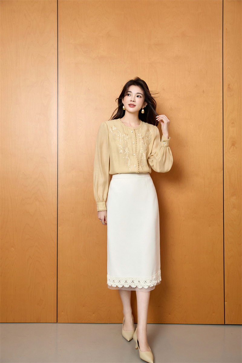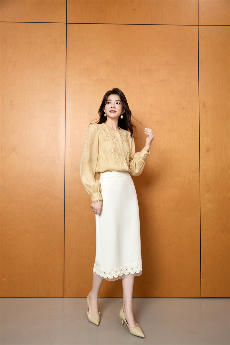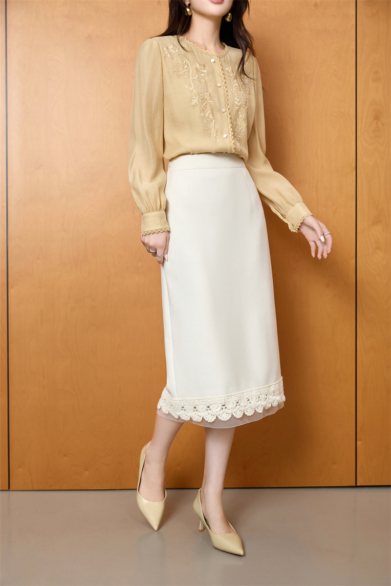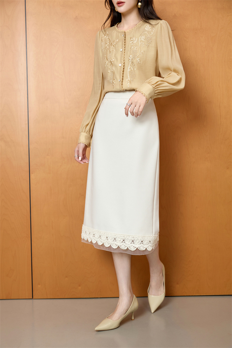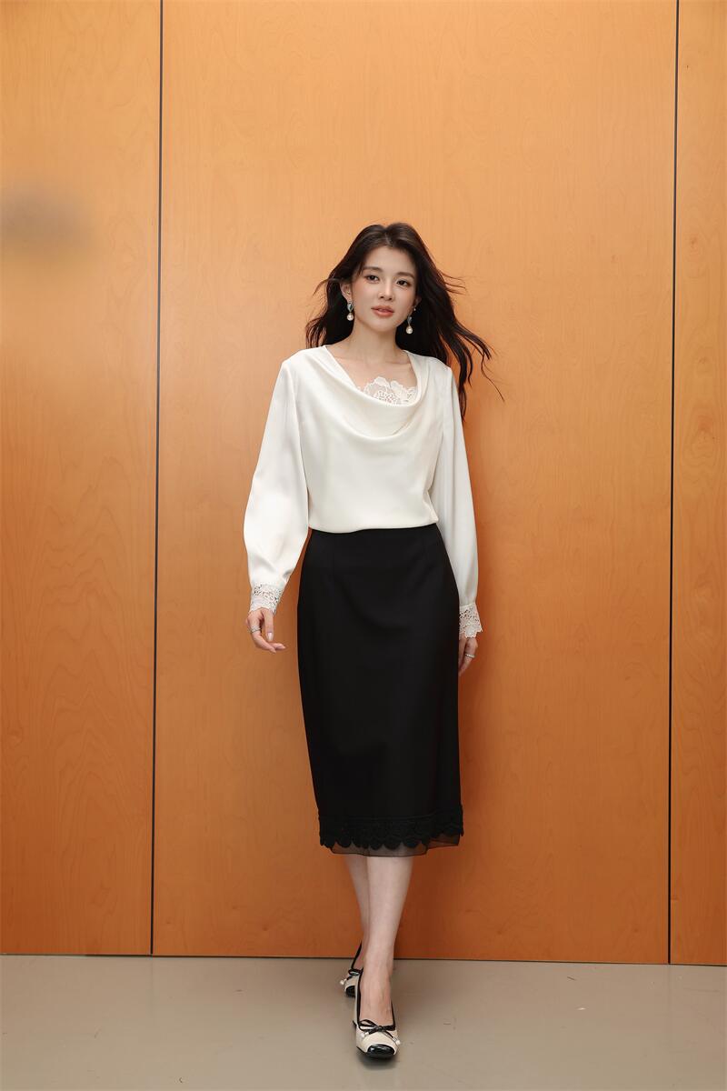 「自」全新升级【铂金会员165/天猫219/差价54】(04217)洛诗琳法式镂空蕾丝半身裙2025秋季气质高腰直筒通勤半裙女