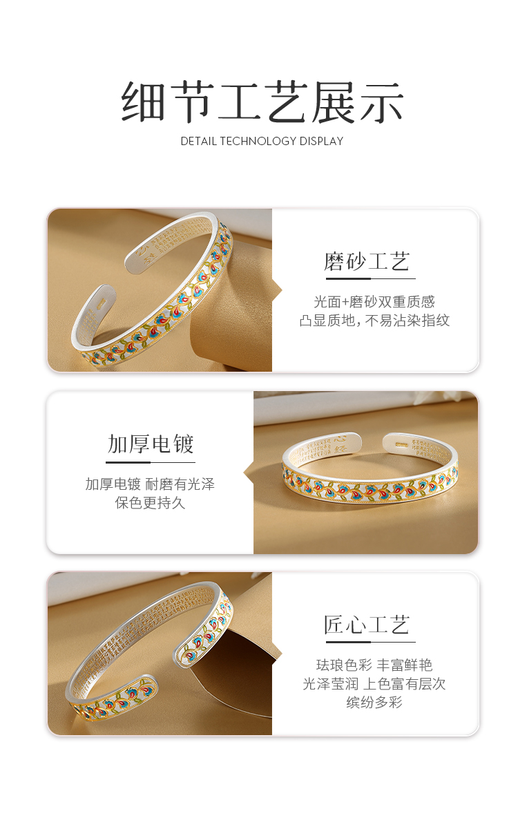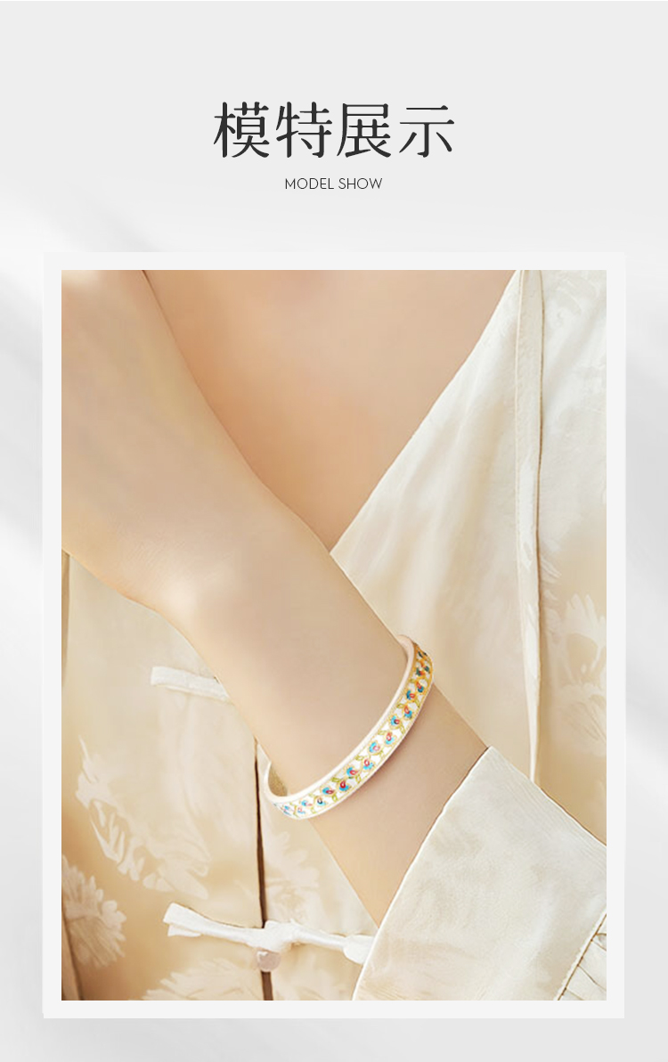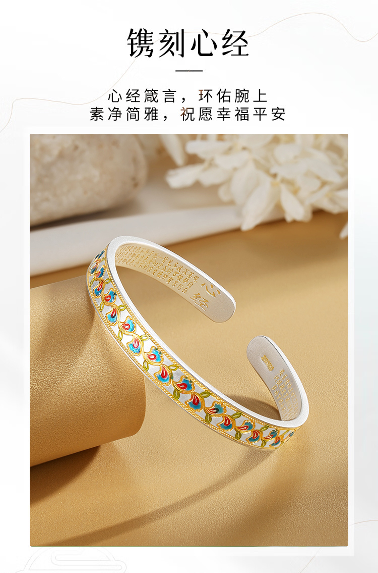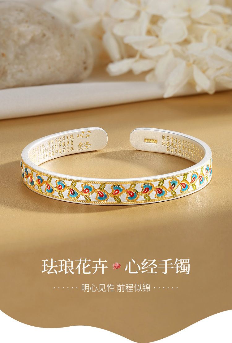 Winy 9999足银花影草语手镯银色描金滴胶工艺配证书送妈妈婆婆节日生日礼物