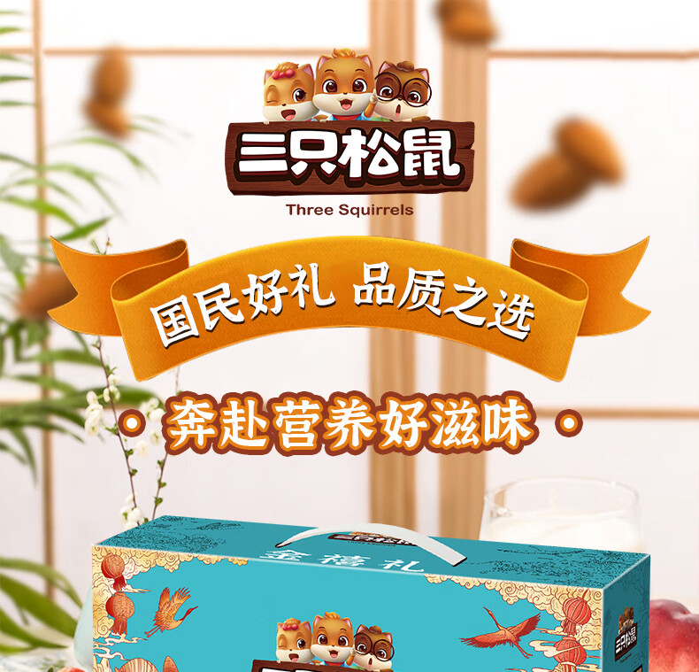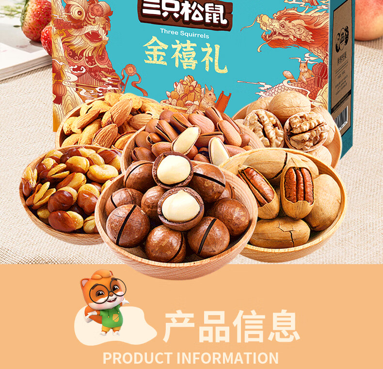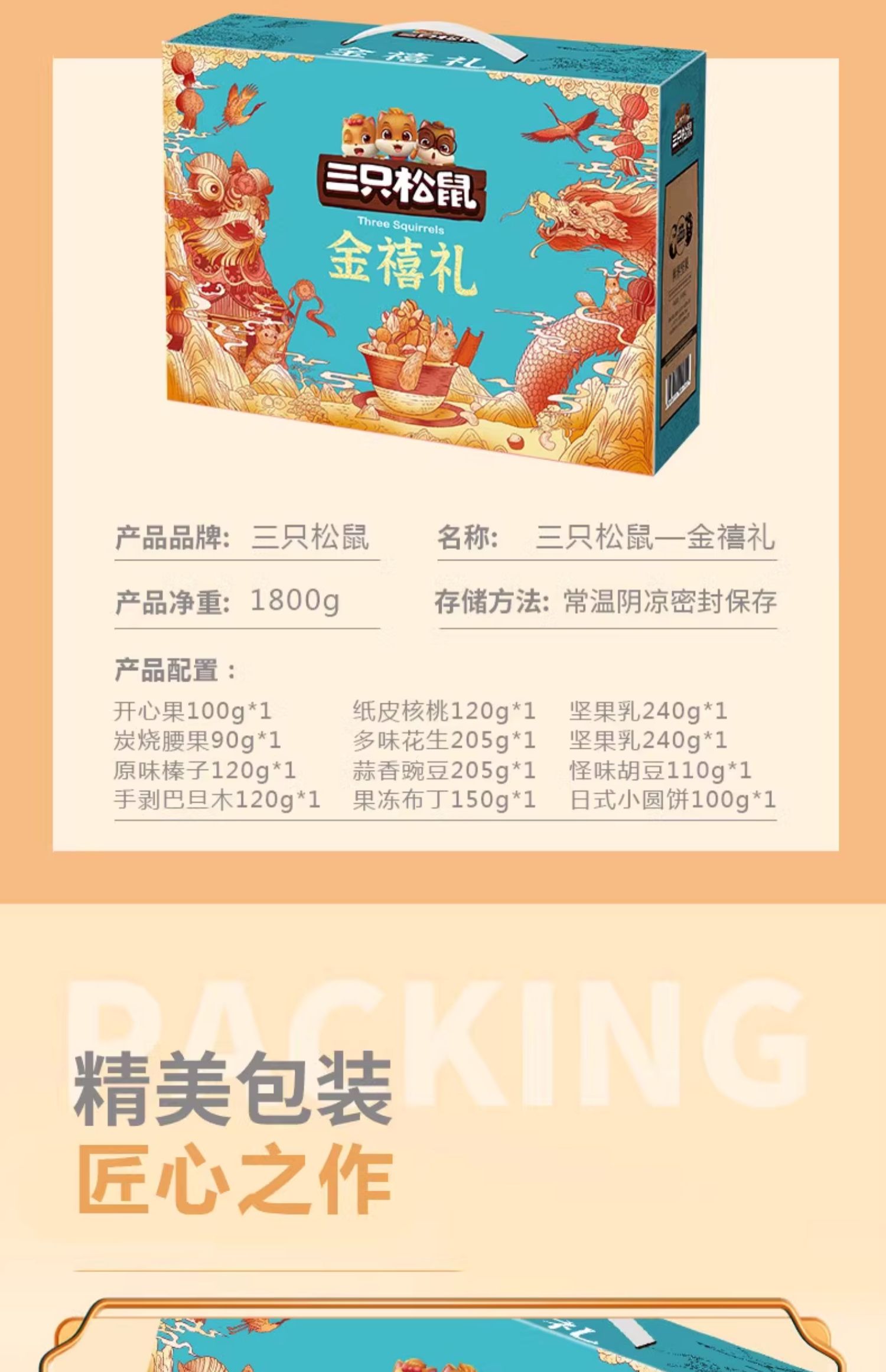 三只松鼠坚果礼盒坚果炒货休闲零食大礼包金禧礼1800g