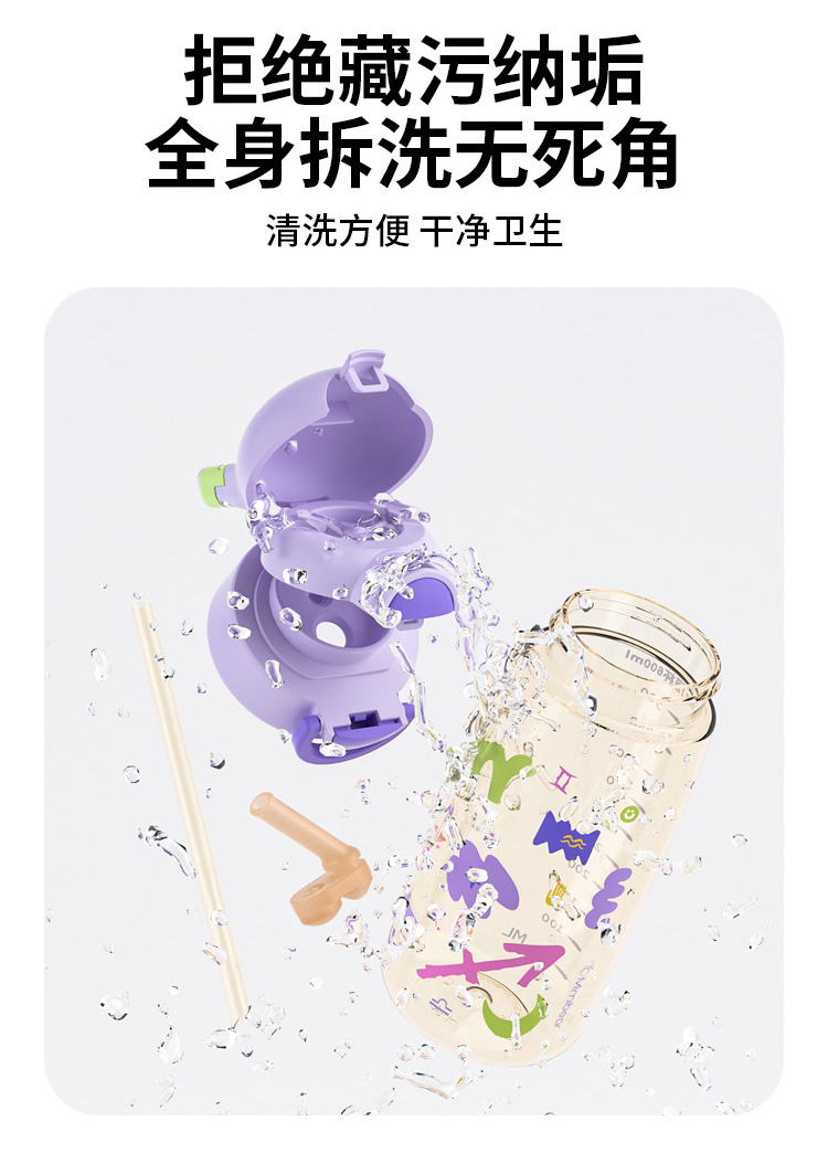 ✅ 全身可拆卸杯盖、吸管、杯身全部分体脏了一冲就干净,死角也能轻松洗再也不用为洗不干净水杯头疼!