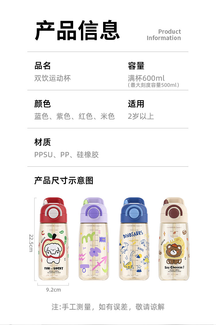 ✅ 刻度清晰超贴心杯身刻度一目了然每天喝多少水一目了然,轻松督促娃喝水再也不用追着问 “宝宝喝水了没”!