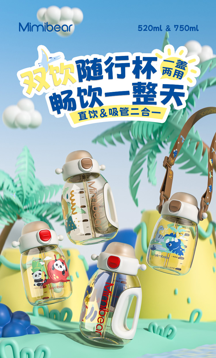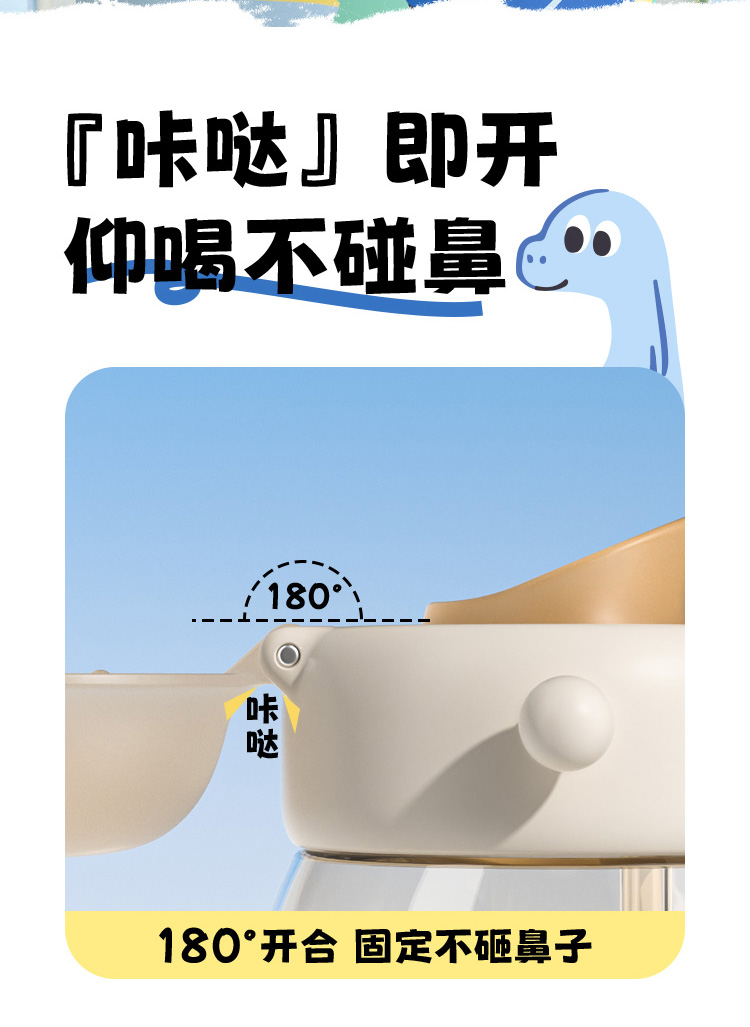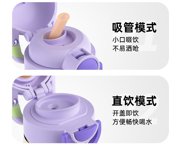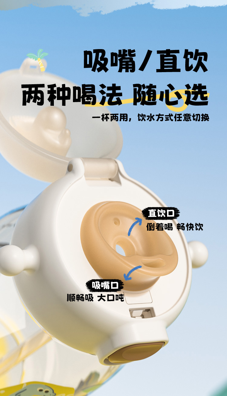 ✅ 一杯双饮设计:吸管 + 直饮一键切换,不用换盖超方便,娃想怎么喝就怎么喝~