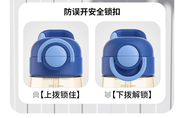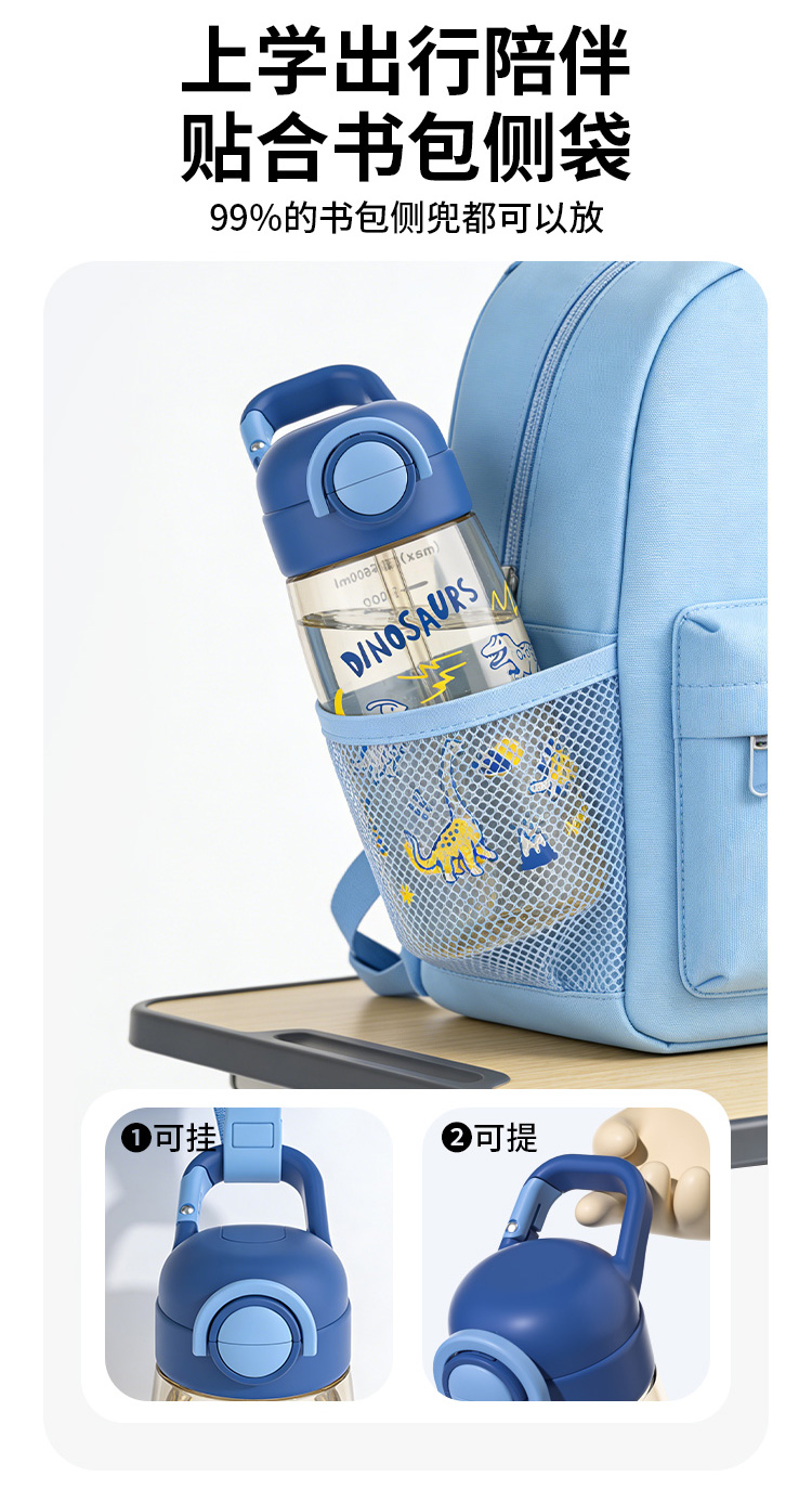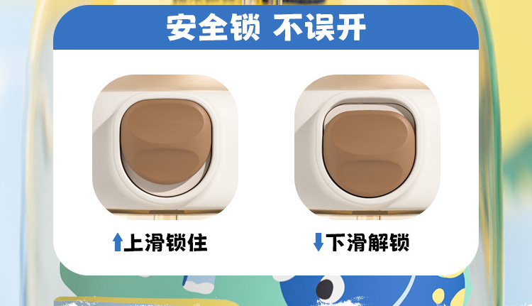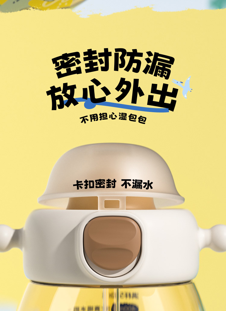 ✅ 密封防漏绝了自带安全锁,轻轻一按就能开盖卡扣设计不漏水,背出门放包里、扔车里再也不用担心娃的书包、衣服湿哒哒!