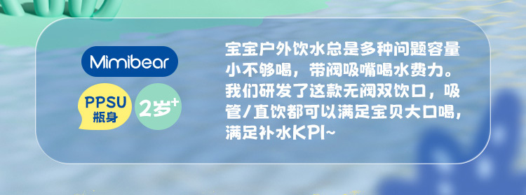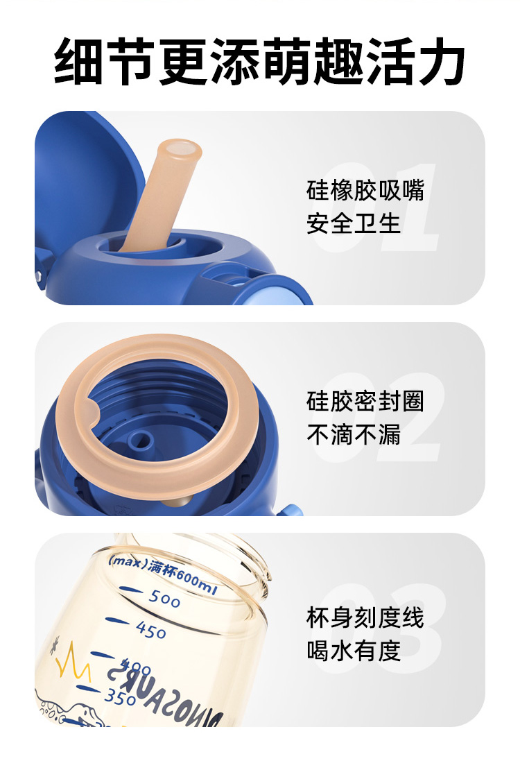 ✅ 双饮自由喝吸嘴 + 直饮两种模式一键切换学步期用吸嘴不呛水,大一点直接直饮喝水自由安排得明明白白!