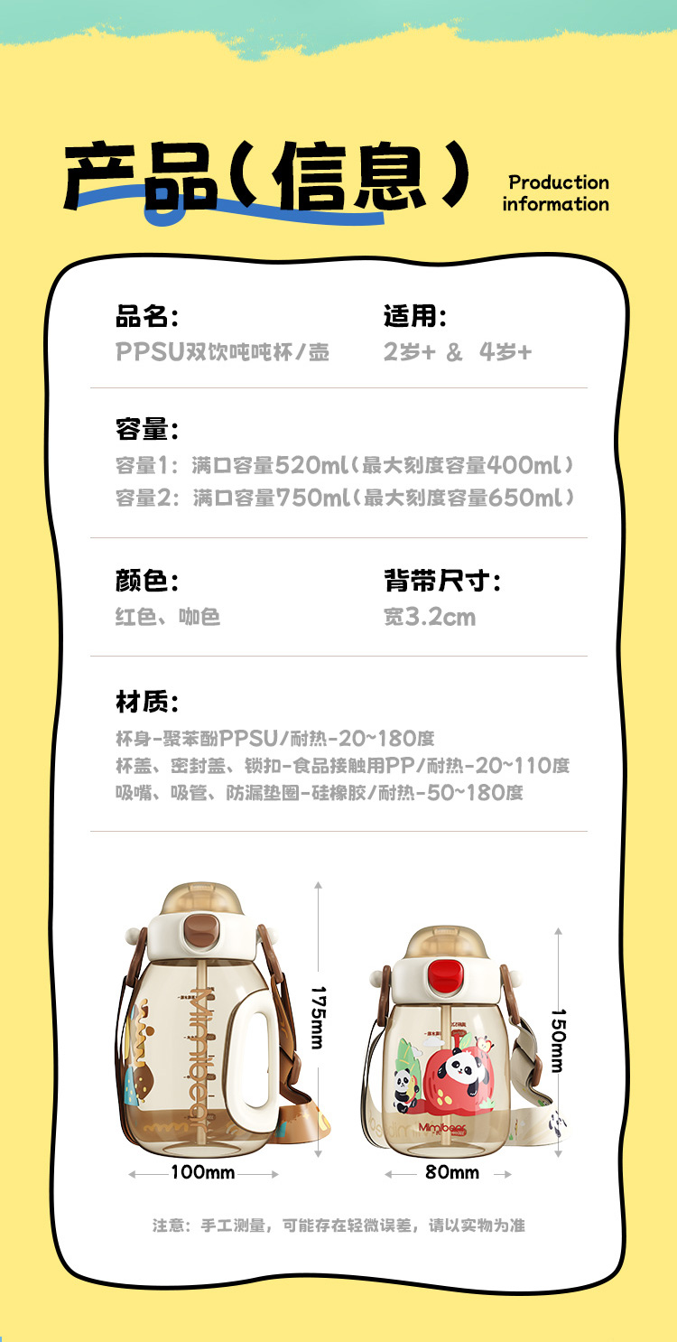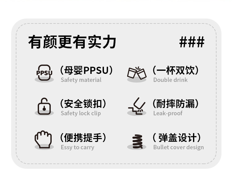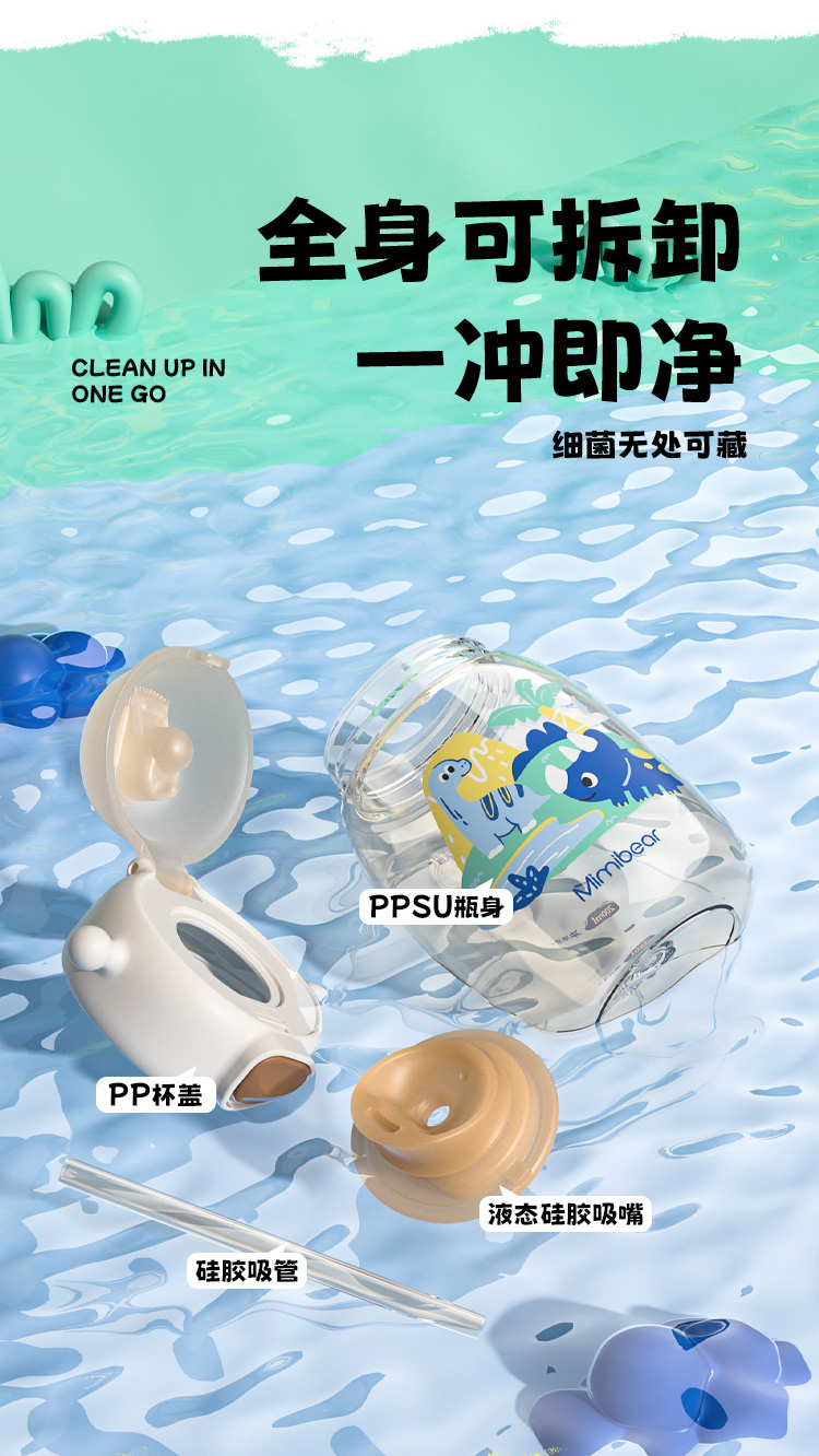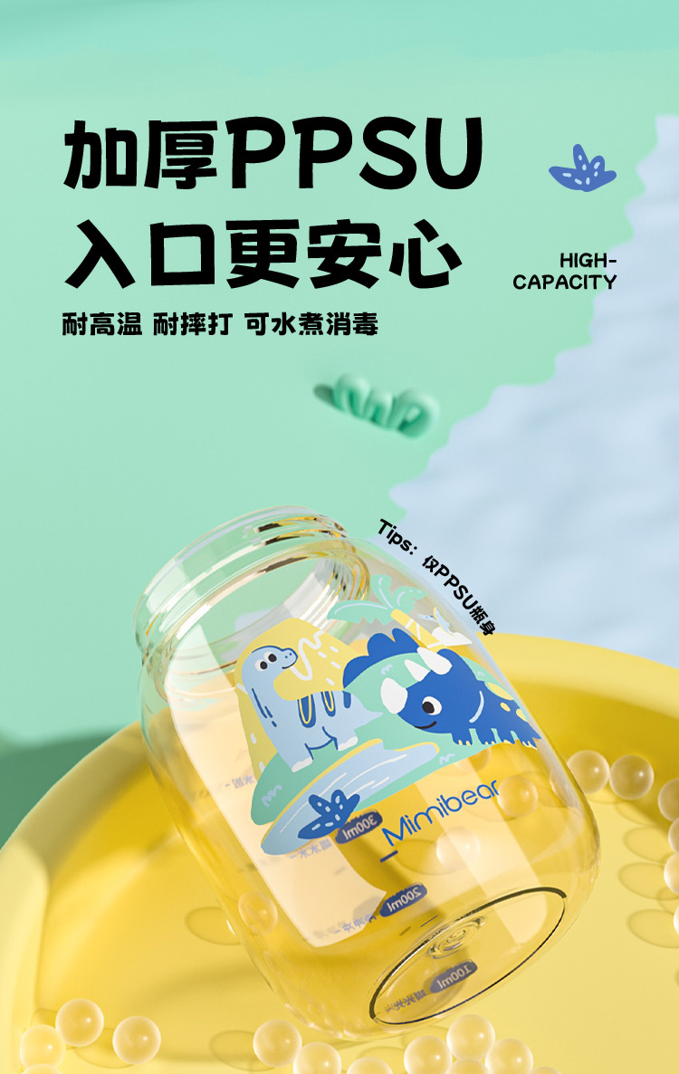 ✅ 母婴级 PPSU 材质:耐高温无异味,耐摔防漏,装开水也安心,啃咬也不怕!