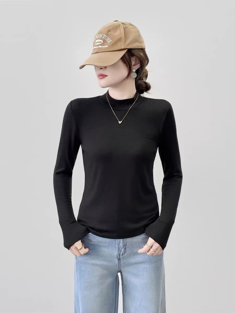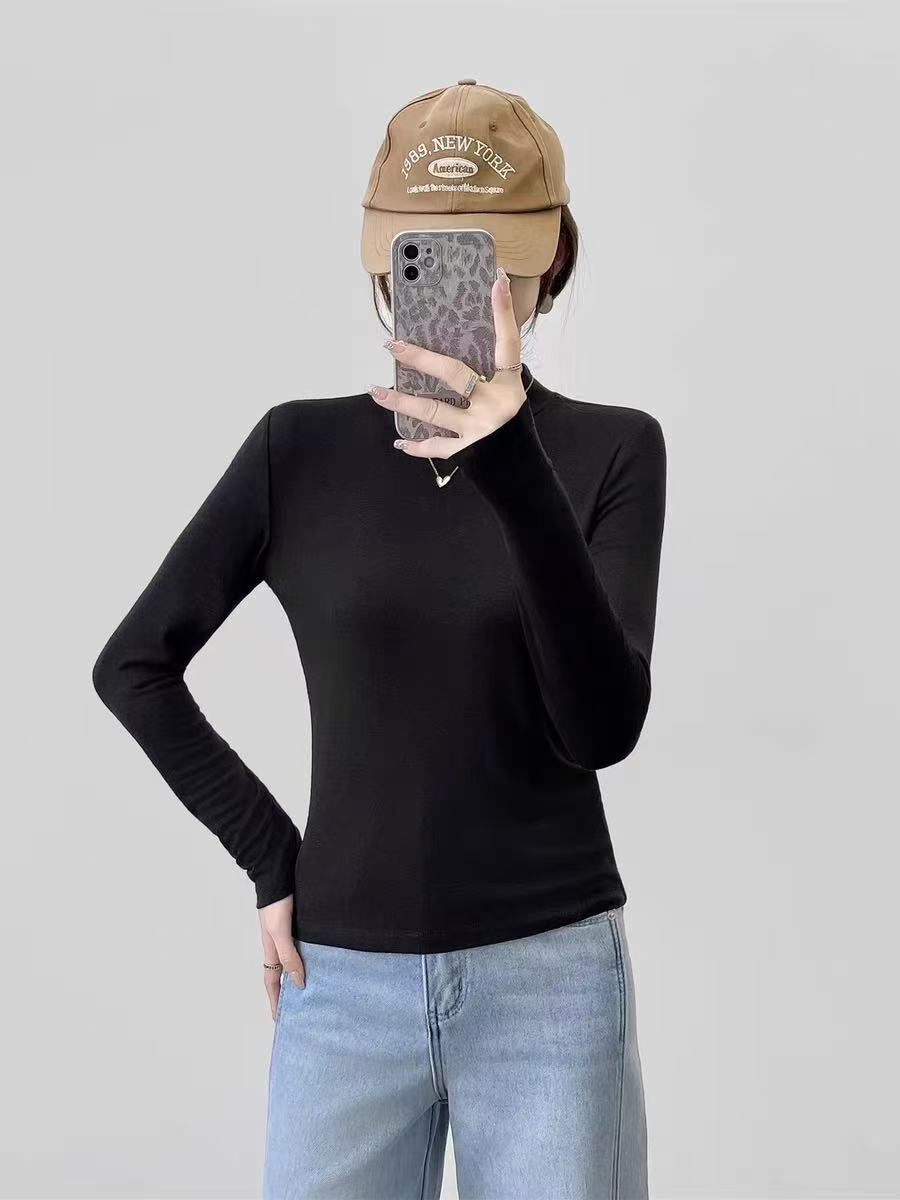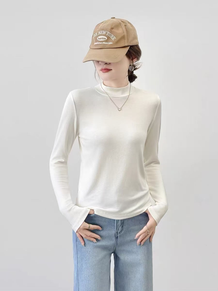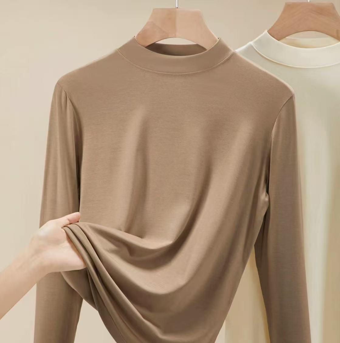 【超值特卖】半高领款~薄款长袖皮肤衣打底衫-喜出