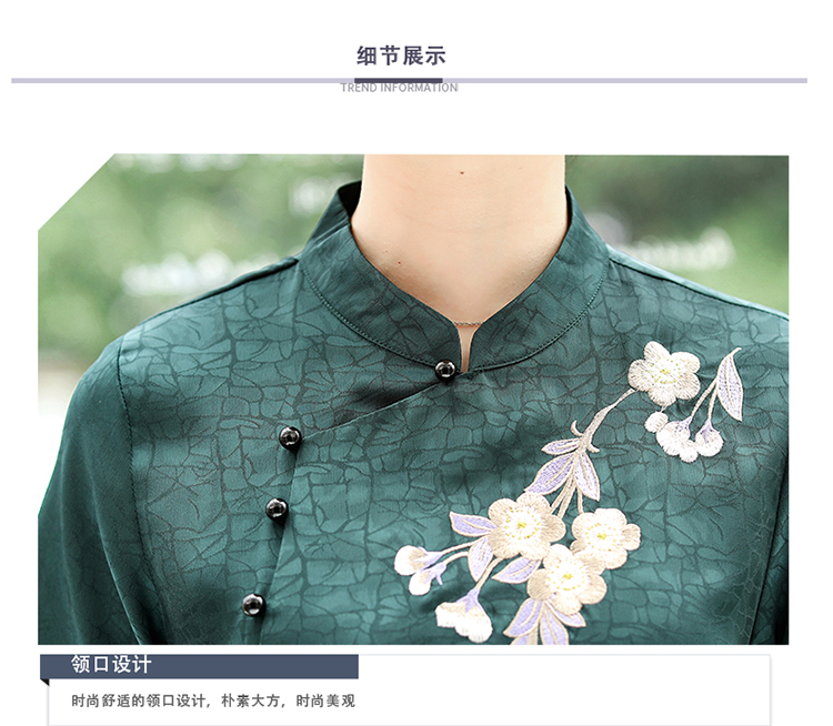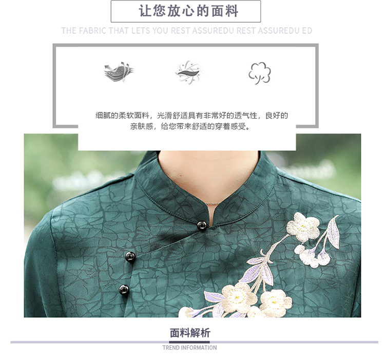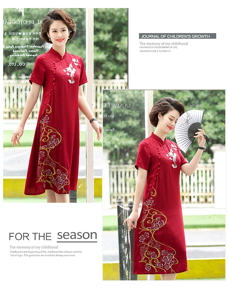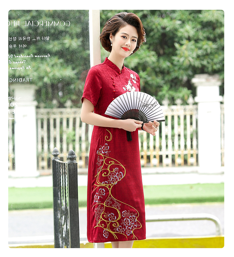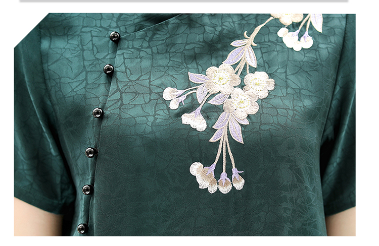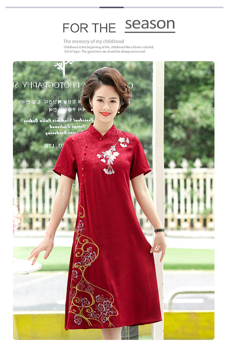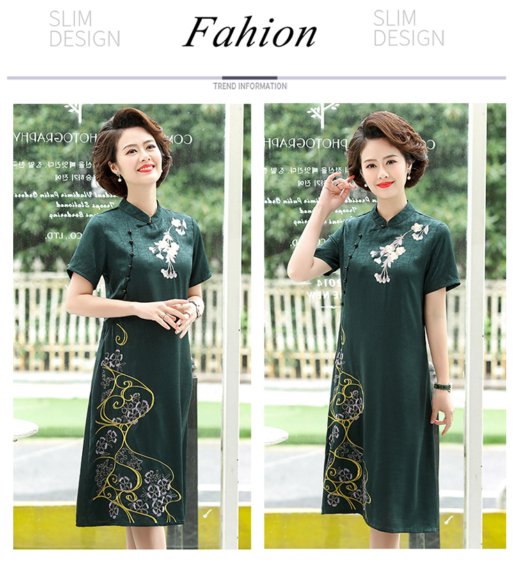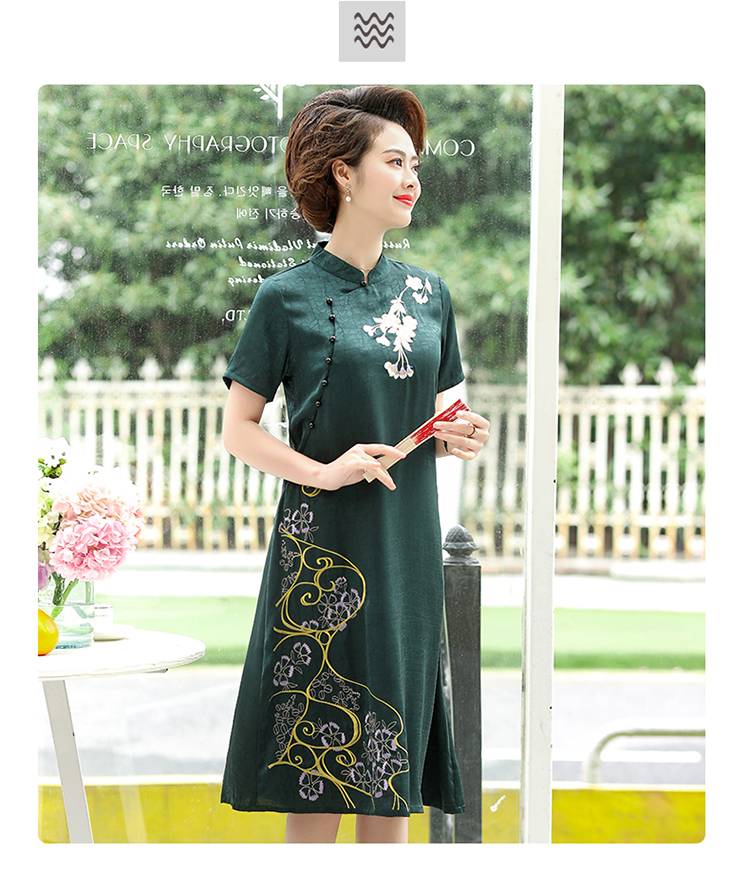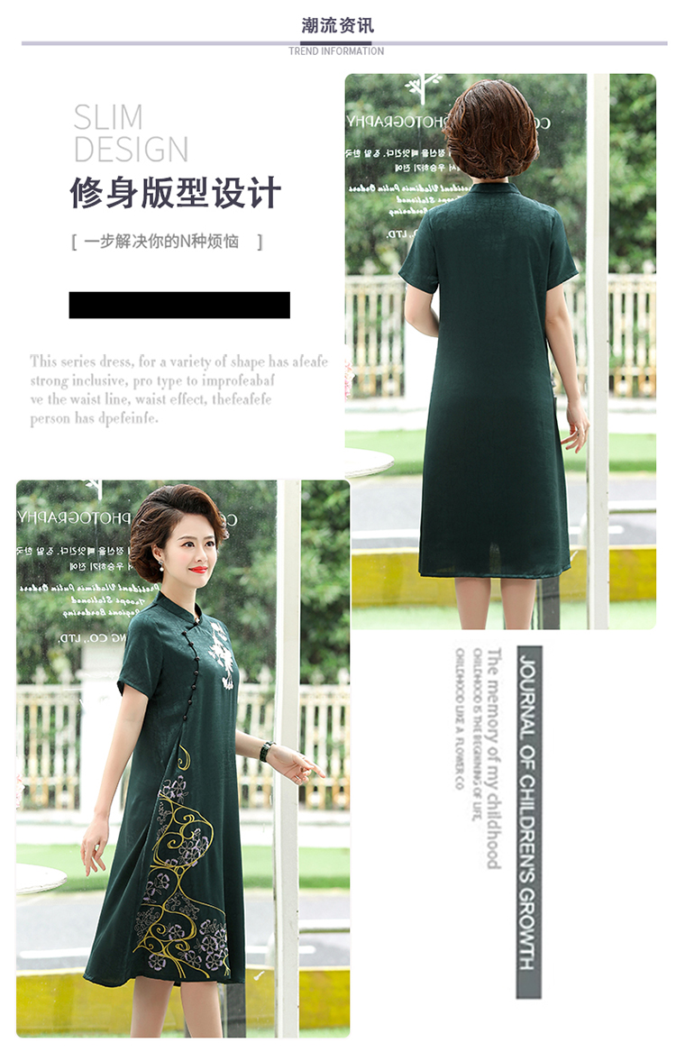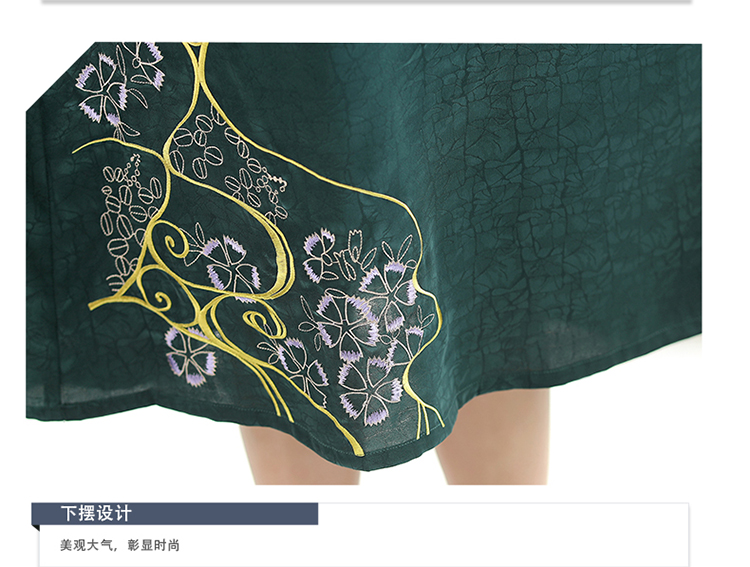 WZNH-YIZX8003纯色绣花连衣裙仿真丝大码显瘦中老年妈妈装