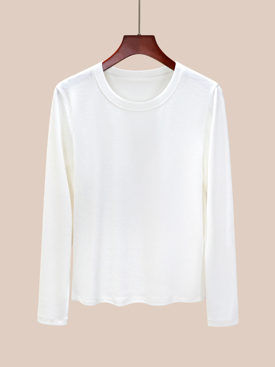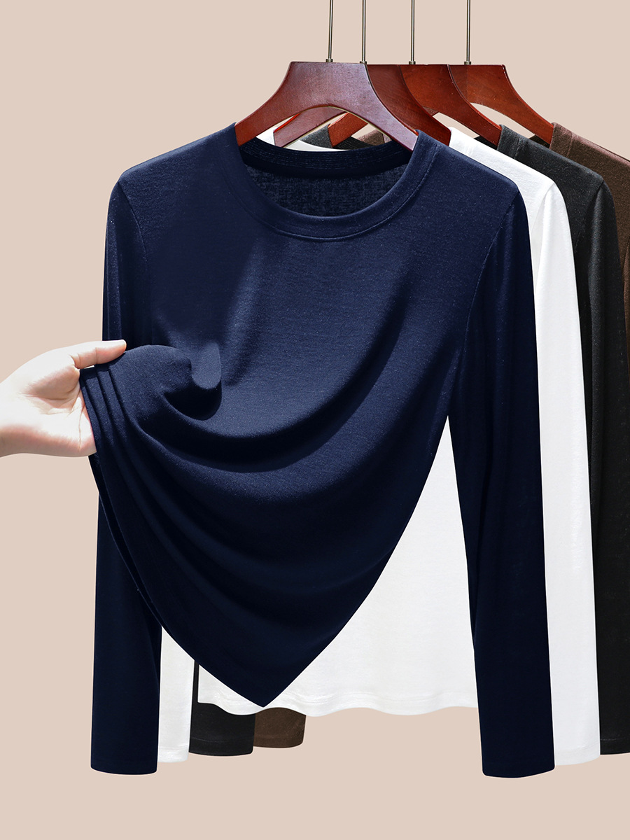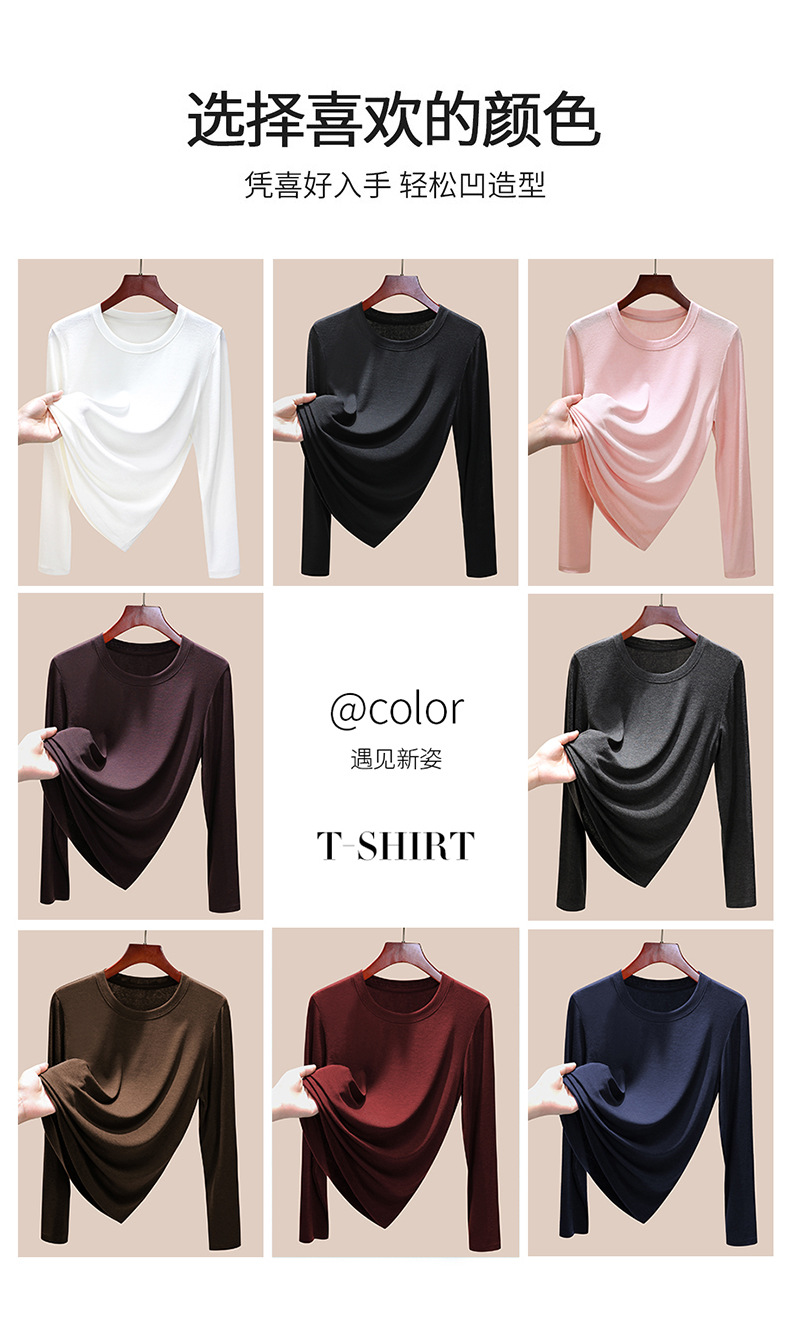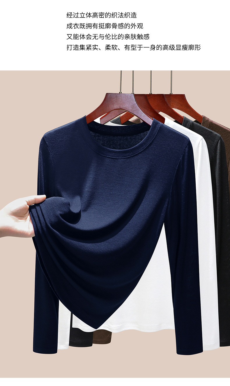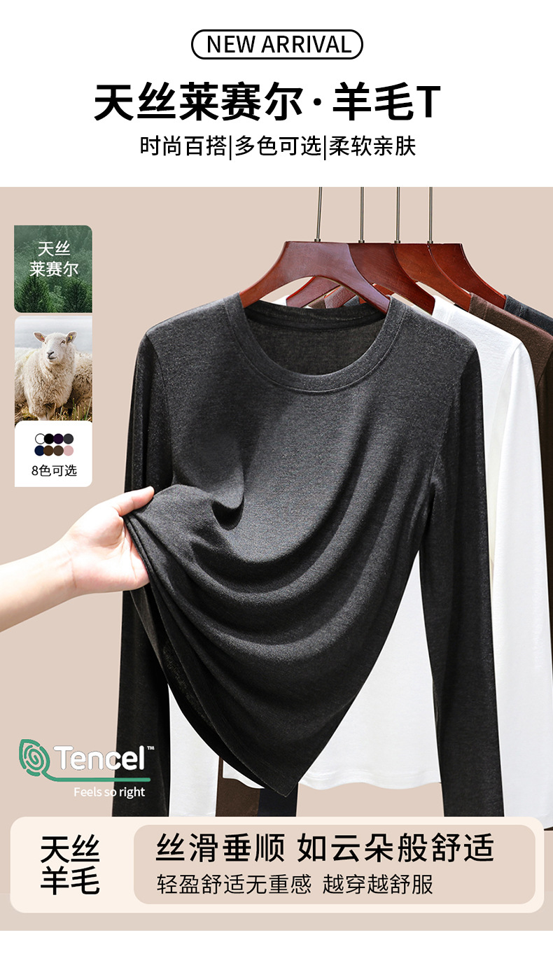 丁摩 圆领【莱赛尔天丝+绵羊毛】打底衫女薄款内搭新款t恤修身上衣5ZF-M888