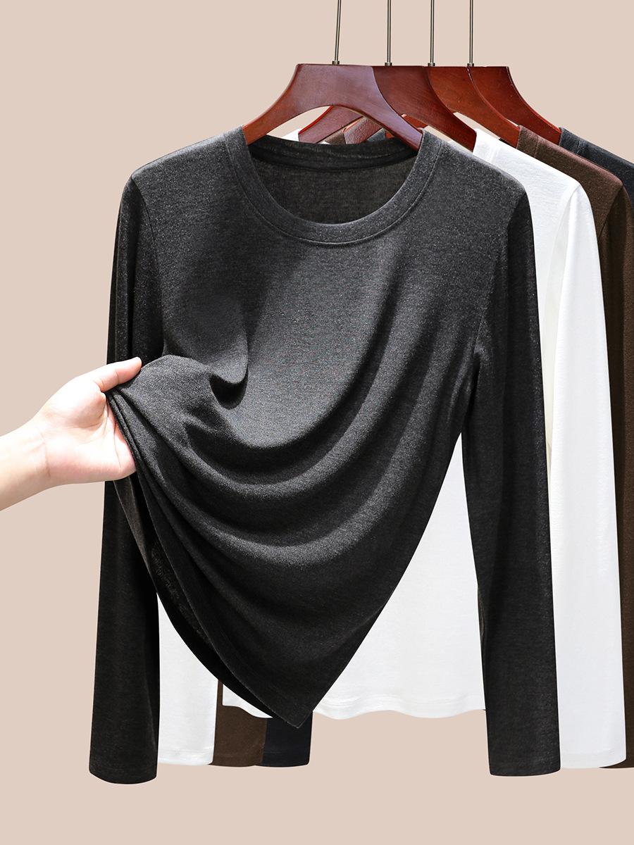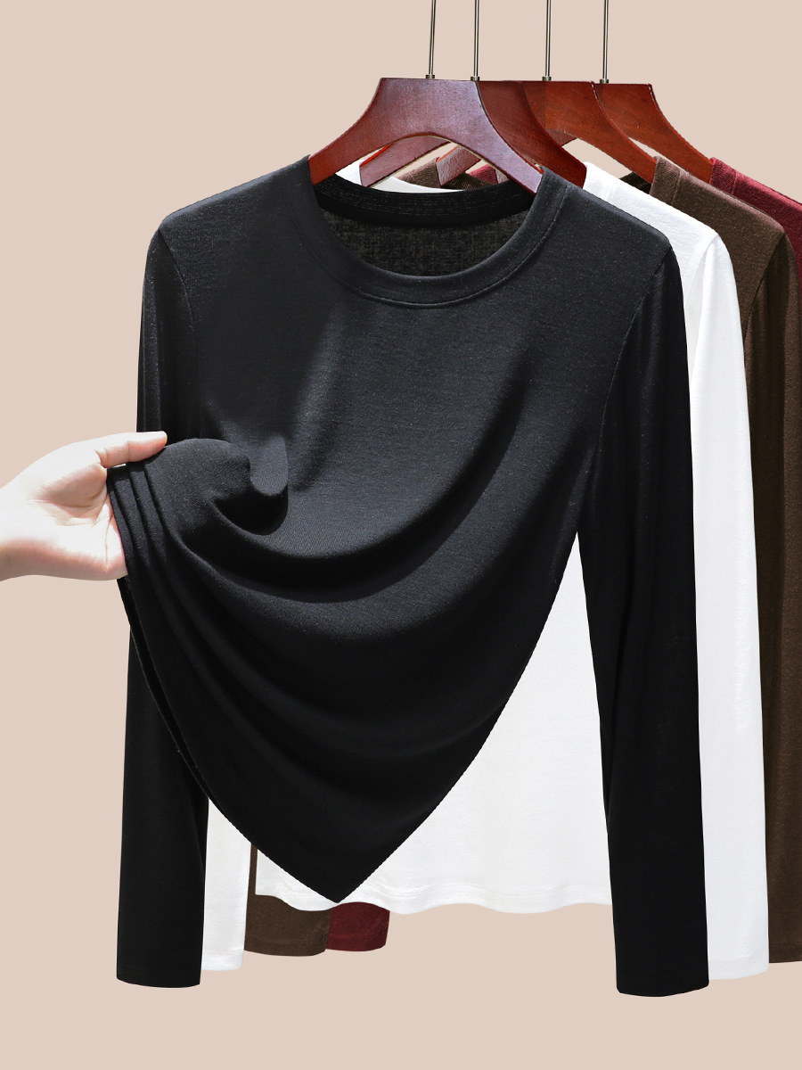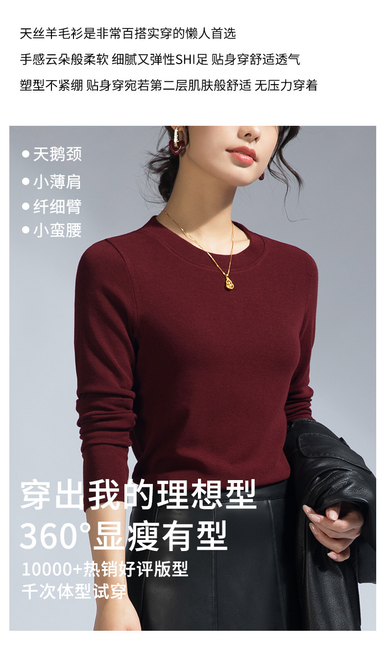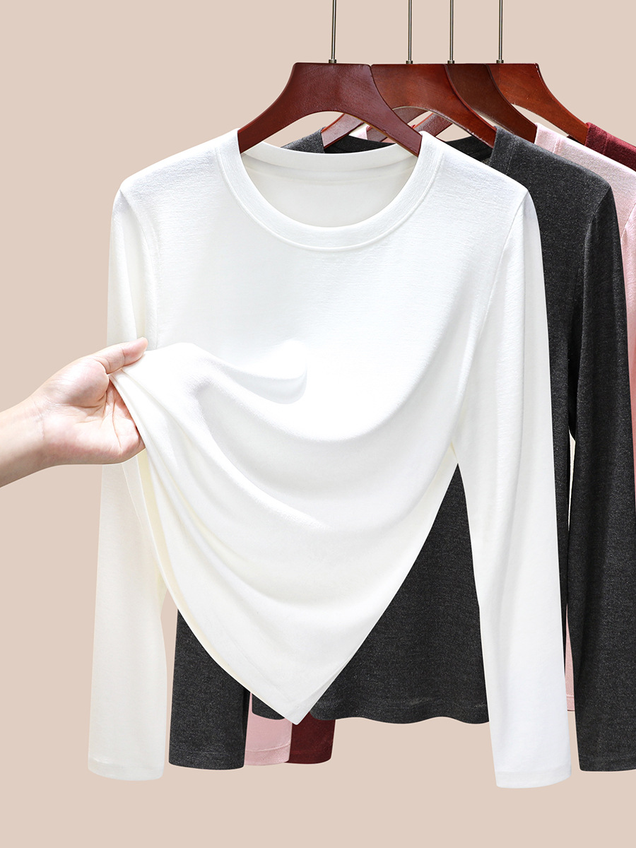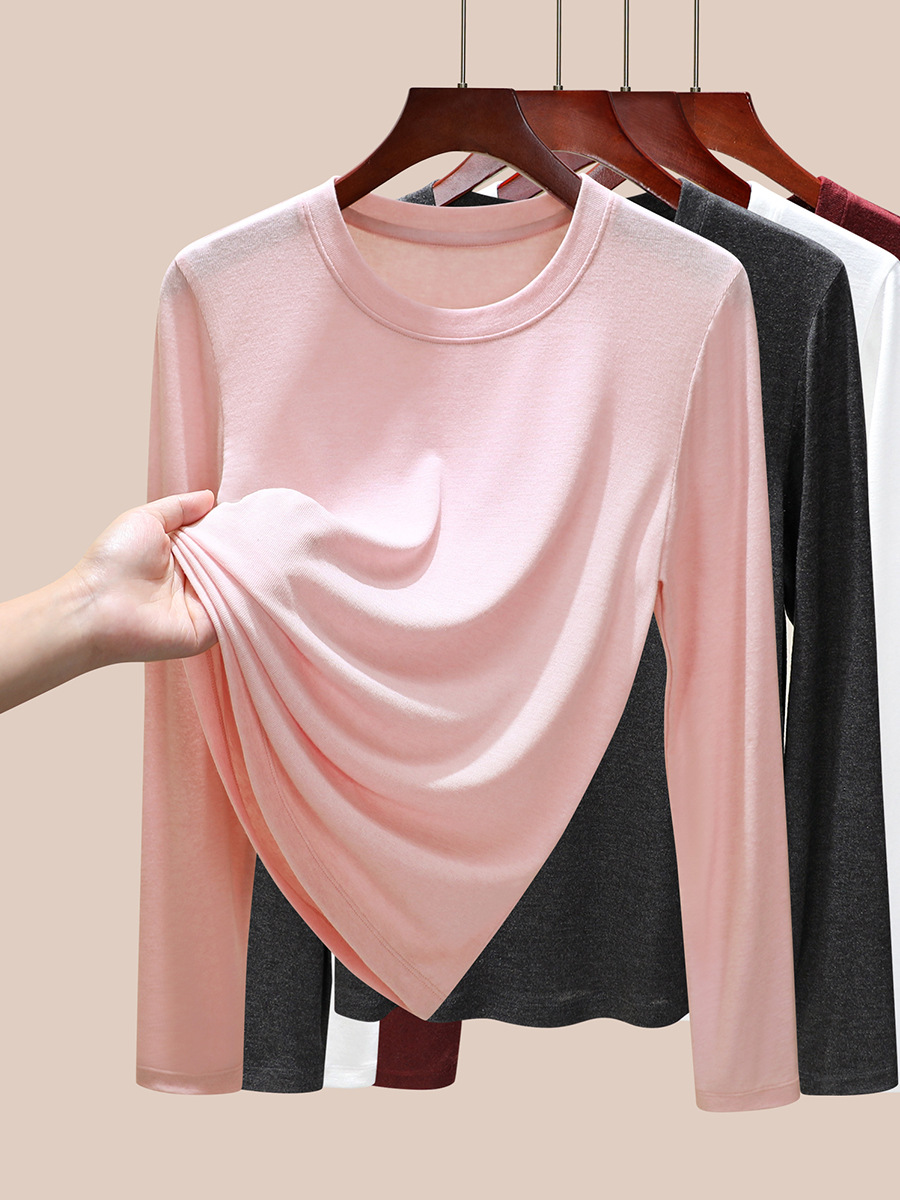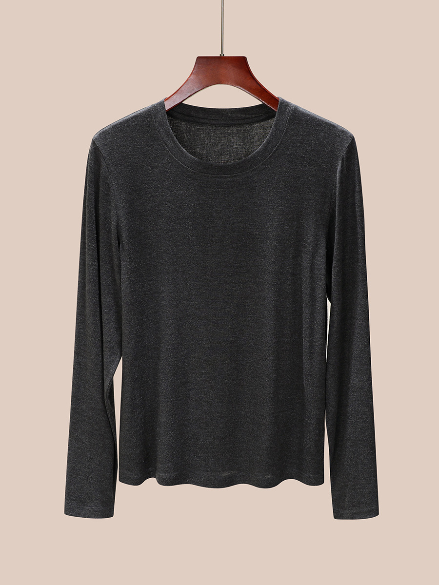 丁摩 圆领【莱赛尔天丝+绵羊毛】打底衫女薄款内搭新款t恤修身上衣5ZF-M888