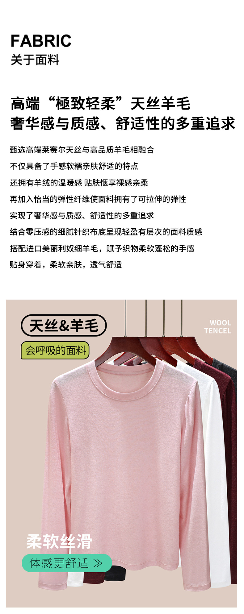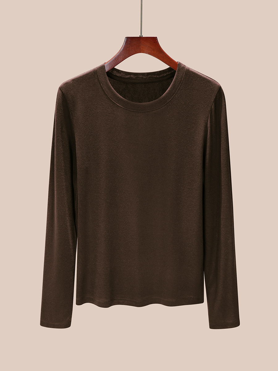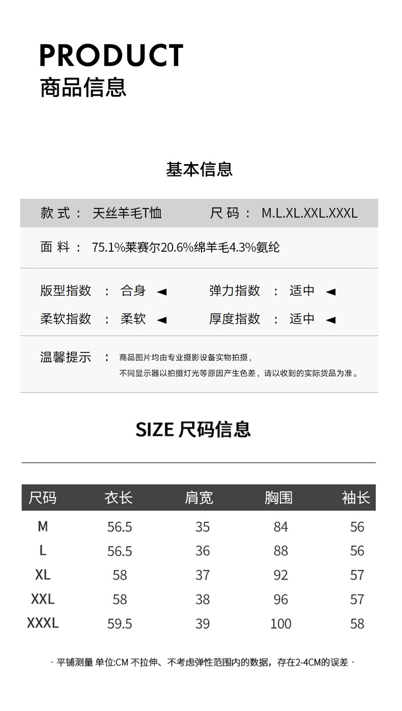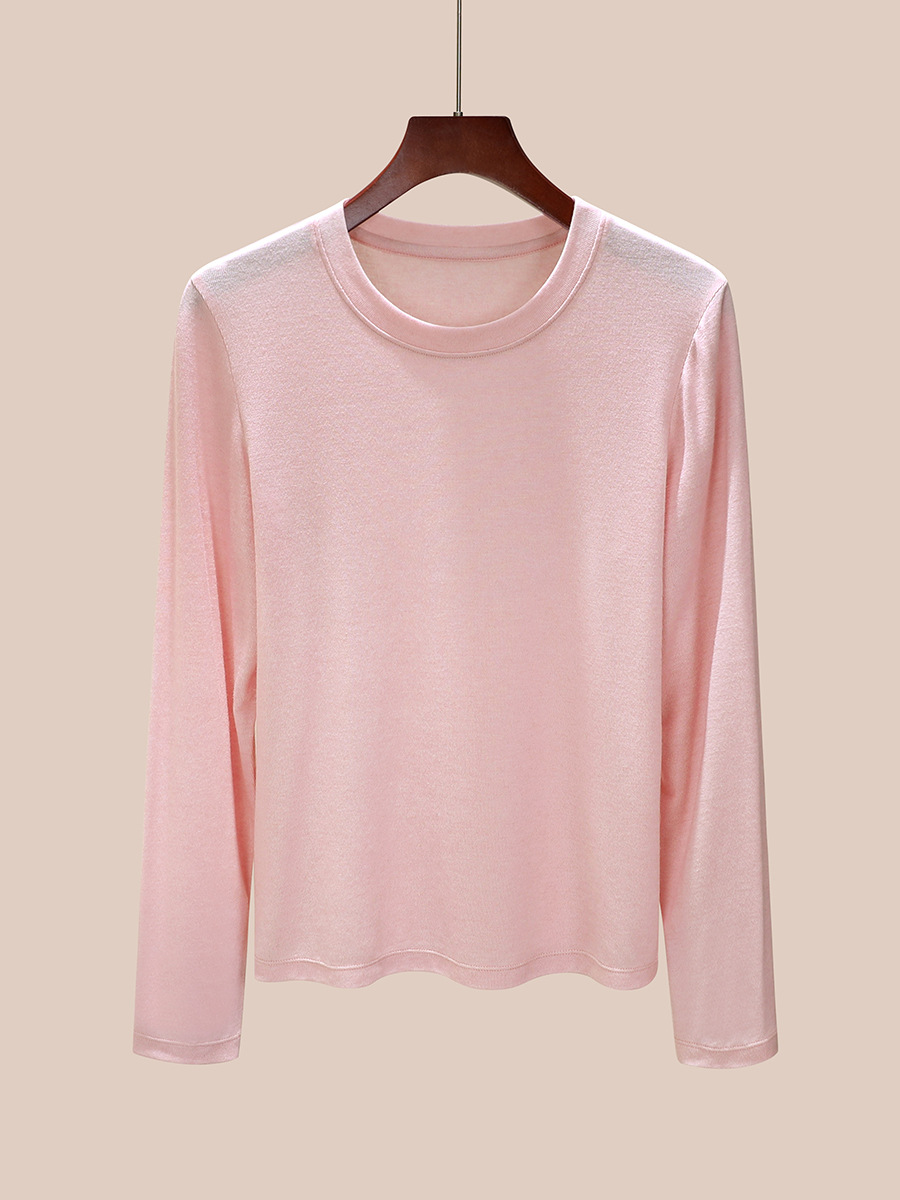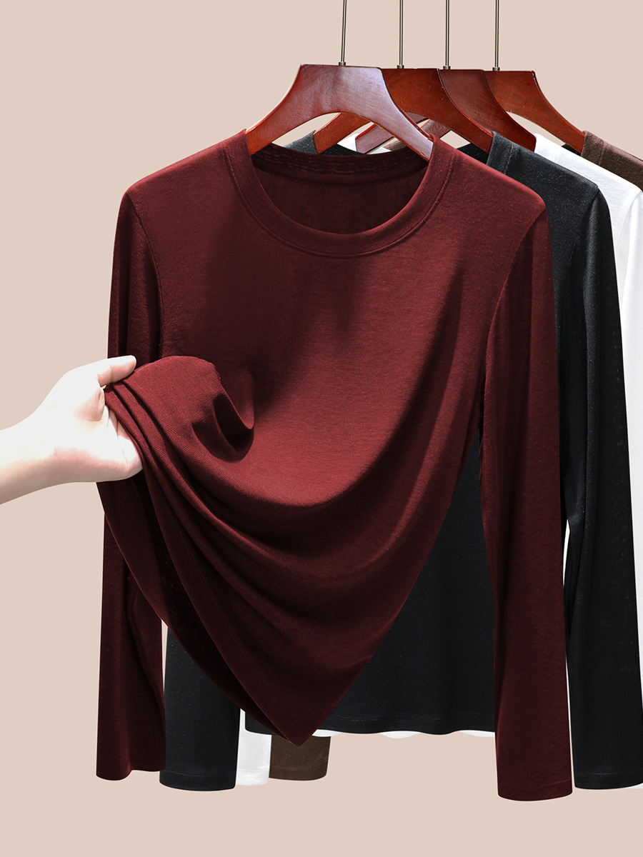 丁摩 圆领【莱赛尔天丝+绵羊毛】打底衫女薄款内搭新款t恤修身上衣5ZF-M888