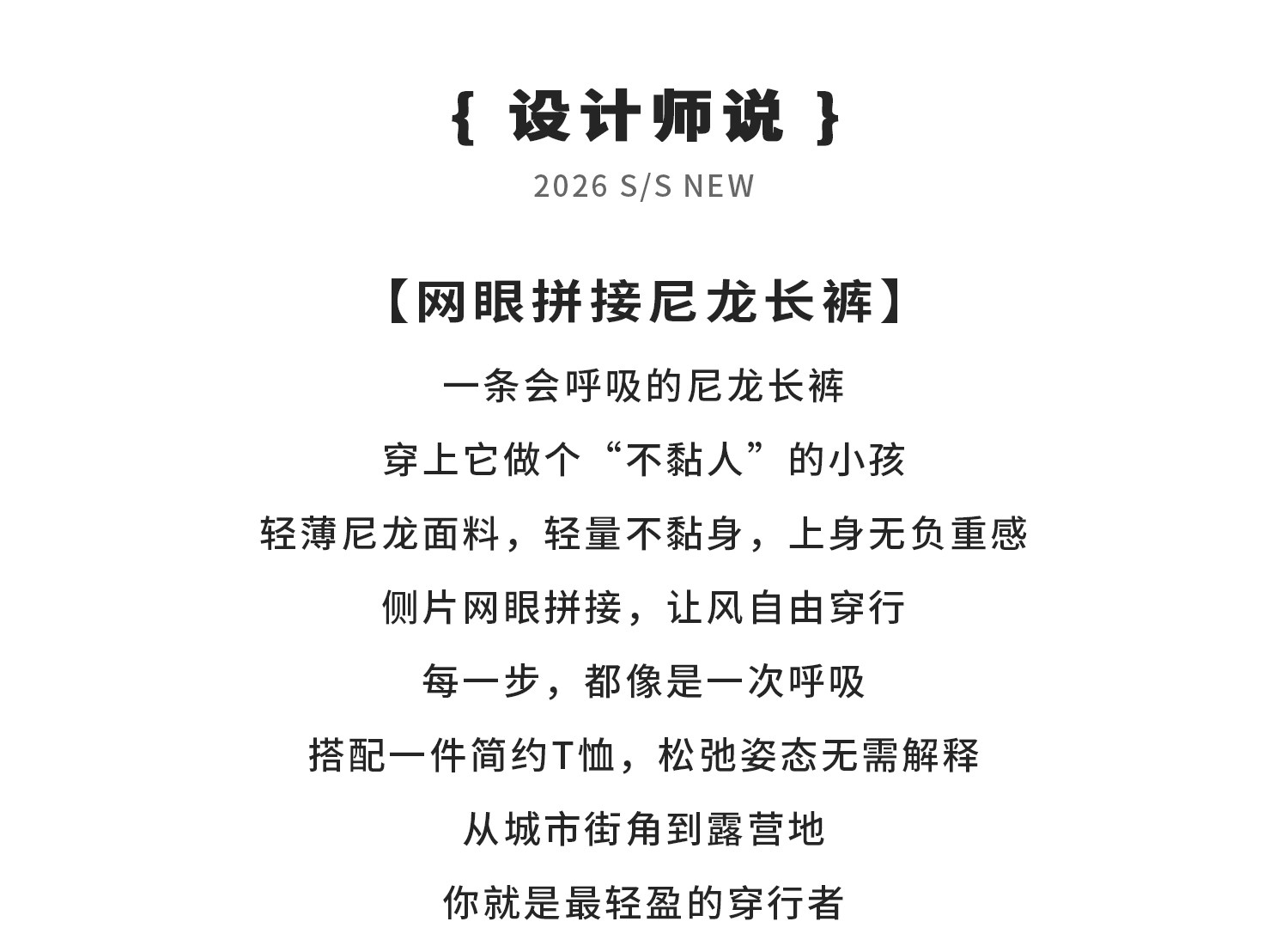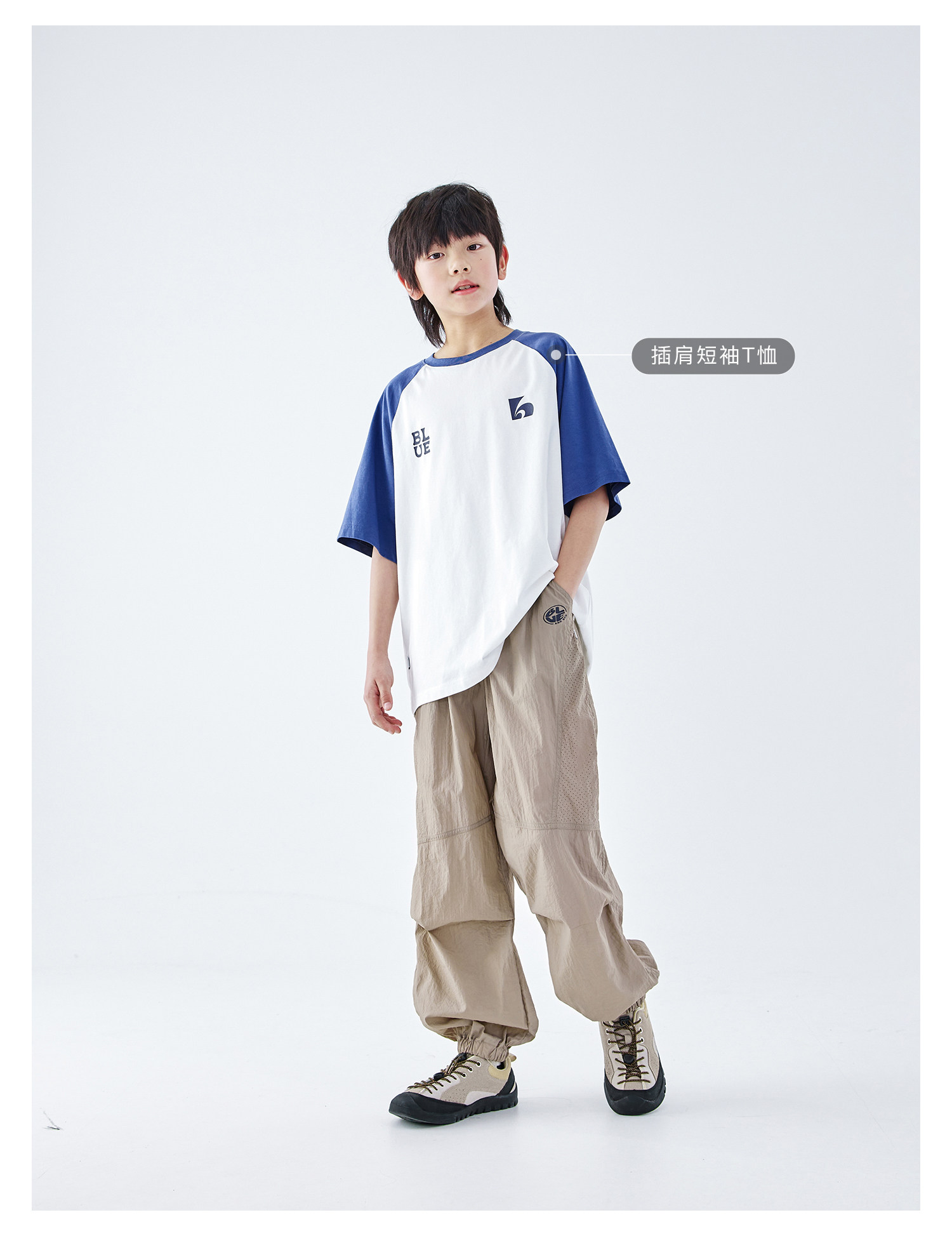 蓝汽水2026夏季男童网眼透气青少年户外抽褶轻薄登山防蚊束脚长裤