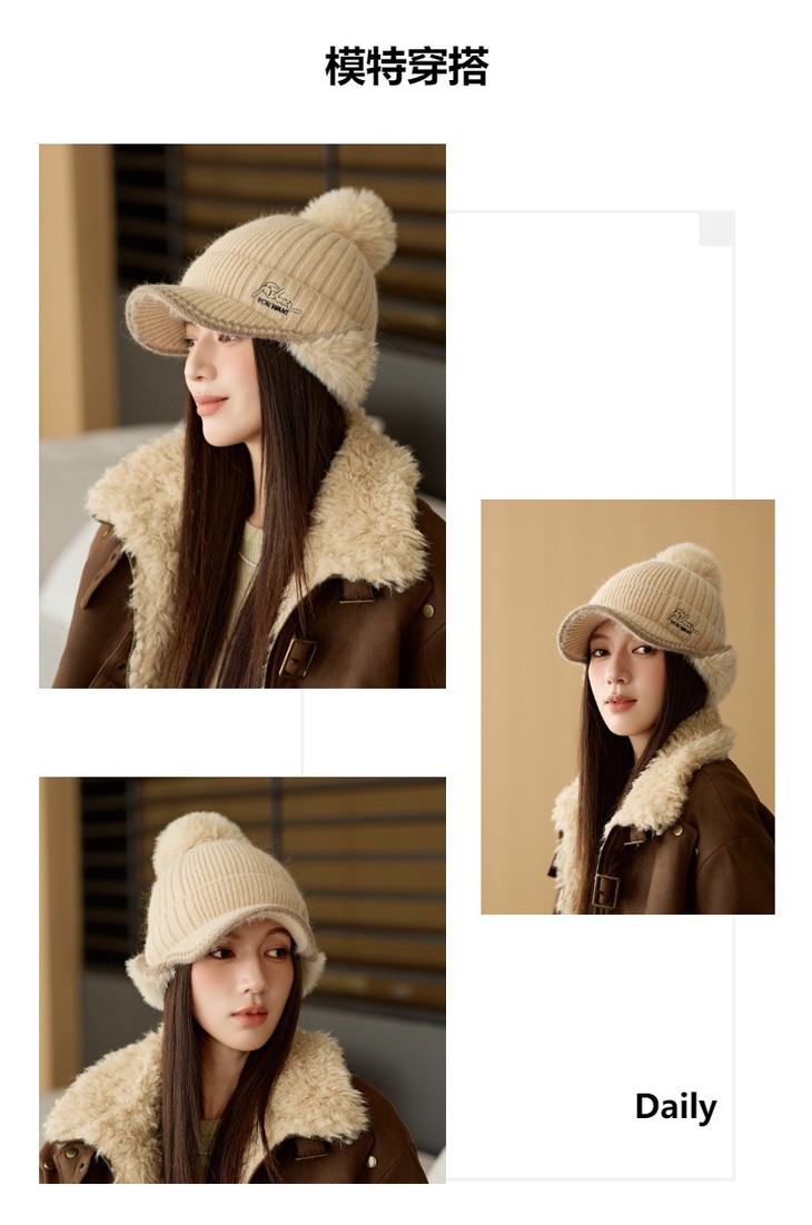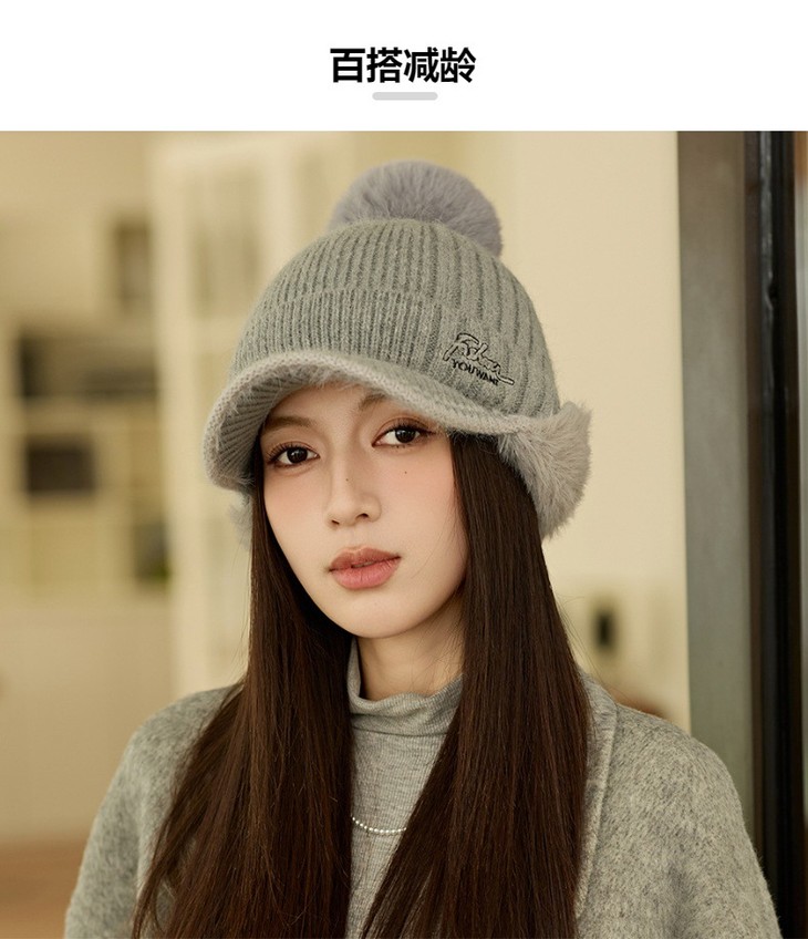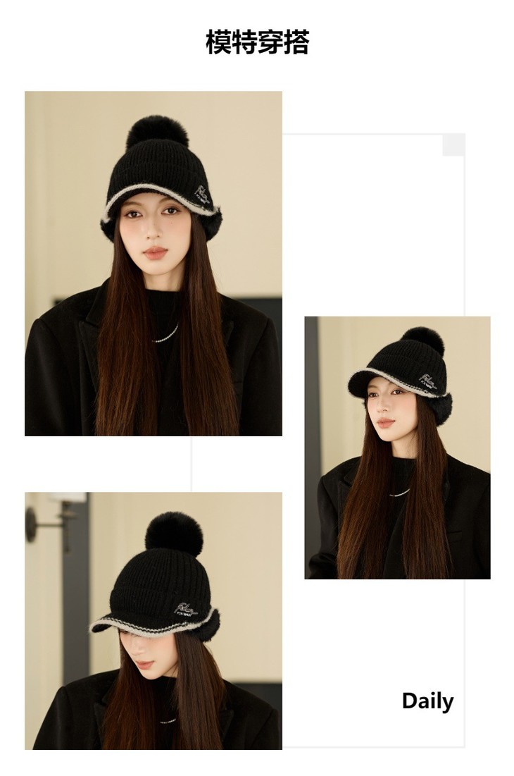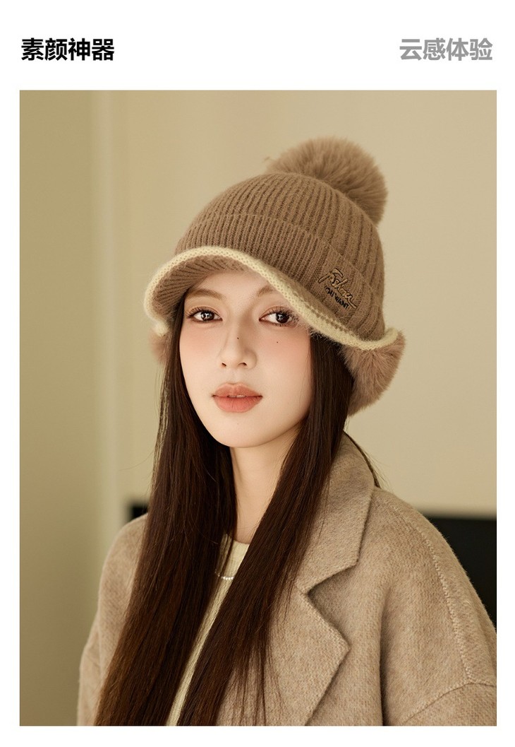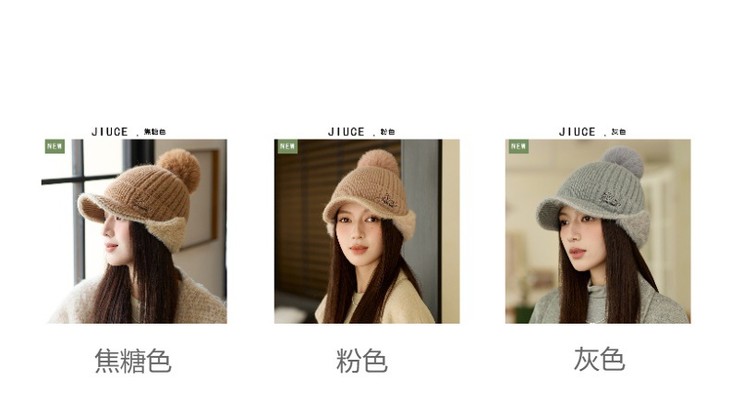 兔毛帽秋冬加厚毛球针织帽,韩国纯色百搭休闲耳包棒球帽JCM3204