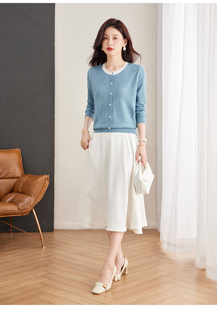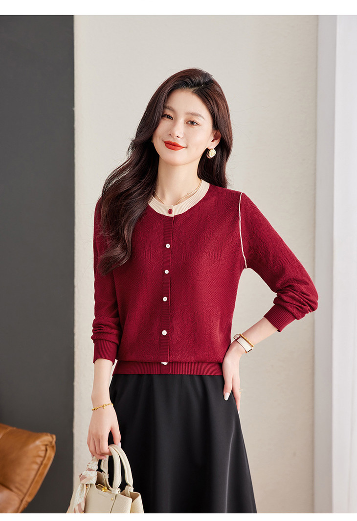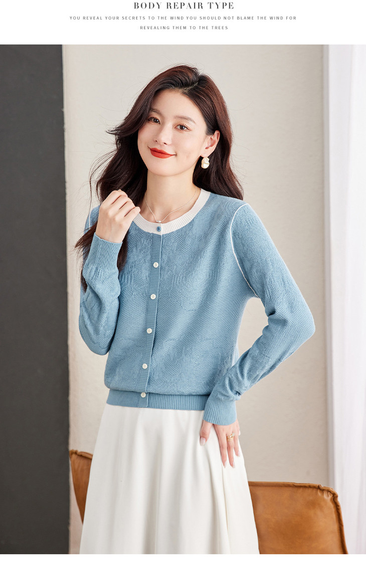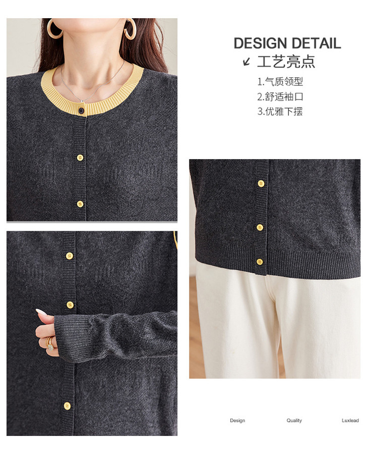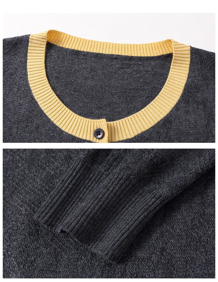 圆领拼色针织衫,洋气减龄小个子休闲毛衣打底上衣CC-16-9511