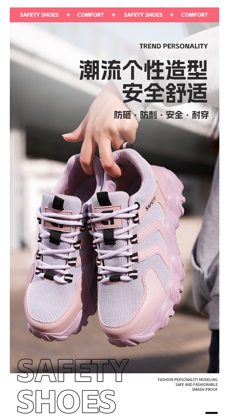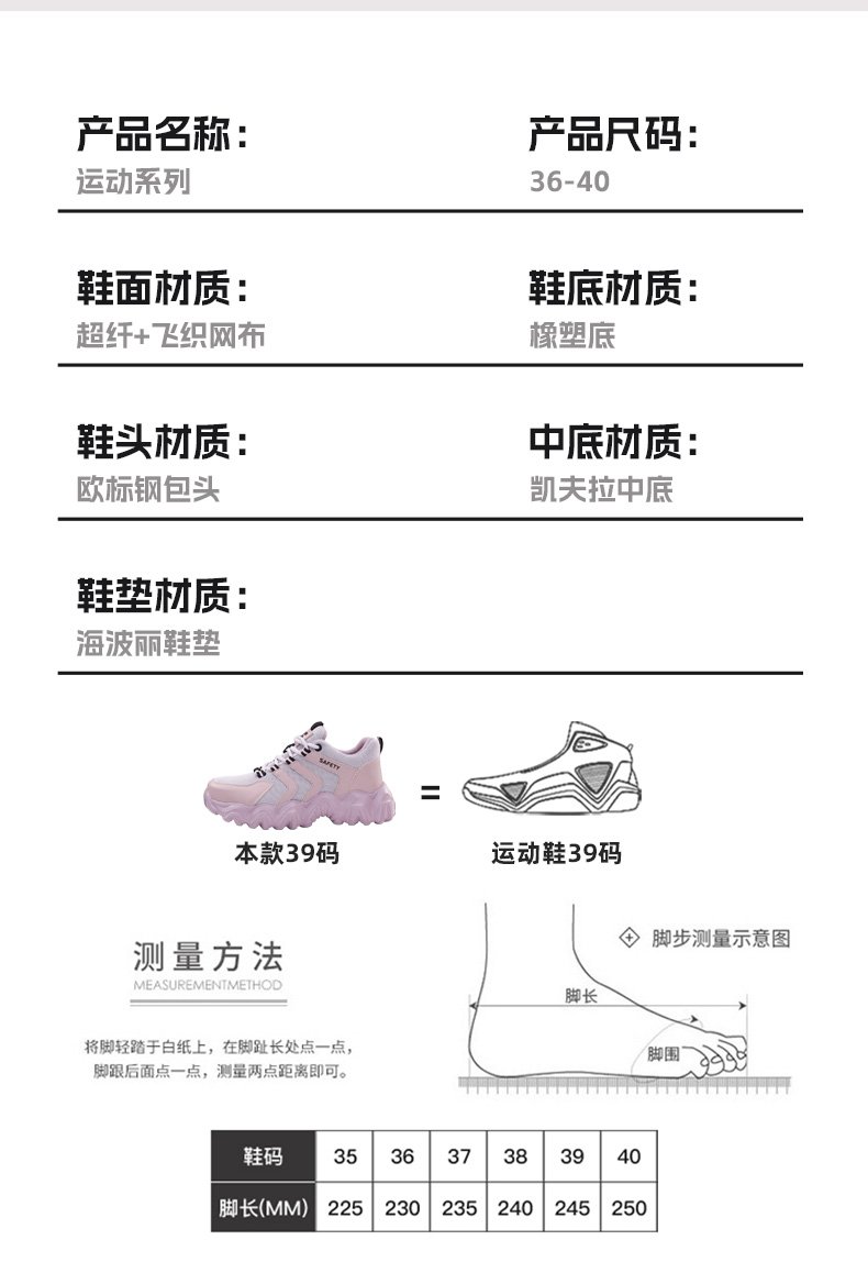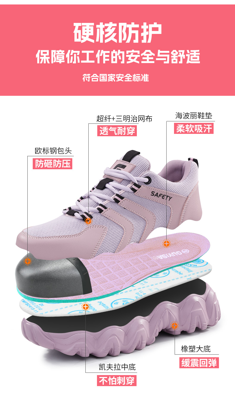 新品女士劳保鞋四季款透气轻便EVA大底劳保鞋防砸防刺网布工地安全鞋36-40尺码