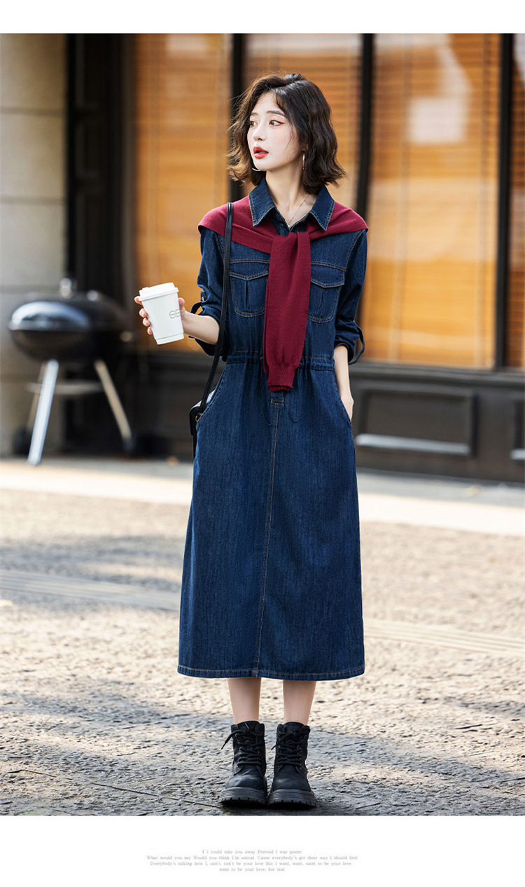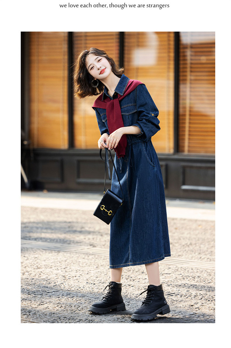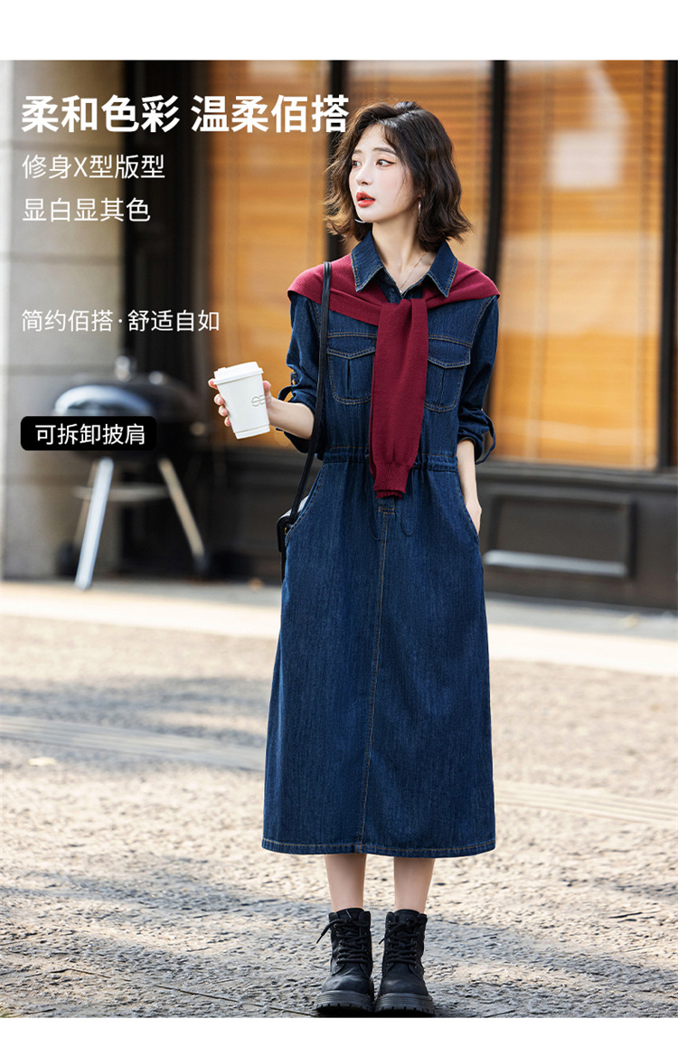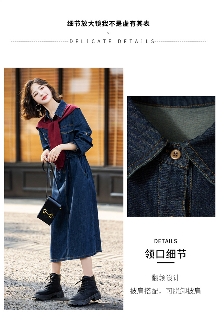 超好看披肩牛仔连衣裙,长袖时髦潮流裙子HR-EBDU926A