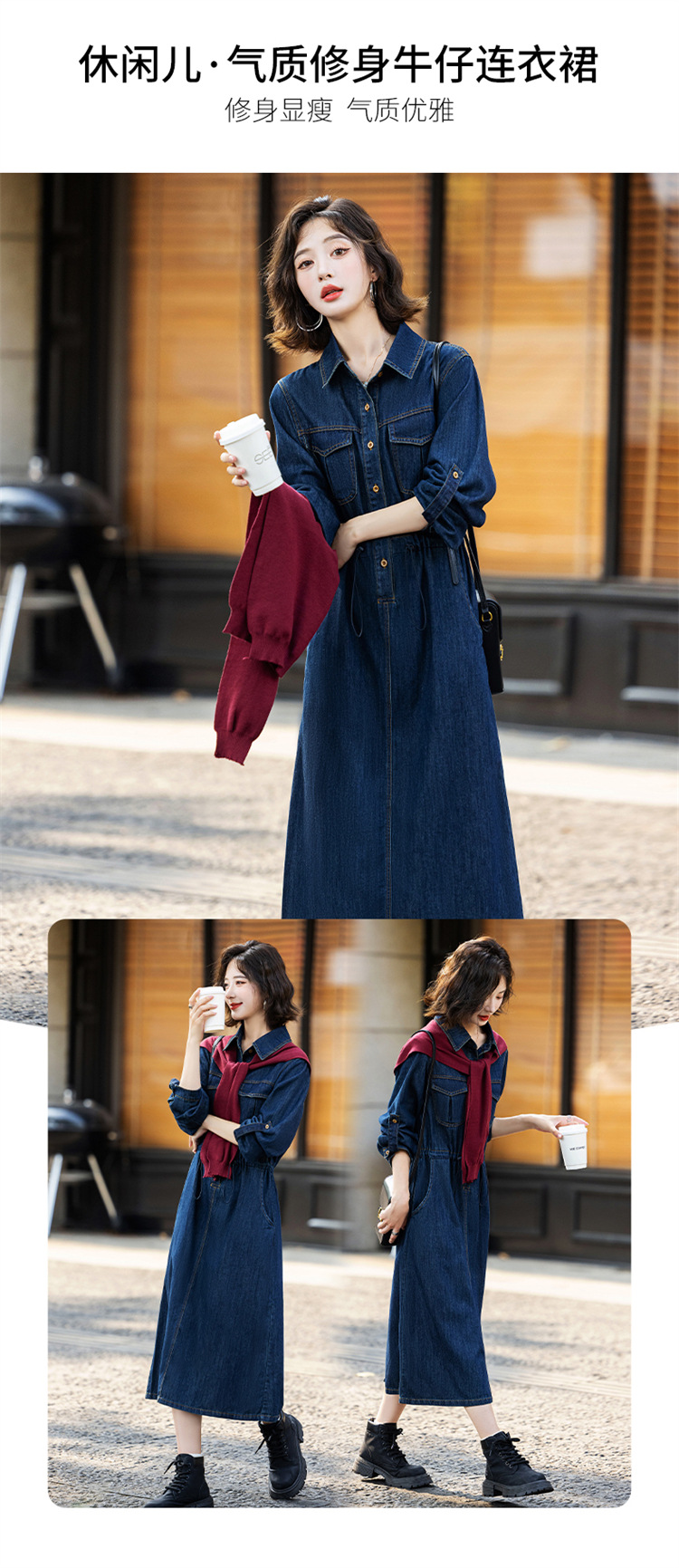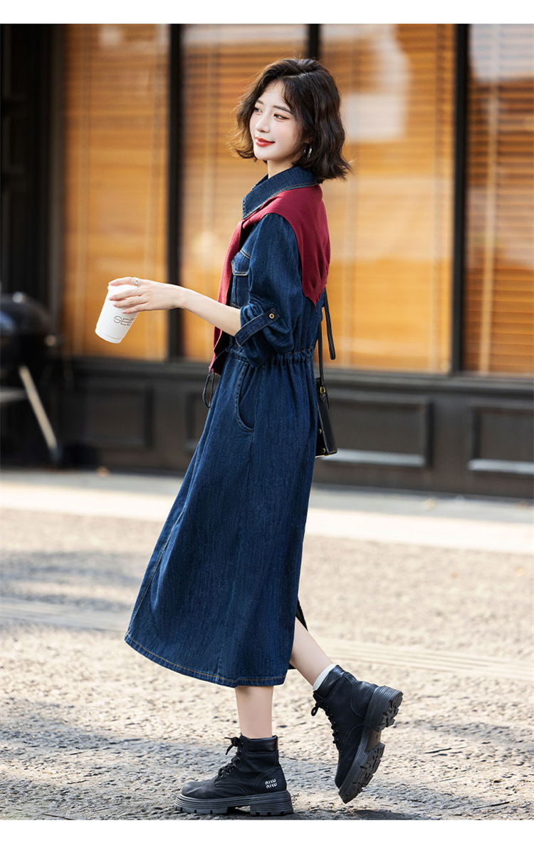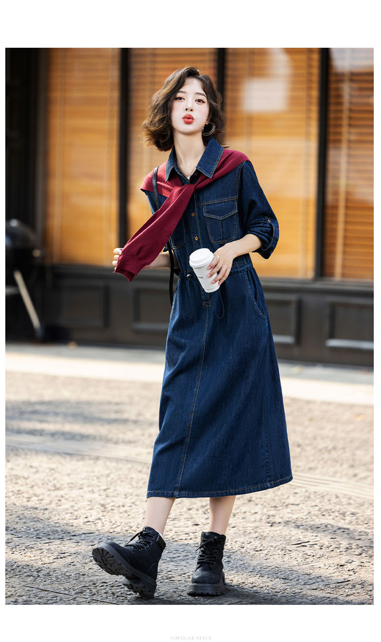 超好看披肩牛仔连衣裙,长袖时髦潮流裙子HR-EBDU926A