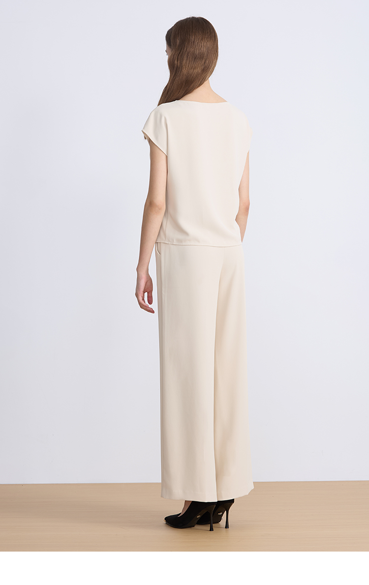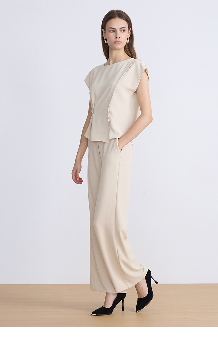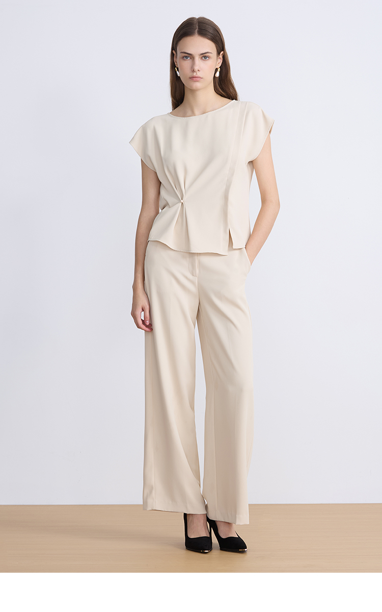 EITIE爱特爱春季新款高腰显瘦黑色微喇休闲裤女气质通勤时尚裤子A2205907