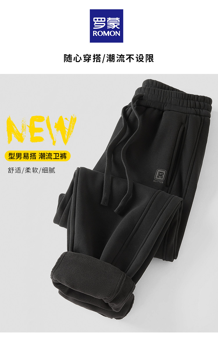 1Y276X2059【羊羔绒内里】罗蒙秋冬男装加绒保暖休闲裤男长裤加绒裤子男卫裤男