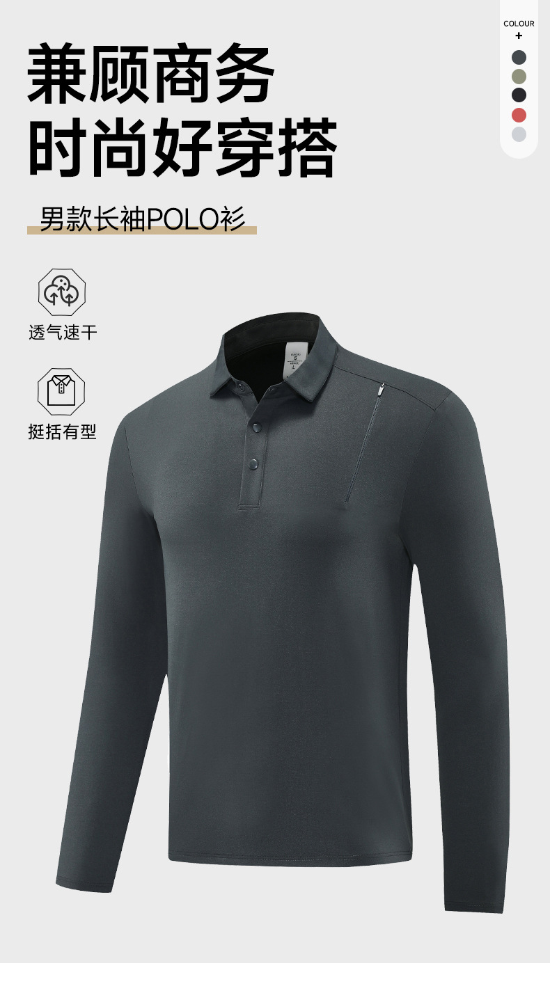 跃牌【PF系列】新款POLO衫运动长袖上衣男春秋季商务休闲通勤打底立领t恤男装61209