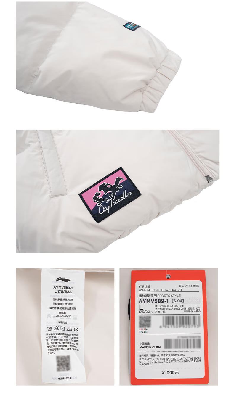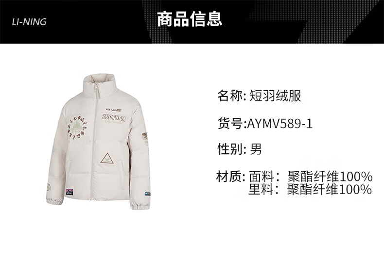 李宁(LI-NING)短款羽绒服男2025冬季新款鸭绒保暖外套面包服上衣AYMV589