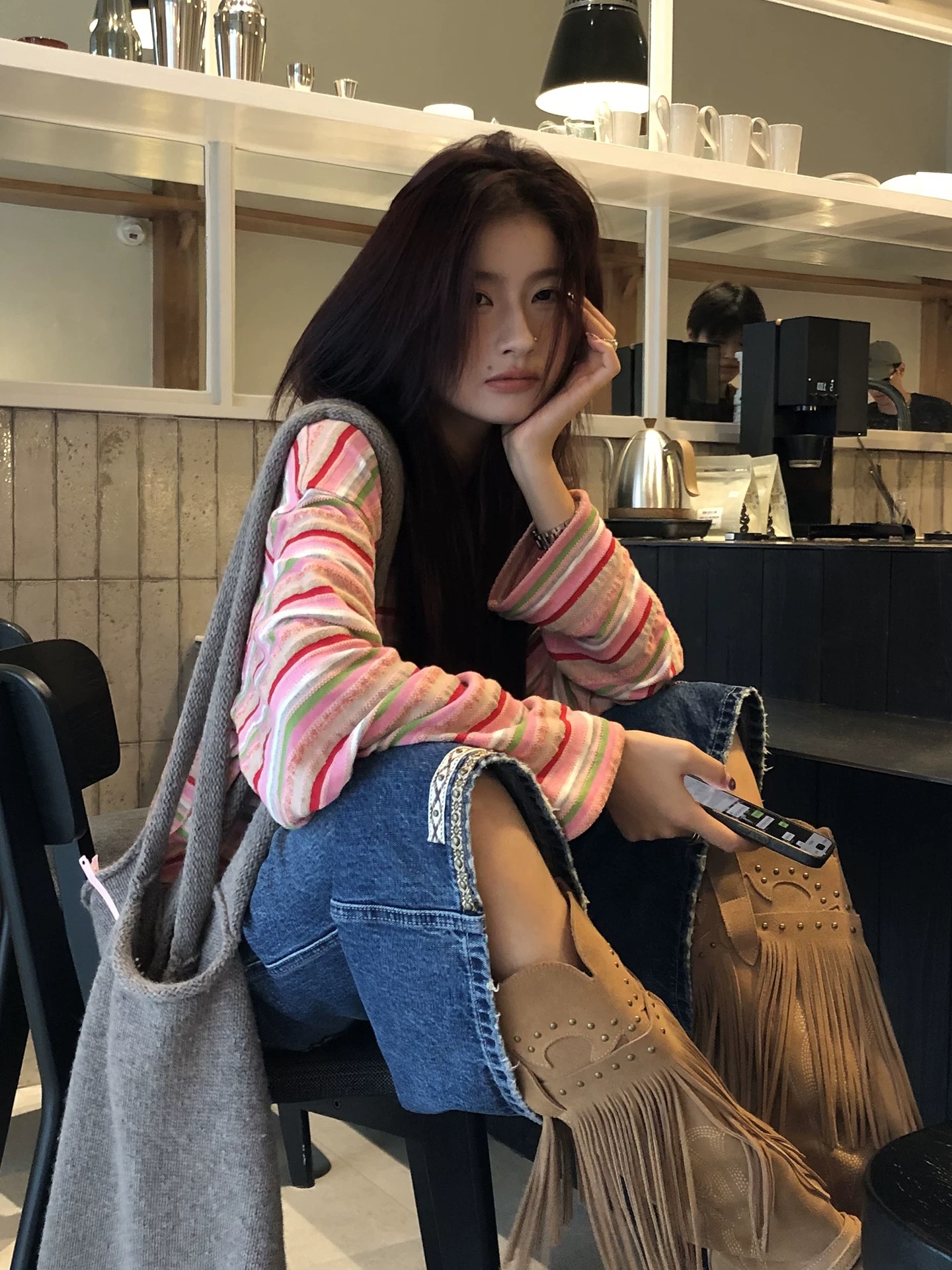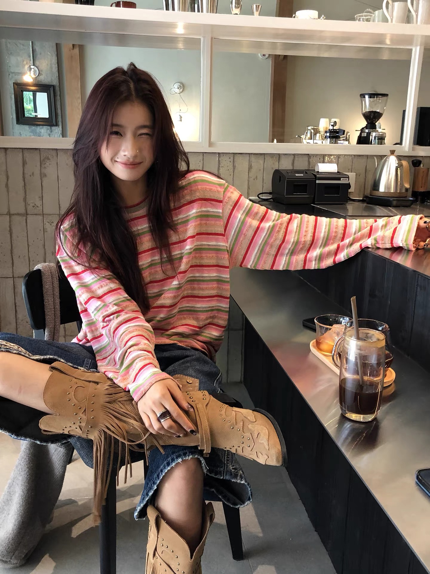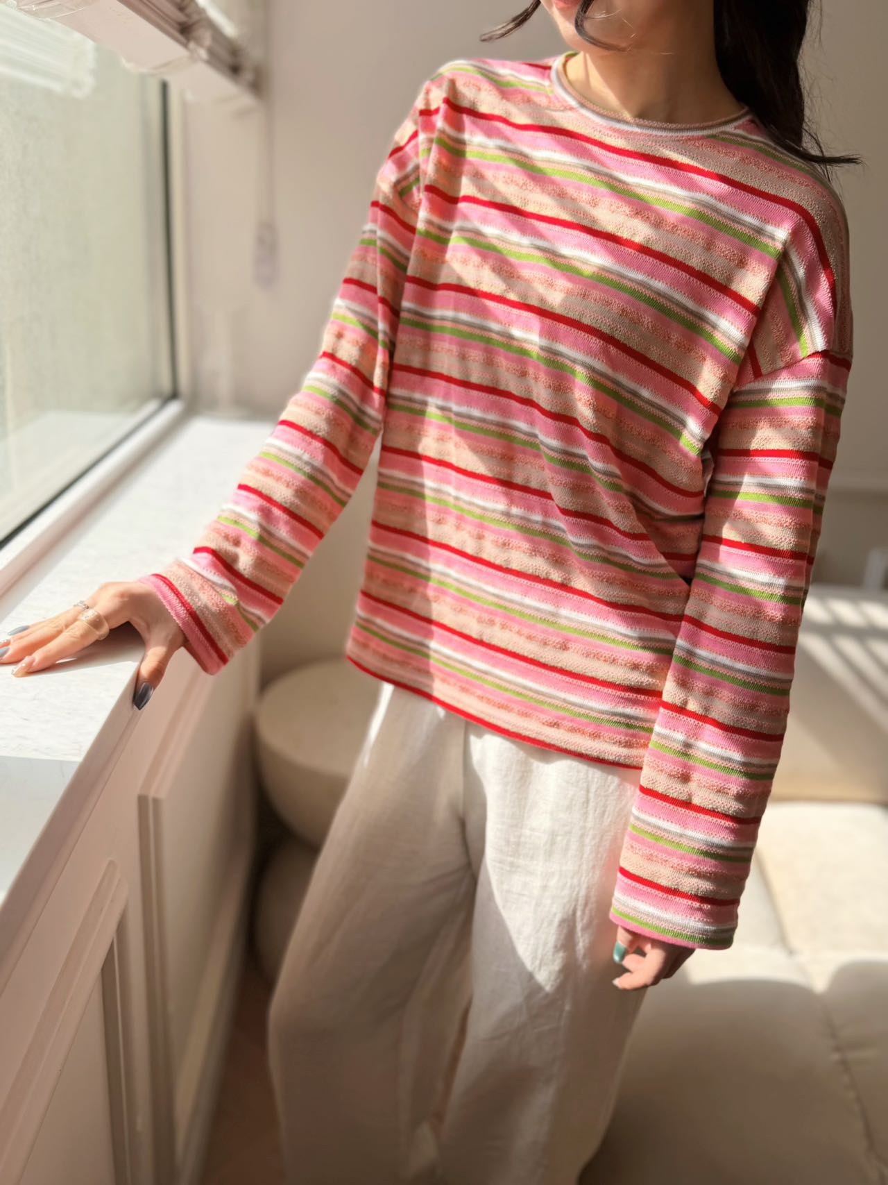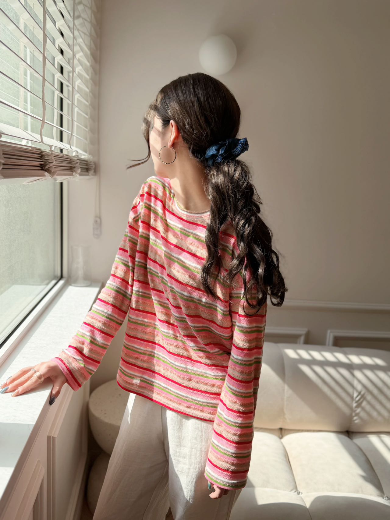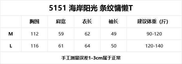 下单3-7天发货!TRIUUCHU 海岸阳光复古条纹慵懒T恤 5151 落肩设计慵懒随性 藏肉显瘦不挑身形 简洁轻盈 柔软耐穿
