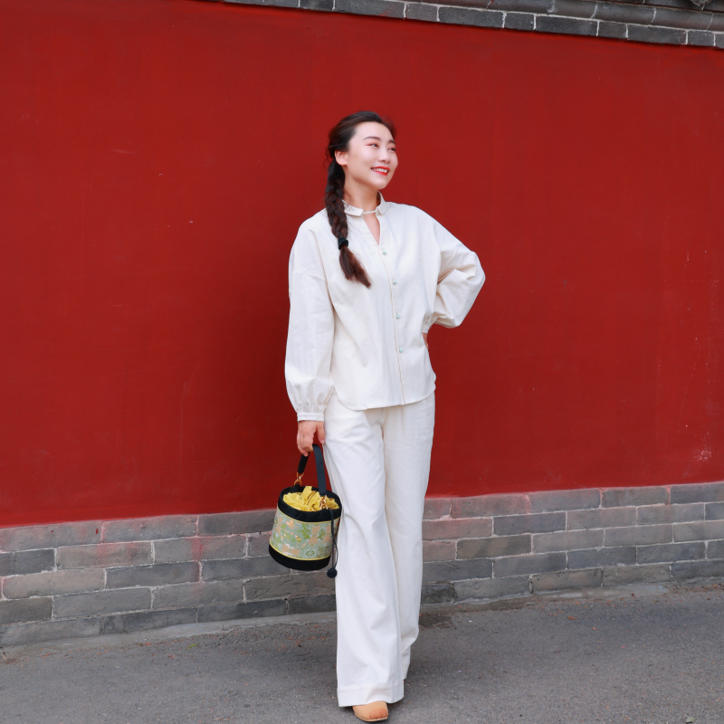 【抖音专属】新中式衬衣+阔腿裤(25810153+25709350-玉色)