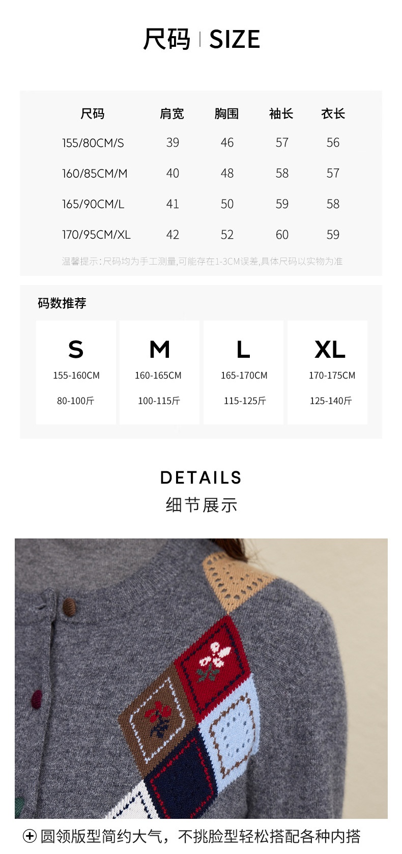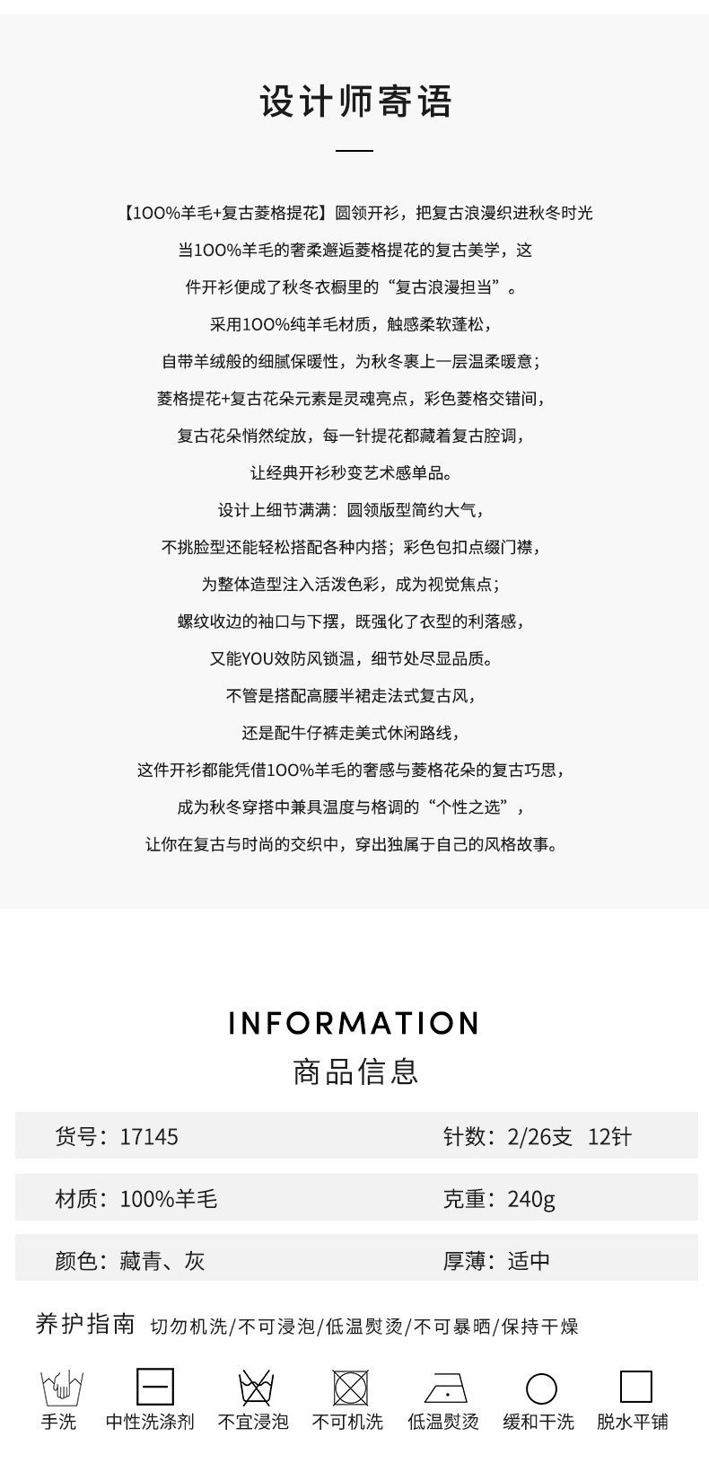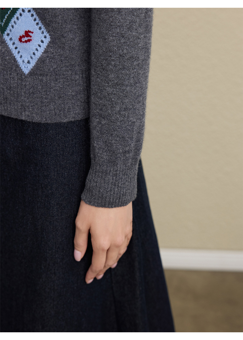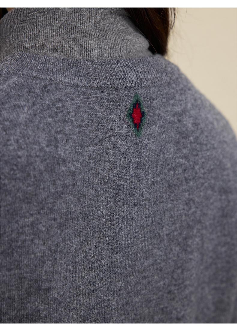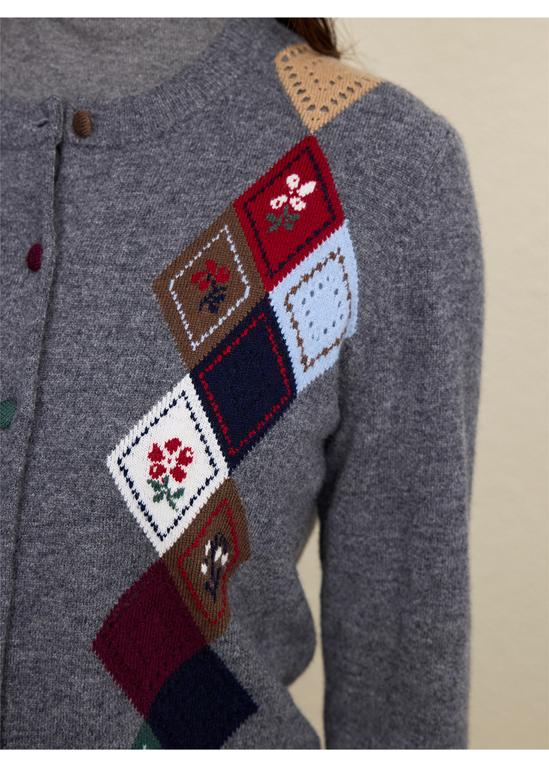 「自」全新升级【铂金会员367/天猫489/差价122】(03146)洛诗琳羊毛提花圆领开衫2025秋冬新品撞色菱形格纹针织外套