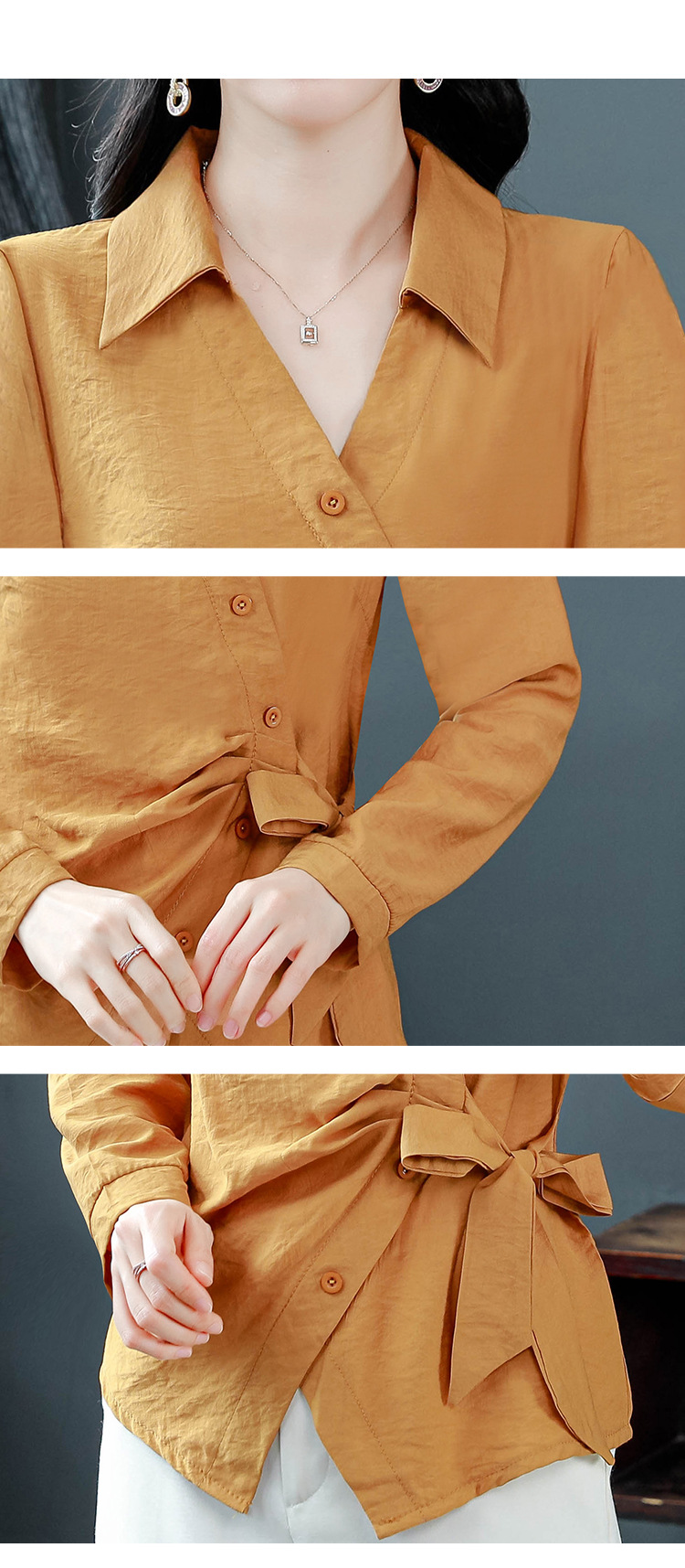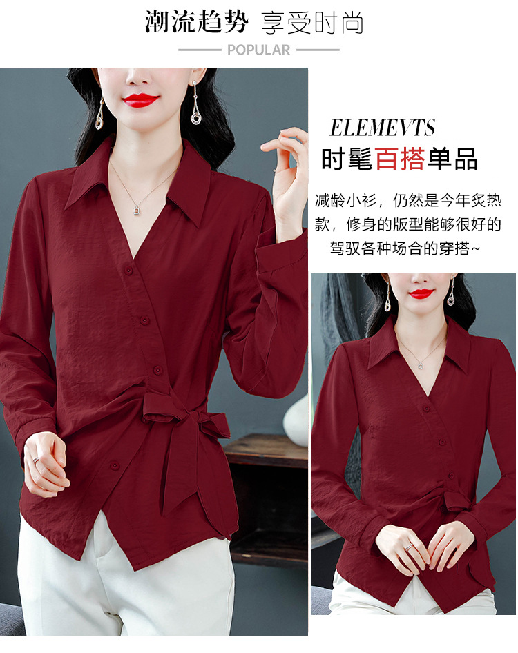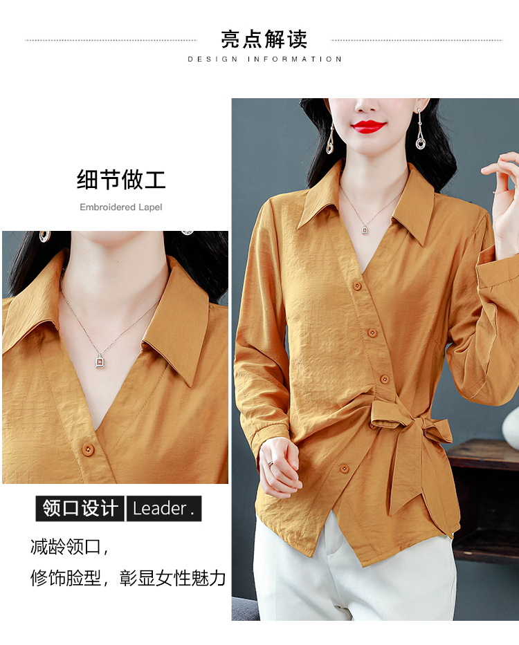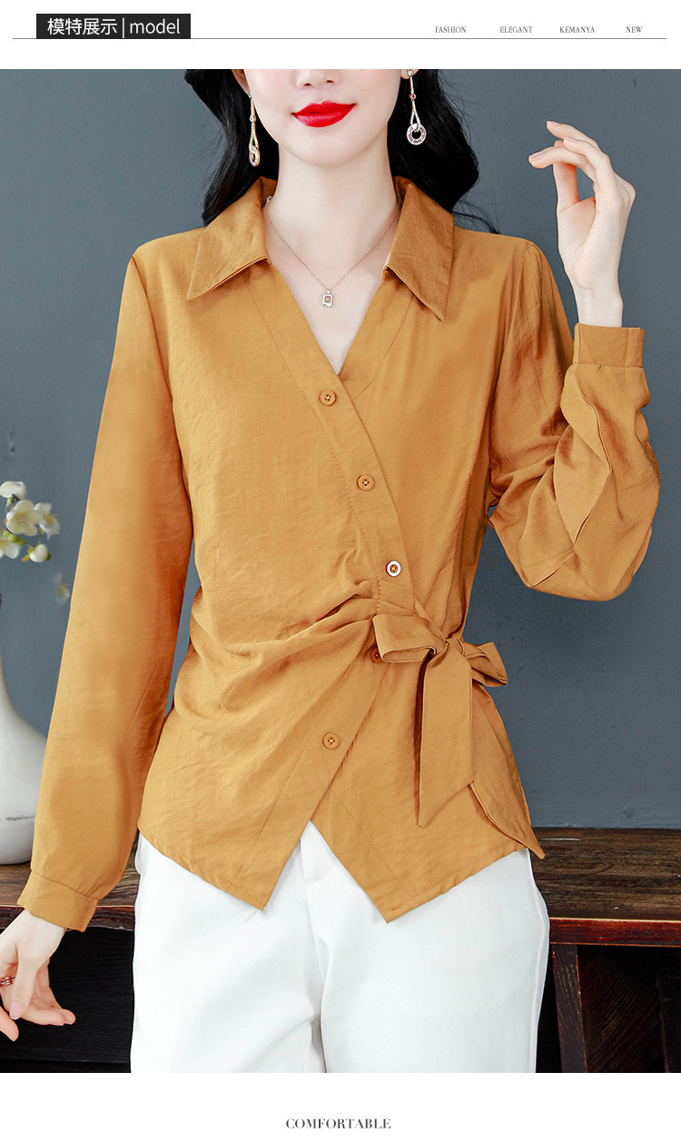 KQL现货秋季新款长袖衬衫女士时尚百搭蝴蝶结上衣漂亮显瘦小衫