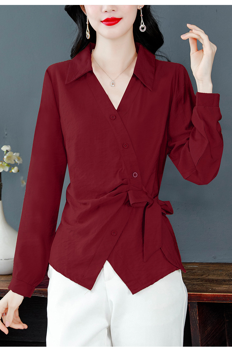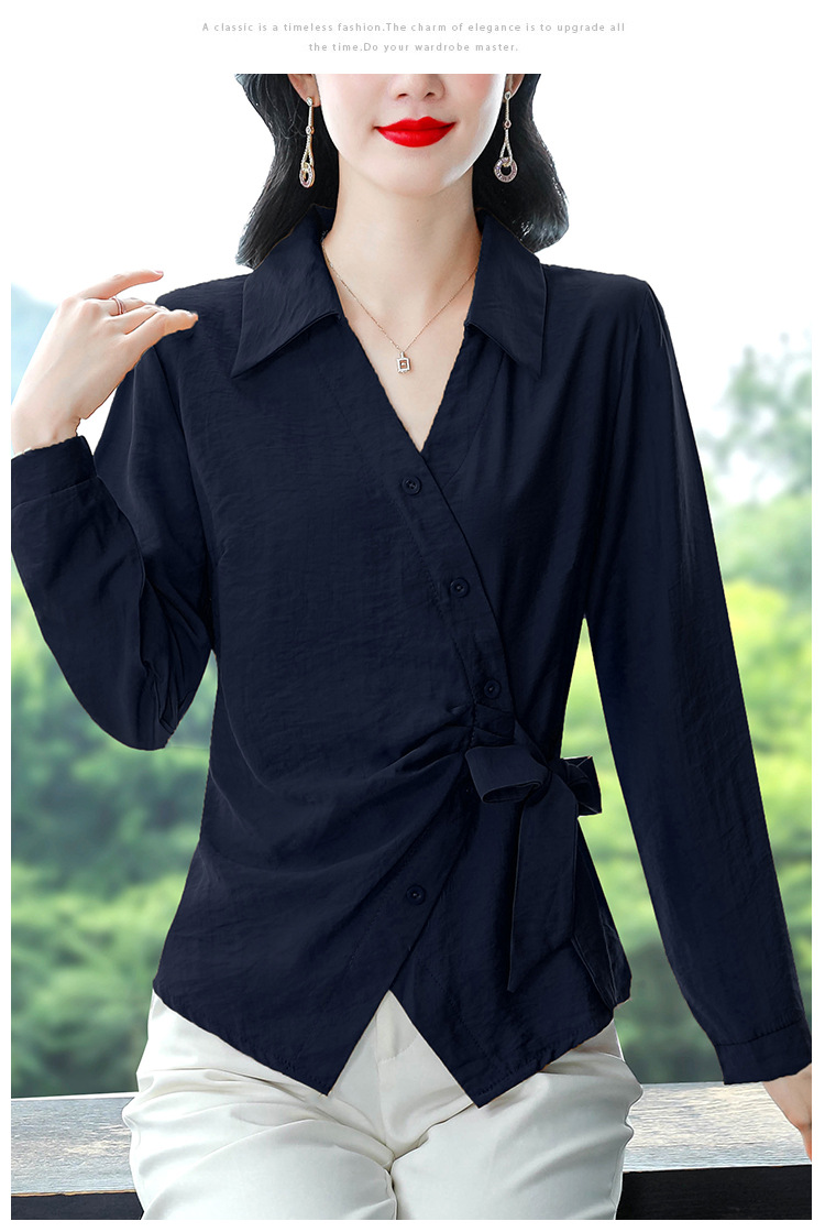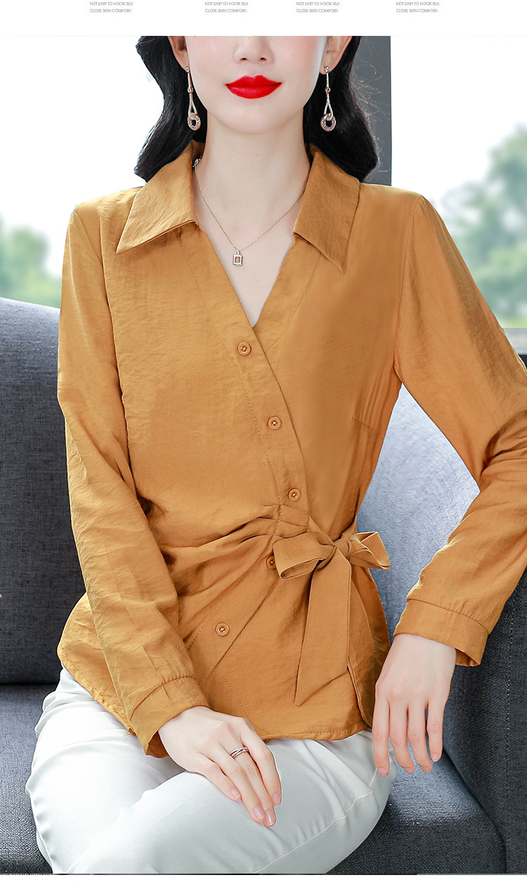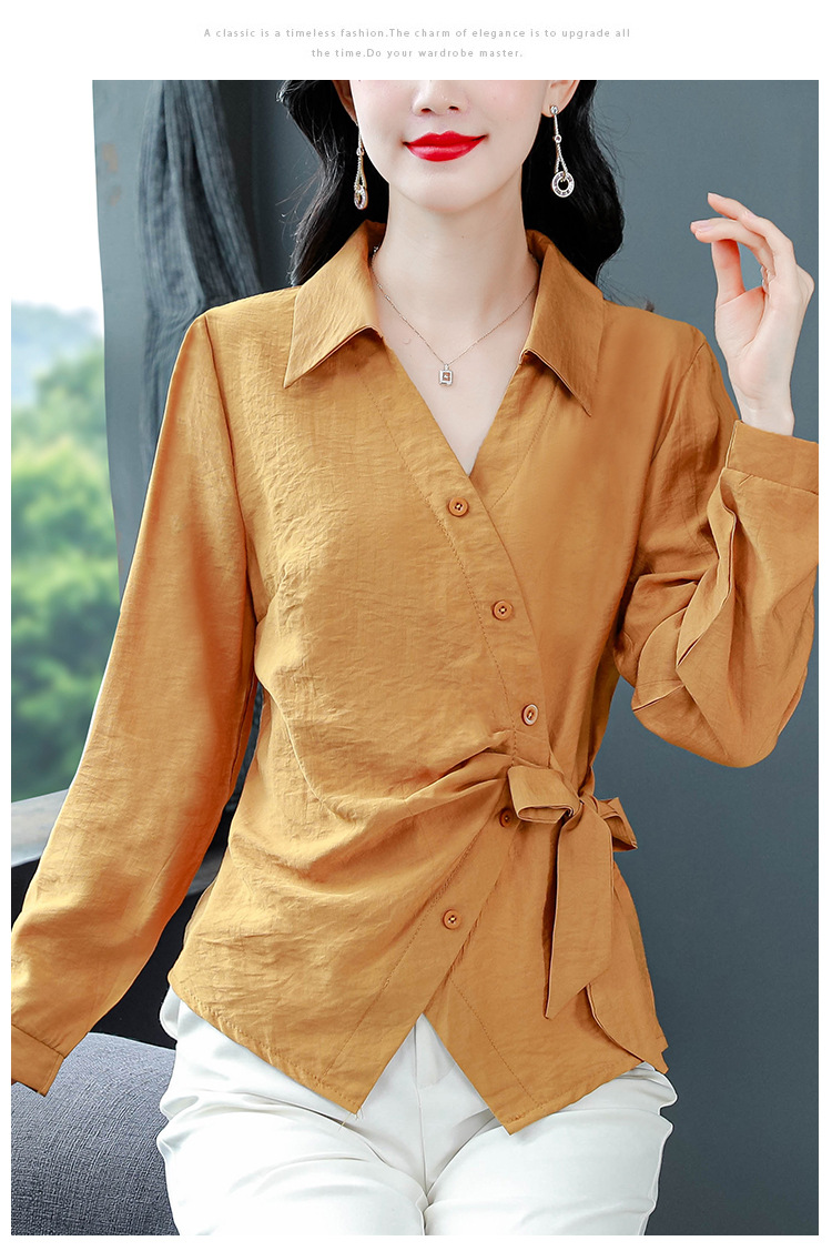 KQL现货秋季新款长袖衬衫女士时尚百搭蝴蝶结上衣漂亮显瘦小衫