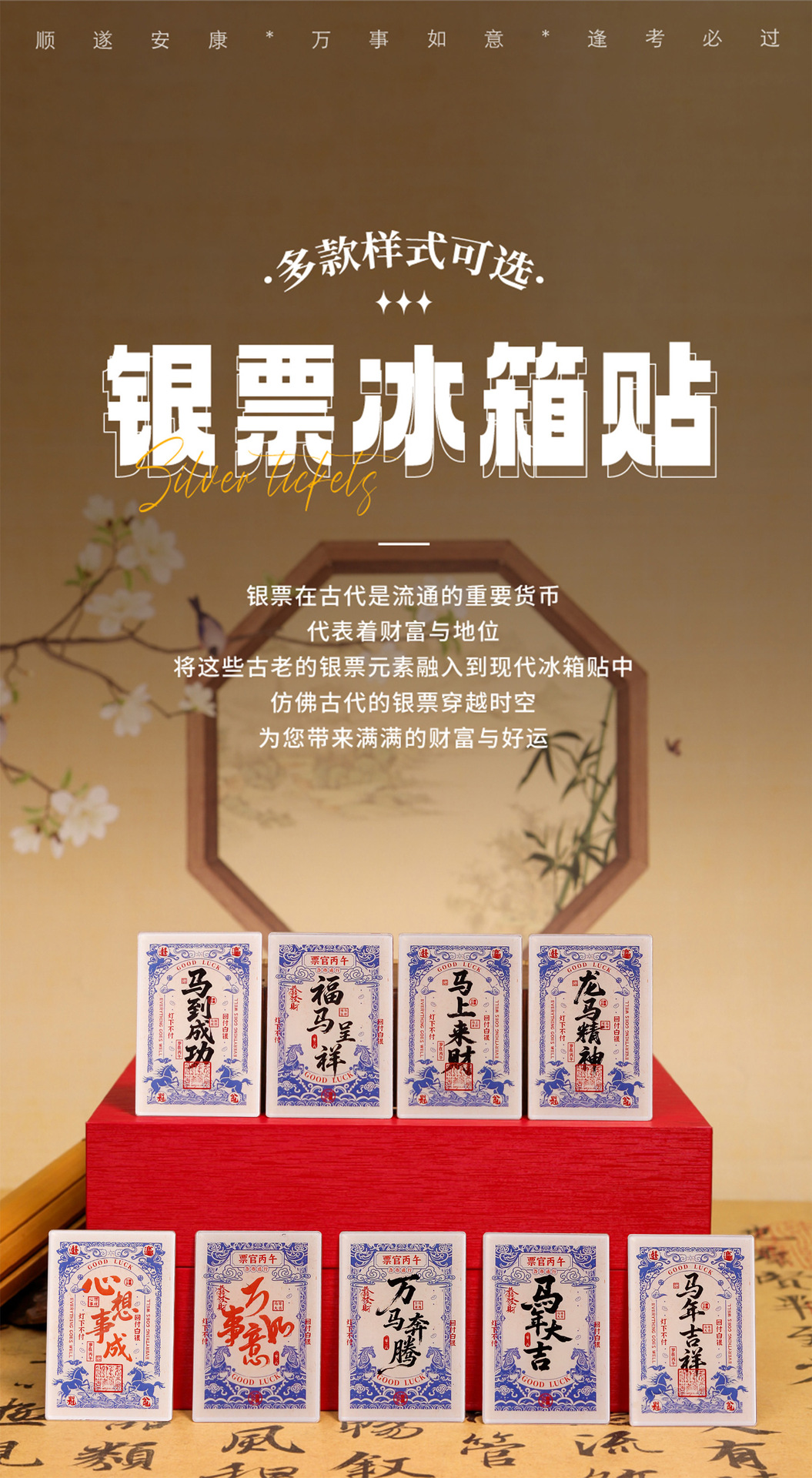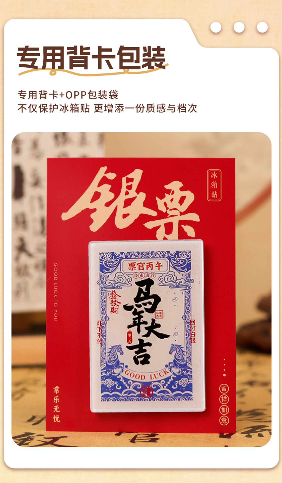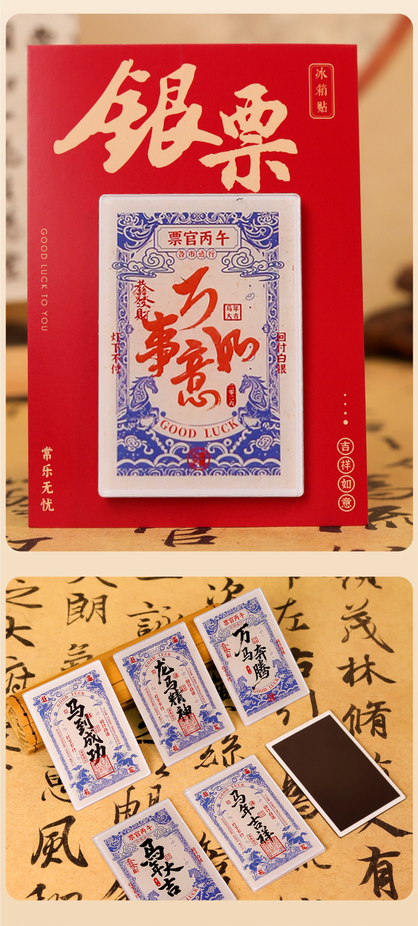 【马年祝福银票冰箱贴】2026春节新年祝福马年大吉马上发财创意中国风装饰磁贴纪念品