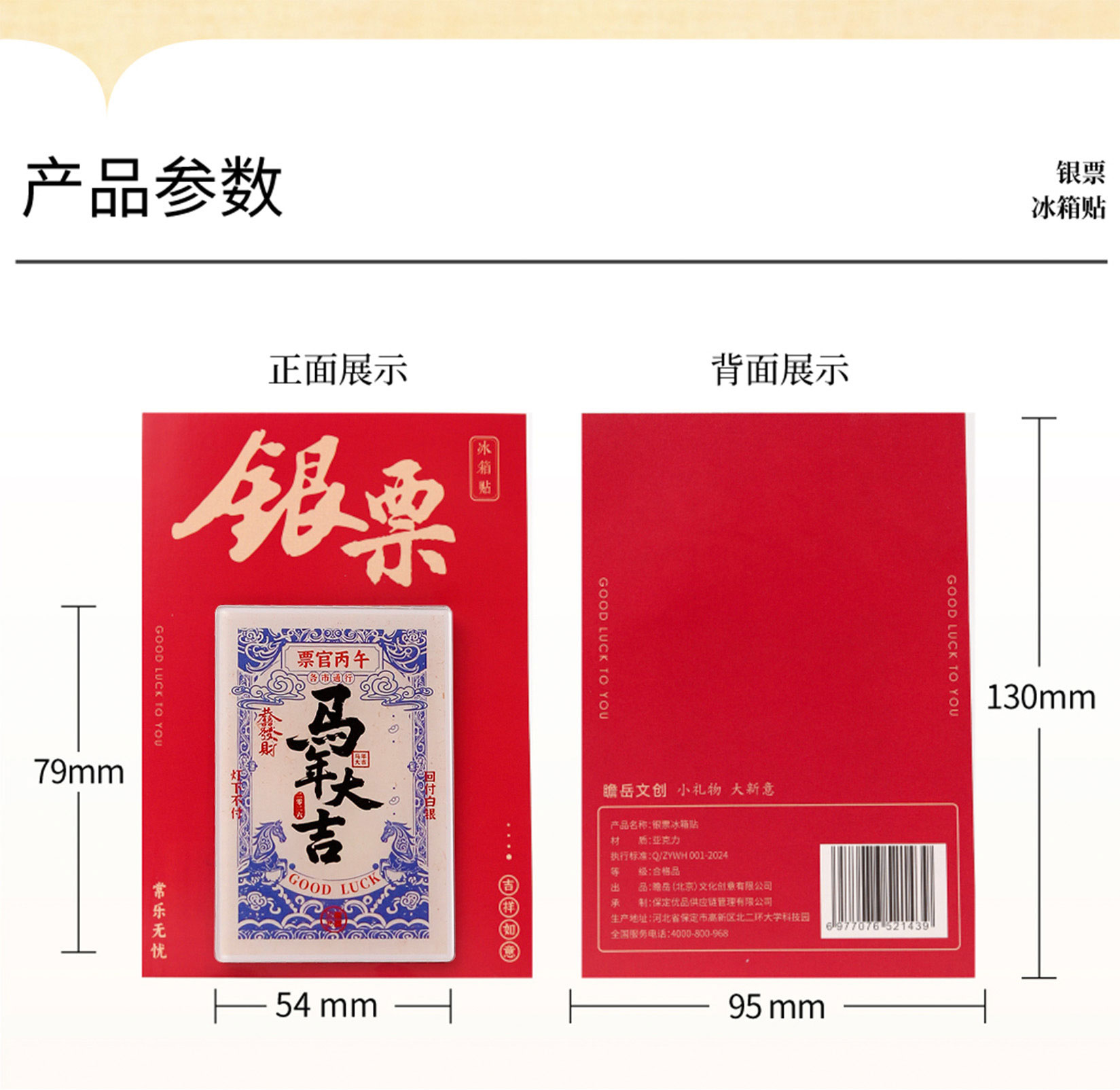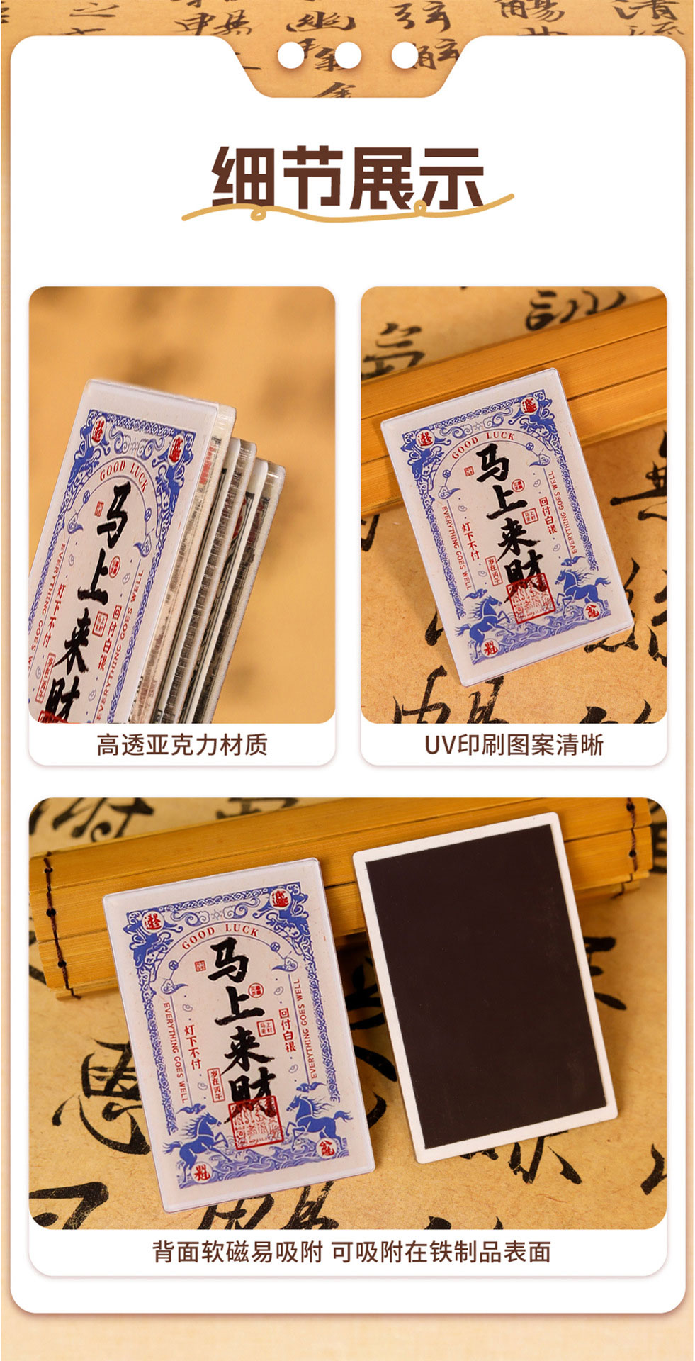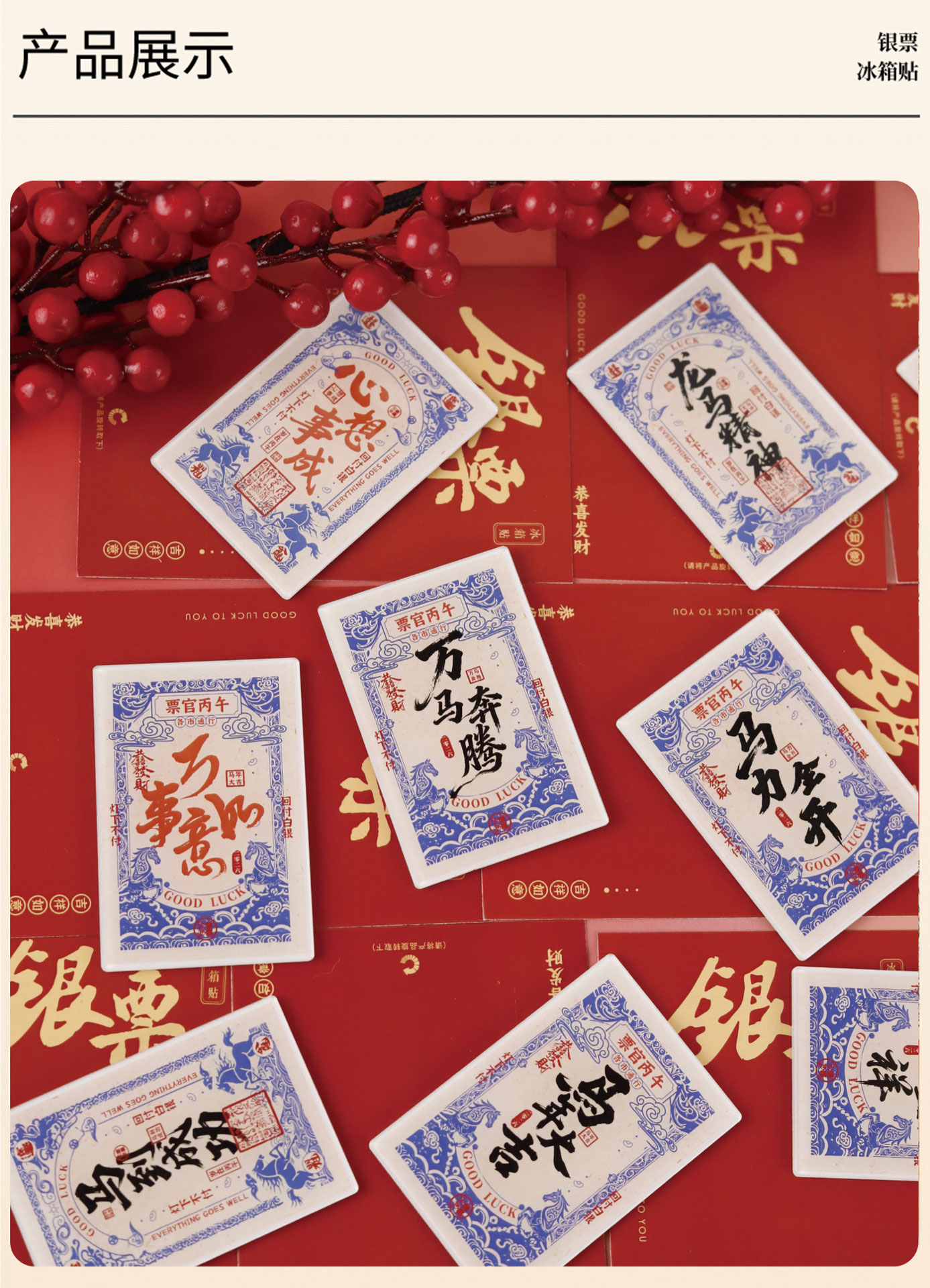 【马年祝福银票冰箱贴】2026春节新年祝福马年大吉马上发财创意中国风装饰磁贴纪念品