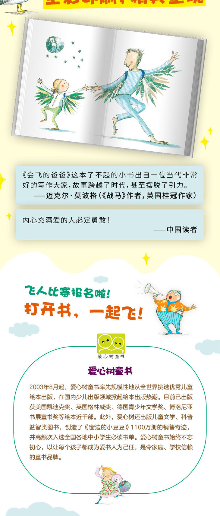★《会飞的爸爸》这本了不起的小书出自一位当代***好的写作大家,故事跨越了时代,甚至摆脱了引力。——迈克尔·莫波格(《战马》作者,桂冠作家)