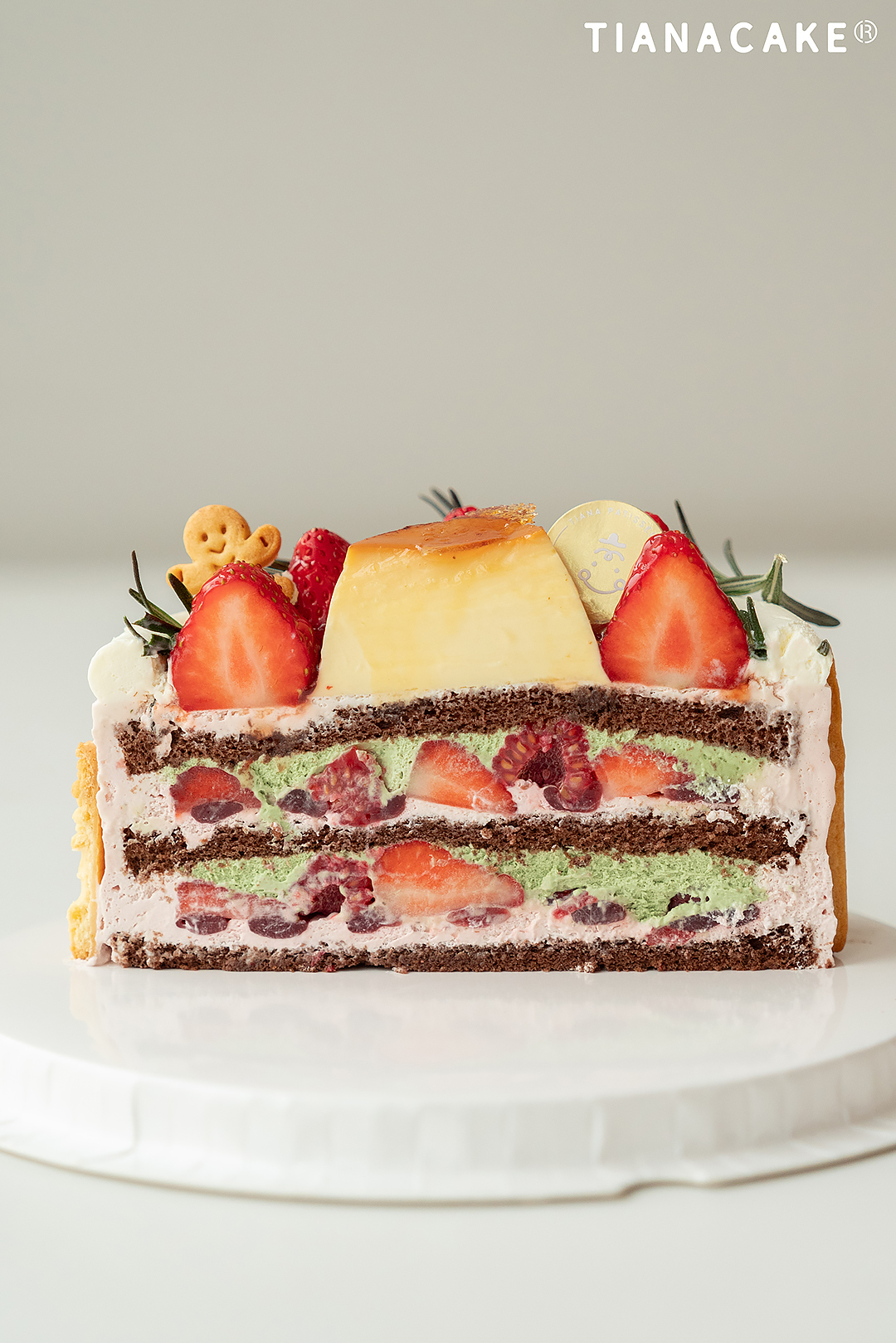 丹东空运九九草莓、主厨特调草莓奶油、特调开心果奶油、手煮草莓酱、手煮树莓酱、新鲜树莓、法国铁塔奶油、法芙娜巧克力戚风、烤布丁、黄油饼干