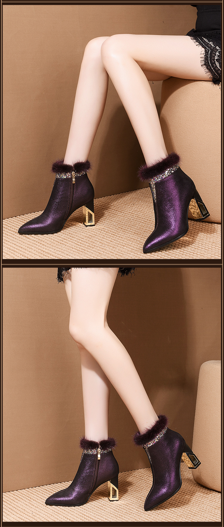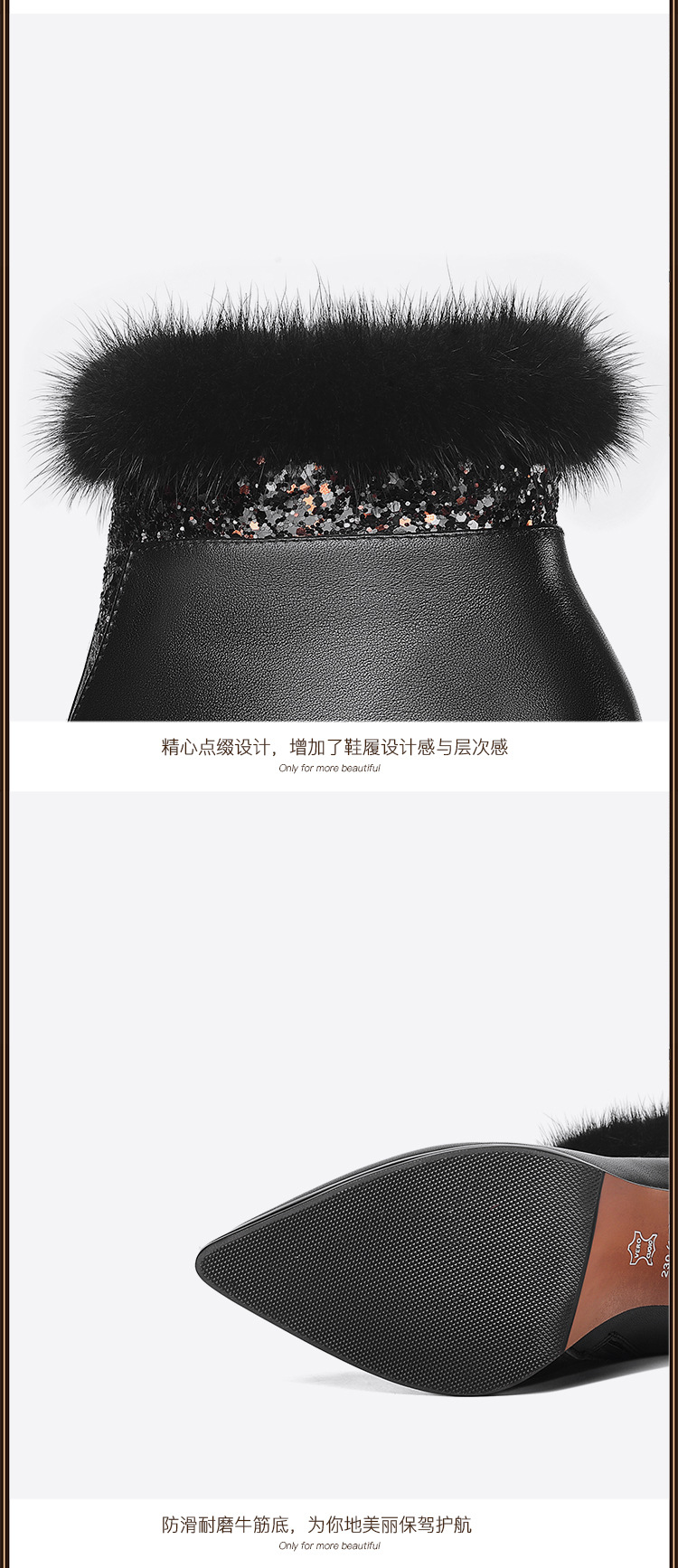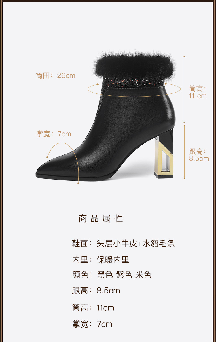 SZZ-冬季新款高跟加绒真貂毛真皮女靴